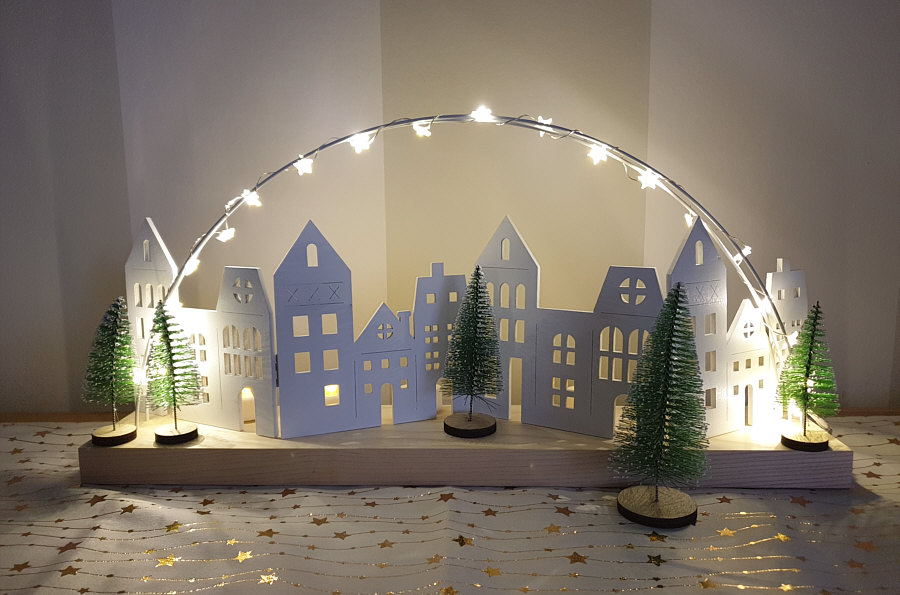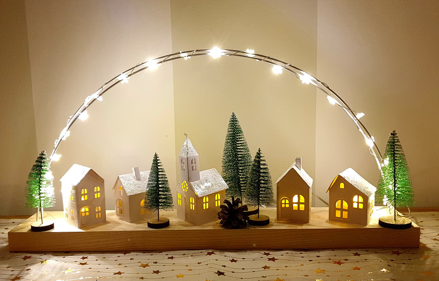 Elfi hat das einmal vor einigen Jahren gebastelte Lichterdorf dazu