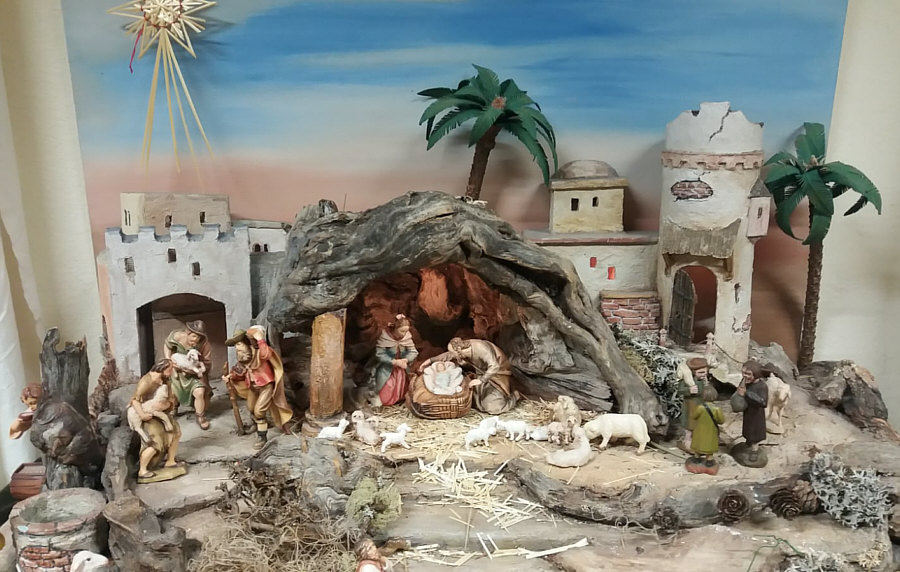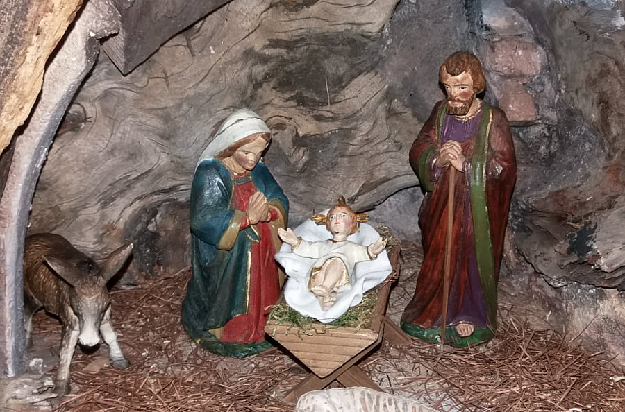 Die Krippe oben, da hat Sr. Maria die Höhle und den Bau rundum gemacht