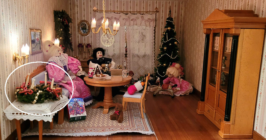 ... doch tatsächlich die Kerzen vom Puppenhaus-Adventskranz an (bitte Video