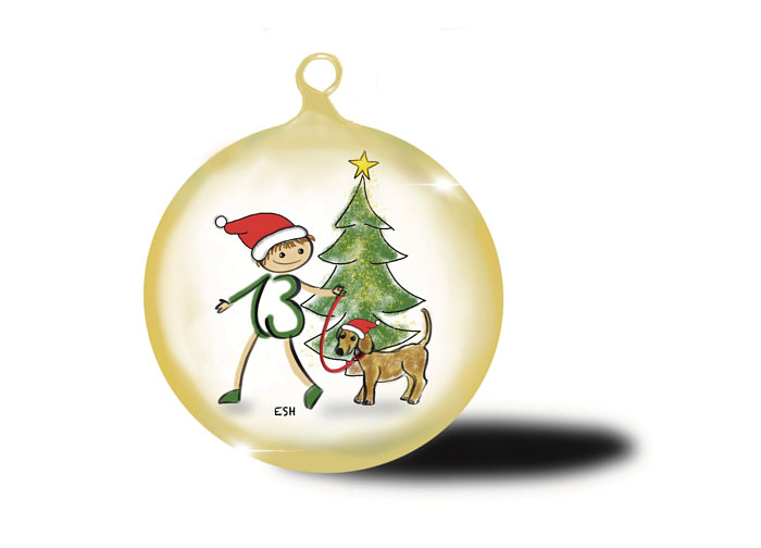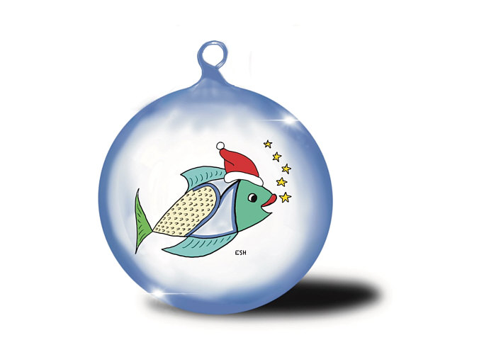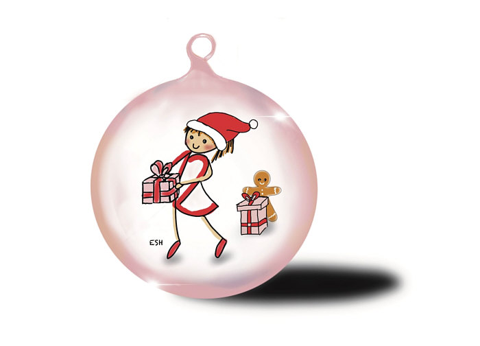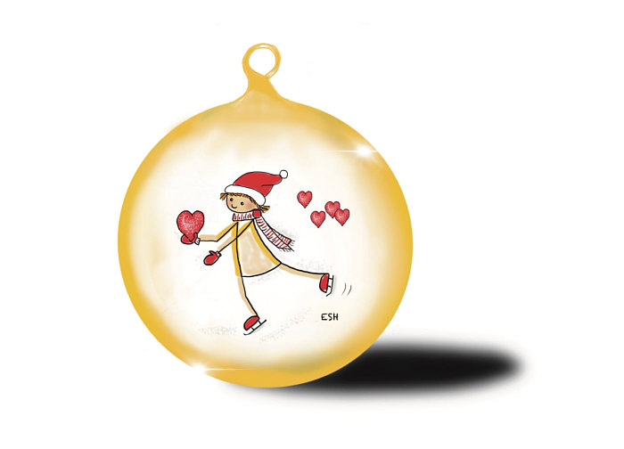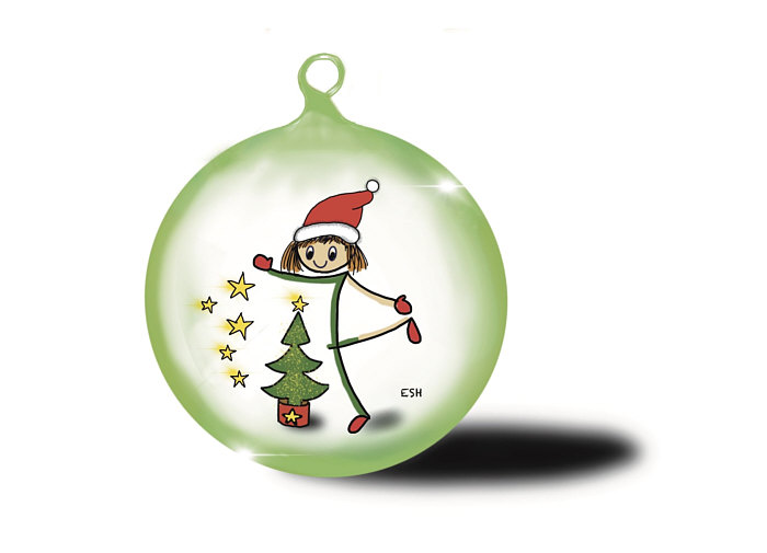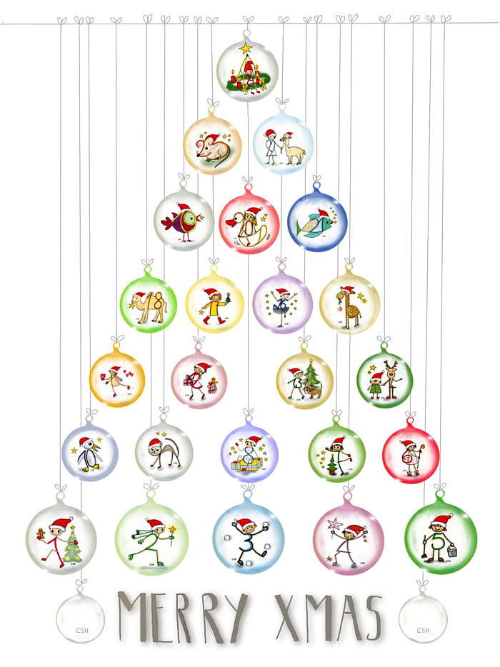 auf der ich alle Zeichnungen (in diesem Jahr waren es Weihnachtskugeln) zeige.