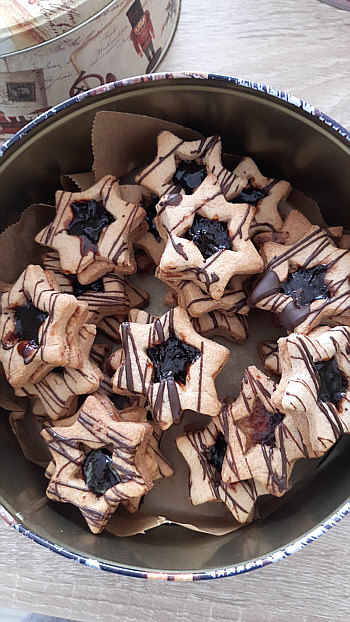 Oben: Zimt-Pflaumenmus-Plätzchen und Zimt-Hörnchen