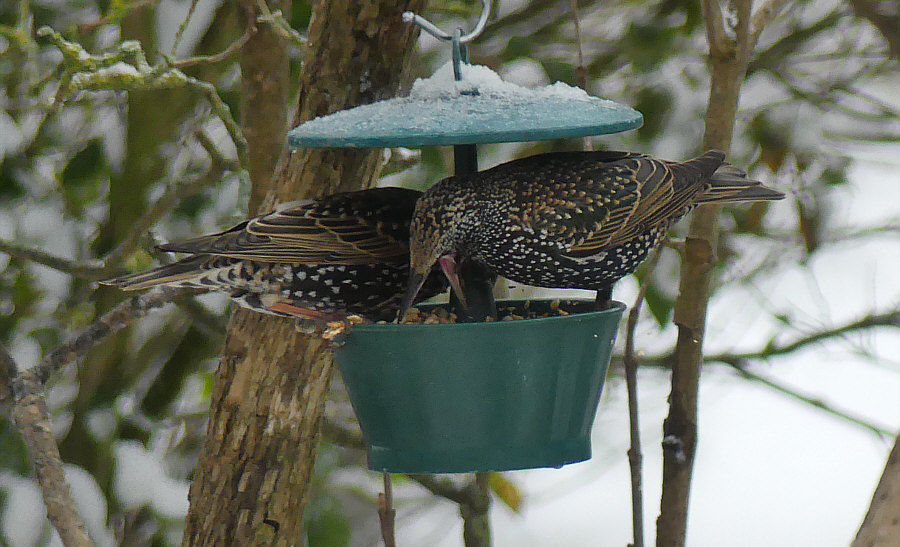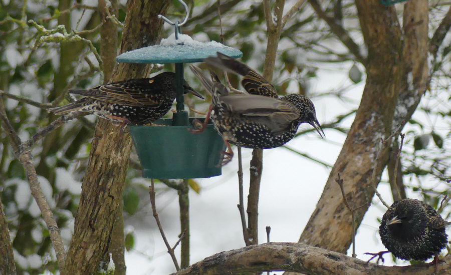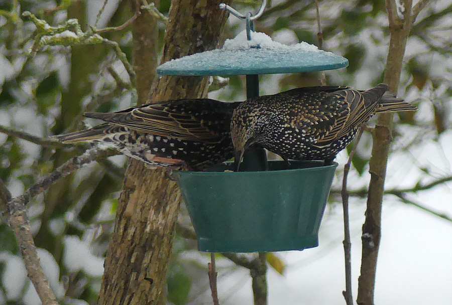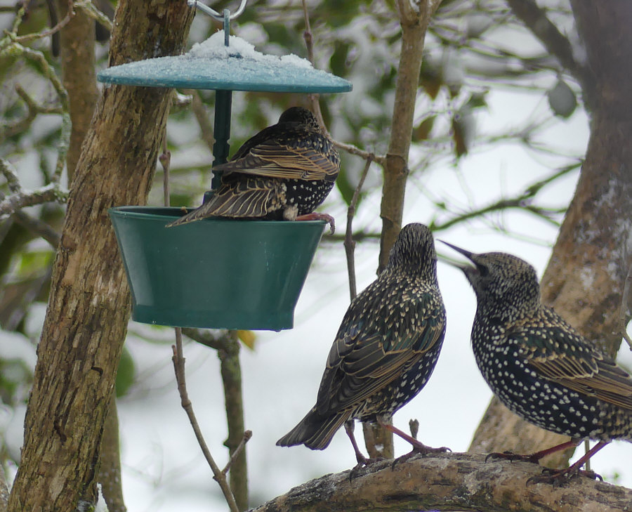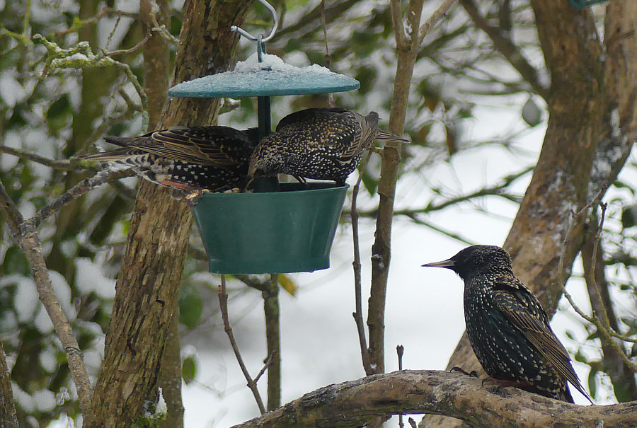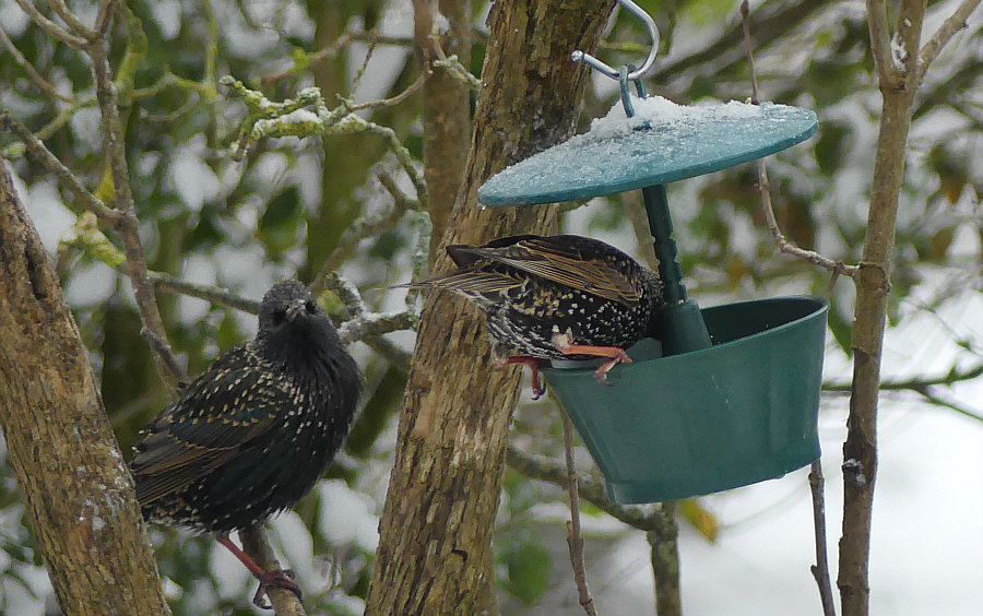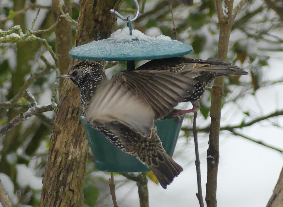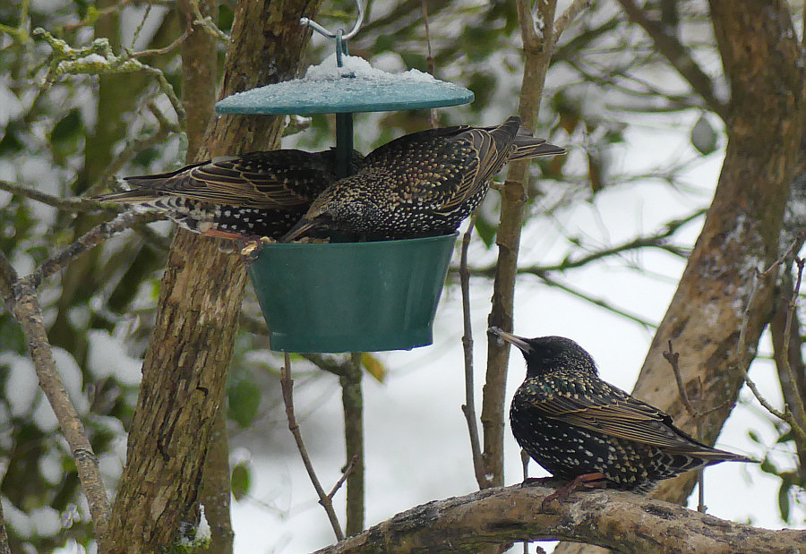 Wenn wir von einem viel haben ... dann sind es Stare. Wenn es so richtig kalt wird und nachts sinds im Moment unter minus 10 Grad bei uns, dann finden sich Stare in großen Mengen im Garten bei Beates Futterplätzen ein. Da wirds hektisch, drängelig und eng. Einfach mal ein paar Fotos von gestern: Wo sind denn eigentlich die ganzen anderen hin ? Die sind alle beim Haus ... ![]() Weg da ... meins ... ich lande ... ich will rein ... ![]() Macht doch mal Platz ... mir auch ... mach dich nicht so dick ... geh mal wech ... ![]() Vordrängler kann ich ja gaaar nicht leiden ... ![]() Weißt was ... da pass ich auch noch rein ... ![]() ... siehste ... es ist doch genug Platz für alle ... ![]() Wolle mer sie roi losse ... neeiiin !! ![]() Mir komme aber trotzdem rein ... ![]() Mal gucken, ob noch was da ist ... ![]() Ich seh nix, mal tiefer gucken ... ![]() Da hinten siehts auch mau aus ... ![]() Geh mal wech, du guckst nicht richtig ... ![]() Was heißt da "leer" ... hab aber Hunger ... ![]() Du, der sagst leer ... glaubst du, dass der uns verarscht ? ![]() Endlich ... Beate war da ! ![]() Bleibst du da wech, ich stech dir in den Bauch ... ![]() Ich Batman ... ![]() Schnell zur anderen Seite fliegen ... ![]() Meins ... nee, meins ... nee ich Hunger ... immer noch meins ... ![]() Komm, lass uns einfach gemeinsam essen ... ![]() Ich hab Hunger ... ich bin ja soooo gefräßig ... ![]() Mnjammamm, lecker Hamham ... ![]() Ich sitz nur da ... bin nur Zierde ... ![]() Bin sehr neugierige Zierde ... ![]() Ich hupf gleich zu euch hoch, dann wirds aber eng ... ![]() Was bist du so gefräßig ... und ich so geduldig ... noch ... ![]() Rüüülps ... vollgefressen ... hey, der fliegt mich gleich über den Haufen ... ![]() Gut, dass die alle beim grünen Dingens sind, da hab ich hier meine Ruhe ... ![]() Da drüben, da schmeckts am besten ... was man sich hier immer so verrenken muss ... ![]() Ich hab die schönste Zunge weit und breit ... ![]() Jetzt geht das Gedrängel hier auch schon los ... ![]() Schleich di, sonst zwick i di ! ![]() Hier drüben gibts auch feines ... ![]() Beeeaaate ... ist schon wieder leer ... |