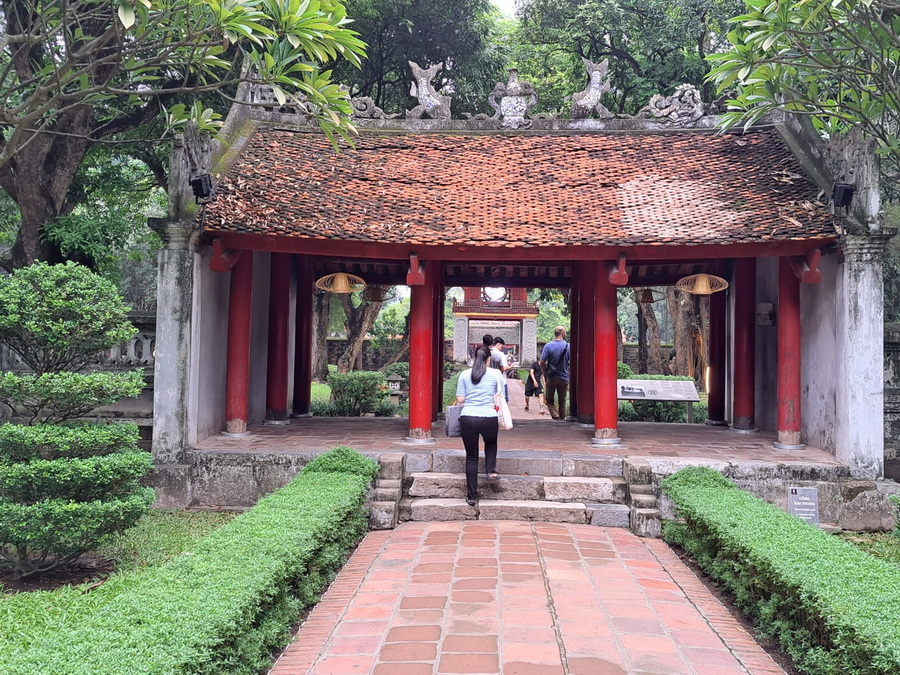 ![]() Mit Schpatz nach Vietnam ... 2. Tag. (1. Tag) Heute morgen geht es schon früh los, denn wir wollen zur Luon Höhle. ![]() Diese Höhle ist nur durch diesen Tunnel erreichbar. Die Luon Cave gehört zu den meistbesuchten Höhlen in der Halong Bay, sie liegt auf der Bo Hon-Insel, die 14 km von Halong entfernt ist. Die Höhle entstand am Fuße eines der typischen Kalksteinberge als Folge des ständigen Gezeitenwechsels. Die Strömung von Ebbe und Flut gestaltete allmählich einen großen Tunnel, der schon entstanden war, als der Meeresspiegel noch höher war als heute. Höhle ist auch übertrieben ... das ist eigentlich nur ein Durchgang zu einem See, der dahinter liegt. ![]() Von diesem See aus hatte man diese Aussicht: ![]() Was es noch gibt und wir sehen sie sogar, das sind Affen, die hier leben: ![]() ![]() Dann gehts wieder zurück auf die Starlight, unserem Schiff, und es geht auch wieder zurück nach Hanoi ... Haja. Aber erst mal Mittagessen. Und auch danach nicht direkt zur Stadt, sondern erst mal einen Halt bei einer Zuchtperlenfabrik machen. So sehen die Muschelschalen aus, in denen die Perlen wachsen ... ![]() ... und hier wird gesichtet und sortiert und die Perlen den Besuchern präsentiert. ![]() Die geöffneten Muscheln zeige ich jetzt nicht, das widerspricht unserem Empfinden von artgerechter Haltung doch sehr. Jetzt gehts aber nach Hanoi und dort besuchen wir ein Hauptheiligtum von Vietnam. Durch das Eingangstor ... ![]() ... und dann gibt es weitere kleine Tore: ![]() Der Begriff Literaturtempel ist etwas irreführend, denn es ist kein Tempel, noch diente die Anlage je religiösen Zwecken. 1070 erbaut, stellt die Anlage bis heute zwar das Hauptheiligtum Vietnams dar. Hier war von Anbeginn um die erste Akademie des Landes, in der zwischen 1076 und 1915 die Söhne der Mandarine und verschiedene Hochbegabte der bürgerlichen Aristokratie unterrichtet wurden. 1076 wurde im Gedenken an den weisen Konfuzius die Nationale Universität auf dem Gelände des Literaturtempels gegründet. Der Tempel basiert auch auf der Grundlage des Konfuziustempels. ![]() Es gibt hier fünf ummauerte Innenhöfe, die sich nach dem klassischem Schema chinesischer Wohn- und Tempelanlagen entlang einer Nord-Süd-Achse aufreihen. Wege und Tore im zentralen Bereich der Hauptachse waren allein den Herrschern vorbehalten. Die seitlich an den Mauern entlangführenden Wegesysteme wurden von Bediensteten und Soldaten genutzt. Während der Trần-Dynastie (1225 bis 1400) und später nachfolgender Dynastien wurde die Tempelanlage mehrfach überarbeitet. Über die Jahre gab es immer wieder Zerstörungen und Wiederaufbau. Die Tempelanlage wurde 1920 komplett renoviert, 1947 hatte dann die Rückeroberung Hanois durch französische Truppen gegen die Việt Nam Ðộc Lập Ðồng Minh Hội schwere Schäden am Komplex verursacht (Erster Indochinakrieg). 1956 wurde noch mal alles renoviert und 2000 erneut restauriert. Heute gilt die Anlage als bedeutende historische und kulturelle Hinterlassenschaft in Hanoi. Eine Teilansicht der Anlage, einen Ausschnitt des Sees der himmlischen Klarheit (Thien Quang Tinh), zeigt die Rückseite ... ![]() ... der 100.000-Đồng-Banknote. Nicht erschrecken, dieser Schein ist nur ca. 4 Euro wert. Hier wird man also leicht Millionär, zumindest was die Zahlen auf den Geldscheinen betrifft. So sieht es drinnen im Literaturtempel aus: ![]() Noch mal nicht artgerechte Haltung ... diesmal die Schüler ... ![]() ... dann hier mussten die Prüflinge kniend auf dem schwarzen Pult die Prüfungen schreiben. Davor saß ein Lehrer und hat aufgepasst, dass sie nicht schummeln. Wieder aus dem Tempel draußen, könnten wir an einem der Imbisse davor ... ![]() ... ja mal halt machen und eine Kleinigkeit essen ? Aber nein ... wir kennen ja das Programm des Tages. Wir haben heute erfahren, wo die Affen wohnen, gesehen, wie Perlenzucht funktioniert und wissen auch über den Literaturtempel Bescheid ... ... und nun dürfen wir lernen, wie man asiatische Rollen aus Reisteig und Fischsoße herstellt ... ![]() ... und wie man ... ![]() ... Tomatenrosen macht und Blätter aus Gurken schnitzt. Nun gehts ins Hotel ... [ wird fortgesetzt ] |