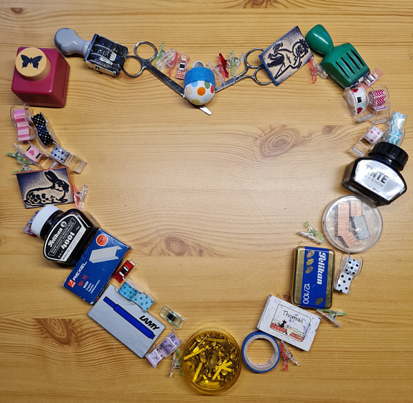 Es stand bei der Mitmachaktion nicht dabei, warum und wofür ... aber ich glaube, dass man das erahnen konnte, dass diese Aktion für den heutigen Valentinstag gedacht ist. Ist doch klar ... heute ist der Tag der Herzen. Und so habe ich meine Leser gebeten, doch ein Herz zu legen. Also nicht ein schon vorhandenes Herz zu fotografieren, sondern ein Herz ganz neu entstehen zu lassen. Ich dachte daran, es aus kleineren Dingen zu legen. Aber ich habe gesehen, dass man auch biegen und falten kann ;). 16 Herzen darf ich Euch heute präsentieren: ![]() Margot Osterglocken ![]() Petra (Fee) Büroklammern vom Arbeitsplatz ![]() Xenophora Bonbons aus Murano-Glas ![]() Angelika V. Fusilli ![]() Frauke Mini-Smarties ![]() Gerlinde aus Sachsen Die Karten vom letztjährigen Blumenkalender ![]() Liane Futterschale für die Amseln ![]() Schnecke Mini-Dickmanns ![]() Sr. Maria Arbeitsmaterial: Stoff und Borden ![]() Birgit 57 Engelchen ![]() Heidi P. Glas-Nuggets ![]() Margareta Geschirrtuch ![]() Nora Margeriten ![]() Sylvi gesammelte und gekaufte Steinherzen ![]() Sonja S. getrockneter Farn ![]() Christa Borns Teil des Inhalts ihrer Schreibtischschublade |