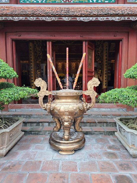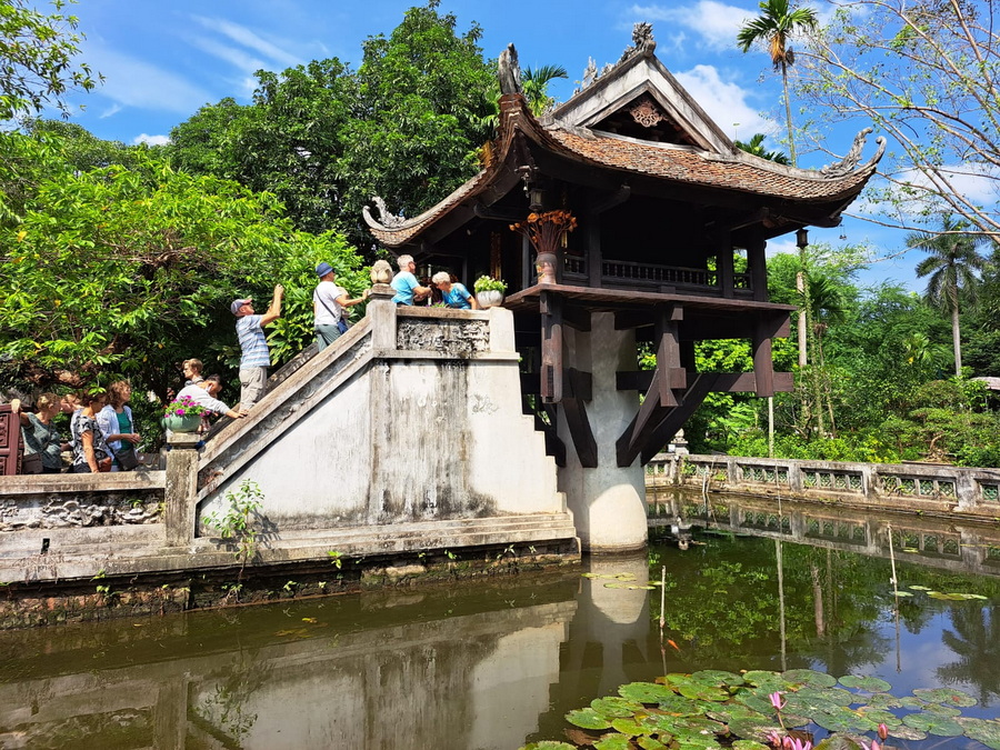 ![]() Mit Schpatz nach Vietnam ... Folge 3 (Folge 1, Folge 2) Wir sind weiterhin in Hanoi. Heute gehts zuerst zum Ba Dinh Platz. Hier steht das Ho Chi Minh Mausoleum. Das leider heute, weil Montag, geschlossen ist. So sehen wir nur von außen die Wachablösung. ![]() ![]() Ho Chi Minh war ein bescheidener Mann und für einen einfachen Lebensstil, Bescheidenheit und Integrität bekannt. Wir schauen nun mal beim Präsidentenpalast vorbei. ![]() Der Palast wurde zwischen 1900 und 1906 als Unterkunft für den französischen Generalgouverneur von Indochina erbaut. Wie die meisten französischen Kolonialbauten hat er einen betont europäischen Stil. Ho Chi Minh soll sich aus symbolischen Gründen geweigert haben, in dem großen Bauwerk zu wohnen, hat allerdings dort weiterhin Staatsgäste empfangen. Doch zum Wohnen baute er auf dem Gelände ein traditionelles vietnamesisches Pfahlhaus und einen Karpfenteich. ![]() ![]() Unser nächstes Ziel ist eine berühmte Pagode ... ![]() ... die Ein-Säulen-Pagode. Der Legende nach erschien dem kinderlosen König Lý Thái Tông im Traum die auf einer Lotusblüte sitzende Göttin der Barmherzigkeit und überreichte ihm einen Sohn. Als er kurze Zeit später tatsächlich Vater wurde, ließ er diese Pagode aus Dank in Form einer Lotusblüte erbauen. Nachdem sie mehrfach zerstört wurde, zuletzt von den Franzosen 1954, wurde der ursprüngliche Baumstamm, der durch Fäule nicht mehr gerettet werden konnte, durch eine Betonsäule ersetzt. Auf einem Betonpfeiler in der Mitte eines kleinen Sees ruht das Gebäude und ist über eine Treppe für die Gläubigen erreichbar. Nun kommt etwas ganz besonderes, das es nur in Vietnam gibt ... das Wasserpuppentheater. ![]() Die Ursprünge des Theaters sind unklar, aber wahrscheinlich war es schon im 11. Jahrhundert ein fester Bestandteil im kulturellen Leben des Landes. Diese Kunstform wurde streng geheim gehalten und nur innerhalb einer Familie von den Alten an die Jungen weitergegeben. In den 1980er Jahren war das Wasserpuppentheater fast ausgestorben, als eine französische Organisation mit neuen Puppen und einer neuen Bühne diese Tradition wieder zum Leben erweckte. Das auf dem Bild oben ist kein spiegelnder Boden ... ![]() ... das ist schon das Wasserbecken. In dem Becken stehen hinter einem Vorhang aus geflochtenem Bambus die Akteure, die die auf 3 bis 4 m langen Stangen montierten Wasserpuppen handhaben. Die Stangen befinden sich unterhalb, die Puppen oberhalb der Wasseroberfläche. Hier ein paar Szenen aus dem Theaterstück: ![]() ![]() ![]() Dargestellt werden häufig Szenen aus dem Landleben wie etwa Fischfang, ein Flötenspieler auf einem Büffel oder ein rauchender Bauer. Außerdem sind mystische Tänze von Löwen und feuerspeienden Drachen zu sehen sowie die vier heiligen Tiere: Phönix, das chinesische Einhorn, der chinesische Drache und die Schildkröte. Die 30 cm bis 1 m großen und 1 bis 5 kg schweren Figuren werden aus dem weichen und leichten Holz des verbreiteten Feigenbaumes geschnitzt. Sie sind mit Harzen und Lacken wasserfest überzogen, was auch gegen Holzwürmer helfen soll. Die beweglichen Gliedmaßen oder sonstige bewegliche Komponenten werden durch Seilzüge gesteuert. ![]() Das ist Meister Liem und seine Puppen: ![]() Nach dem Besuch einer Vorstellung des Theaters dürfen wir beim Meister auch zu Mittag essen: ![]() Nach dem Essen geht es weiter zum Jadeberg-Tempel am Hoan Kiem See: ![]() ![]() ![]() Damit ist das Programm für den heutigen Tag eigentlich beendet ... ... aber wir entschließen spontan, dass wir noch zur Train-Street wollen. Hier fahren die Züge dicht an den Häusern entlang. ![]() Am Abend bummeln wir noch ein wenig durch die Altstadt. ![]() Huc Brücke ![]() Eine Werkstatt ![]() Das alte Stadttor Auch heute haben wir wieder viel gesehen und erlebt und viele neue Eindrücke haben auf uns gewartet und wollen über Nacht verarbeitet werden. [ wird fortgesetzt ] |