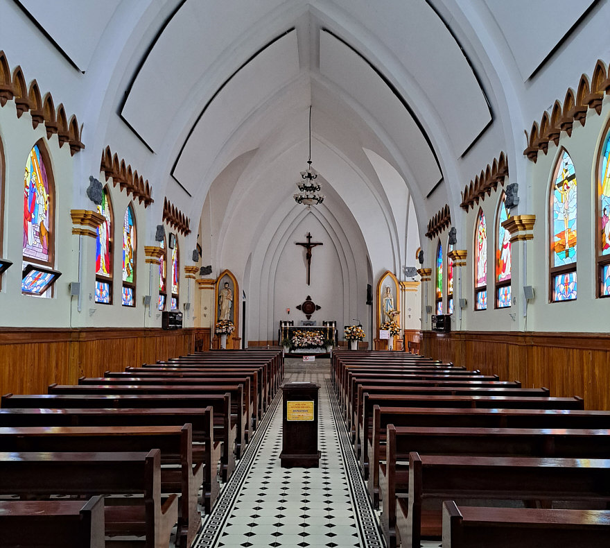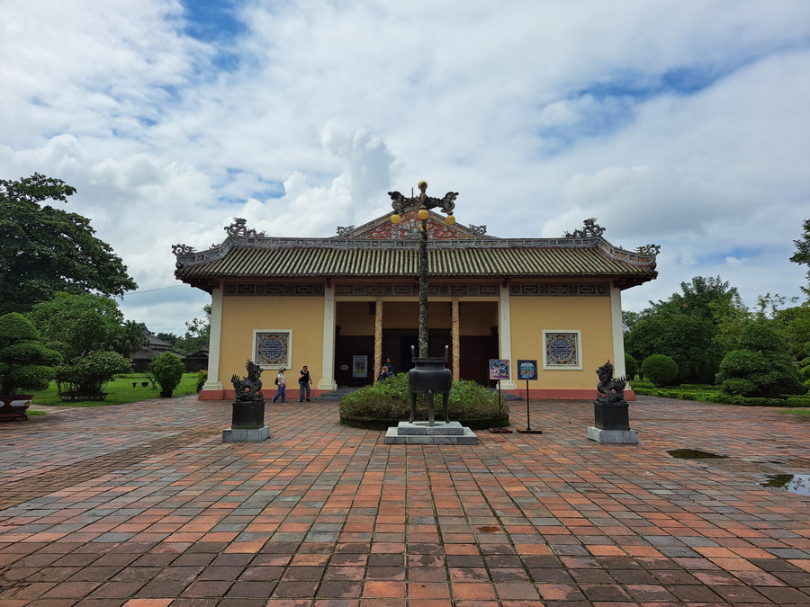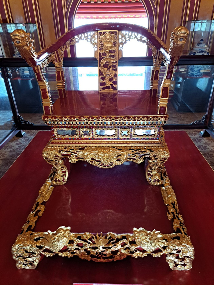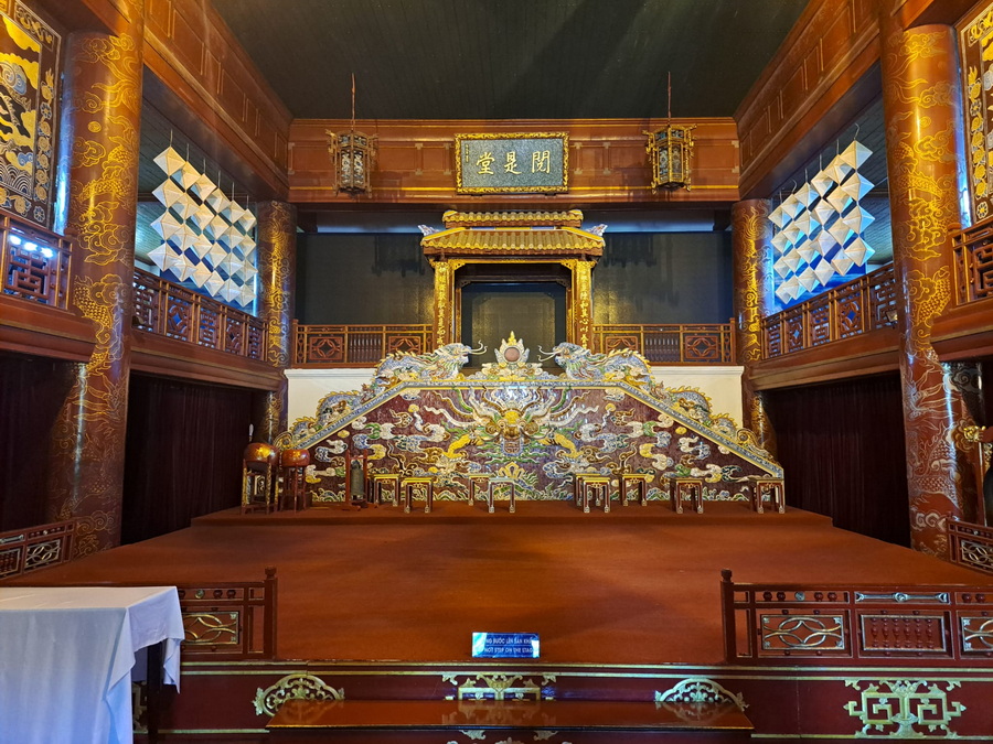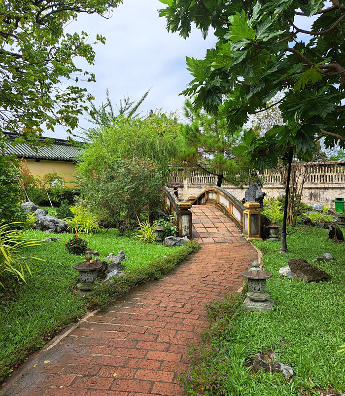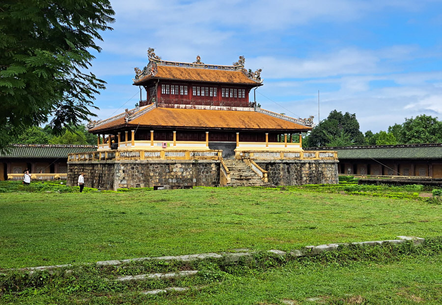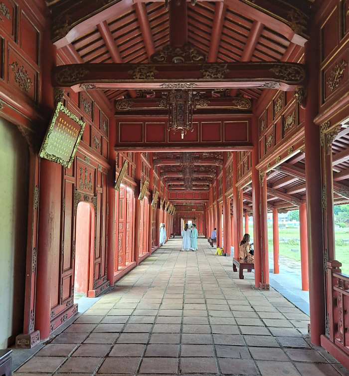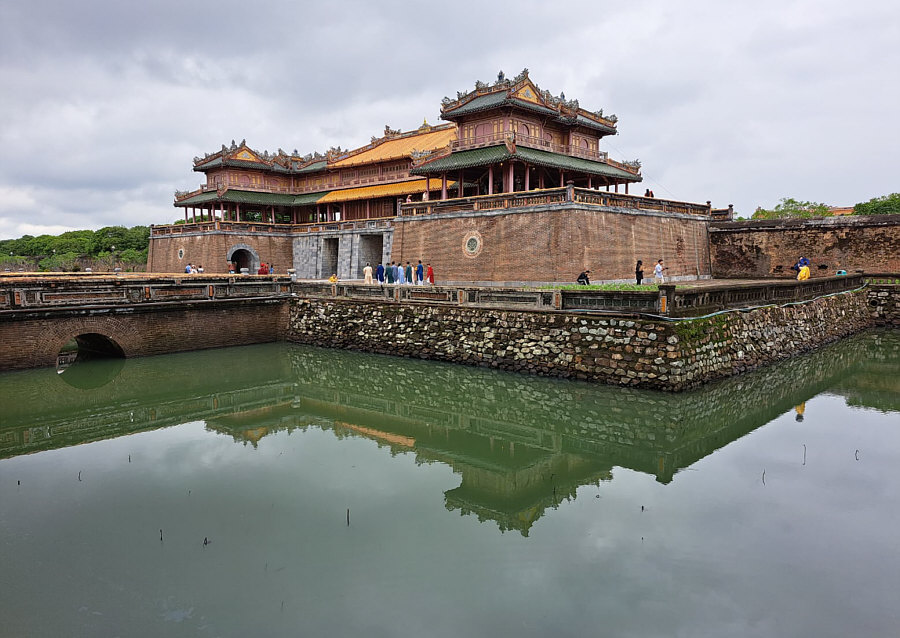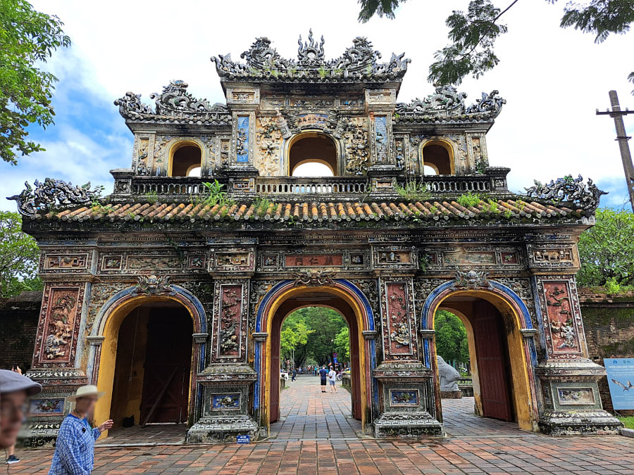 ![]() Mit Schpatz nach Vietnam ... Folge 6 (Folge 1, Folge 2, Folge 3, Folge 4, Folge 5) Wir sind immer noch in Sa Pa ganz im Norden von Vietnam. Und das ist nicht nur die Fortsetzung der Reise, sondern auch: Auflösung Sonntagskirche ![]() Ja, wir waren letzten Sonntag in der Kirche von Sa Pa. In einer früheren Folge hatte ich sie gezeigt, von außen in der Dunkelheit: ![]() So sieht sie von außen bei Tag aus: ![]() Und letzten Sonntag sind wir rein gegangen: ![]() Beim Kasten in der Mitte war die Schrift absichtlich nicht zu lesen, das hab ich mir für die Auflösung aufgehoben ... ![]() ... das ist eine Spendenbox. Die beiden anderen schwarzen Boxen an den Wänden rechts und links ... ![]() ... da liegen Gesangbücher drin. Die dunklen Elemente über den Fenstern ... ![]() ... geben auch in der Vergrößerung ihr Geheimnis nicht preis. Aaah ... Schpatz sagt gerade: "Das waren Steinelemente, braun gestrichen wie in den Fenstern. Darin waren abstrakte Bilder auch in braun." Es ist jetzt Tag 4 abends ... der 1. November 2023. (Das Datum ist nur für mich wichtig, damit ich die Übersicht behalte ;) ). ~~*~~ Tag 5 ... da gibt es keine Bilder. Morgens frühstücken ... dann 300 km mit dem Bus zurück nach Hanoi fahren. Zum Flughafen fahren, Stau inclusive. Mittagessen in einer Raststätte. Nachmittags geht dann unser Flug nach Hue. Erst am frühen Abend sind wir im Hotel. Wer will, darf heute Abend den Reiseleiter in ein Restaurant begleiten und lecker essen gehen. Wir sind nun in der Mitte des Landes angekommen. ~~*~~ Tag 6 ... in Hue. Wikipedia sagt: "Huế, früher Phú Xuân, ist eine bedeutende Großstadt mit ca. 350.000 Einwohnern in Zentralvietnam am Hương Giang ("Parfümfluss" oder "Fluss der Wohlgerüche"). Sie liegt unweit des Meeres vor einer malerischen Hügel- und Gebirgslandschaft. Auf dem Plan steht als erstes die Besichtigung der Zitadelle von Hue. Eine Zitadelle ist eine in sich abgeschlossene Festung. Hue ist ja die ehemalige kaiserliche Hauptstadt während der Nguyễn-Dynastie. Und so ist innerhalb der Zitadelle die Kaiserstadt zu finden. Die Kaiserstadt ist eine ummauerte Anlage innerhalb der Zitadelle ... sie enthält die Paläste, in denen die kaiserliche Familie untergebracht war, sowie Schreine, Gärten und Villen für Mandarinen. 1803 wurde sie als neue Hauptstadt erbaut ... während der französischen Kolonialzeit hatt sie hauptsächlich eine zeremonielle Funktion. Nach dem Ende der Monarchie im Jahr 1945 erlitt sie während der Indochinakriege bis in die 1980er Jahre zuerst schwere Schäden und danach schlechtes Wetter, Termitenplagen und vor allem Vernachlässigung. 1993 wurde sie dann zum UNESCO-Weltkulturerbe erklärt und seitdem wird dort restauriert. Aber erst mal müssen wir dort hin kommen ... und das ... ![]() ... machen wir mit Rikschas. Das ist eines der Eingangstore der Zitadelle: ![]() Und das ist das Tor zur Kaiserstadt: ![]() Das ist nur ein Tor, kein Tempel. Das Meridian-Tor, auch als Südtor bekannt, ist das Haupttor zur Kaiserstadt, das sich innerhalb der Zitadelle von Huế befindet. Es wurde 1833 im traditionellen vietnamesischen Nguyen-Stil erbaut und diente dem Herrscher als Beobachtungspunkt für Truppenbewegungen und Zeremonien. Hier wurden übrigens Szenen des Filmes "Indochine" gedreht. In der Eingangshalle des Tores sehen wir: ![]() ![]() ![]() Ein weiteres Gebäude ... ![]() ... und zwischen den Gebäuden gibt es manchmal solche Wege: ![]() Dieses Gebäude ... ![]() ... das ist das Theater. Wollen wir mal reingehen ? Natürlich wollen wir ... ![]() Für Liebhaber der Natur ist auch gesorgt ... ![]() ... denn es gibt hier auch einen schönen Gartenteil. Und hier verweilen wir nun bis zur nächsten Folge :)). [ wird fortgesetzt ] |