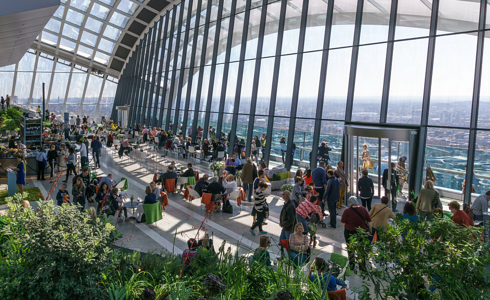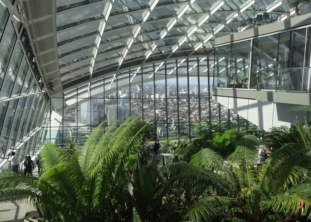 ![]() Wir sind heute mitten in London ... in diesem Gebäude ... ![]() ... denn dort gibt es oben eine Dachterrasse, der "Sky Garden". Dieser dreistöckige botanische Garten auf dem Dach ist Londons höchster öffentlicher Park. Der Zutritt ist kostenlos, der Zugang ist barrierefrei mit Rollstuhl möglich. ![]() ![]() ![]() (zurück zur Kirche ... bitte hier klicken) |