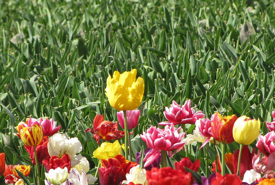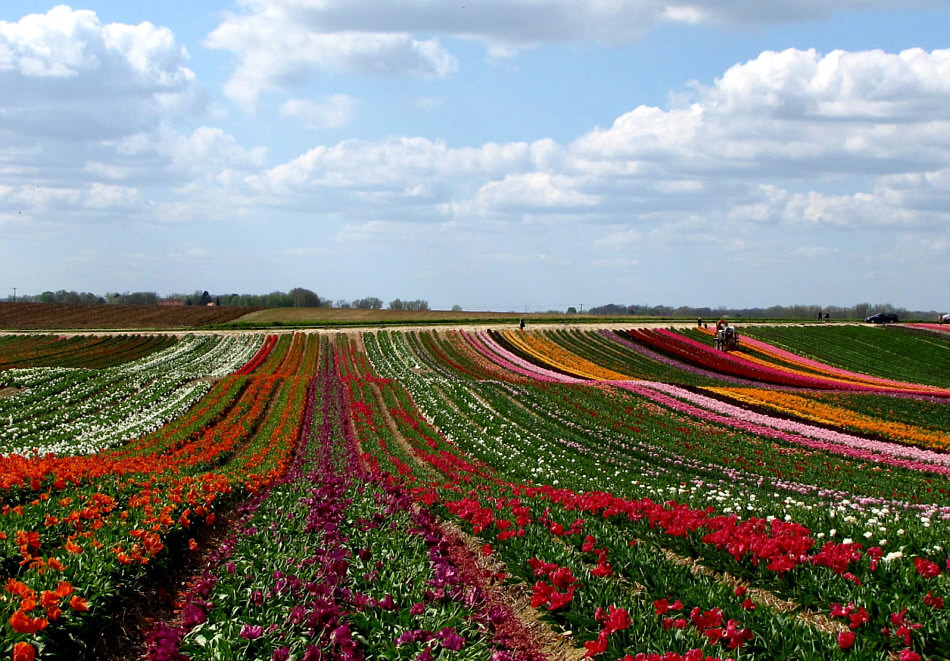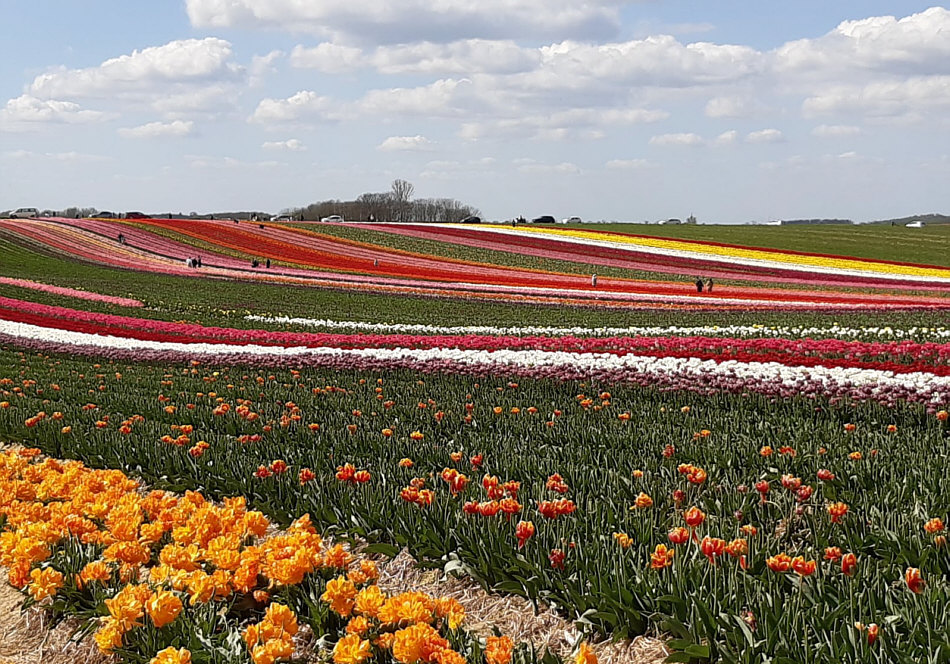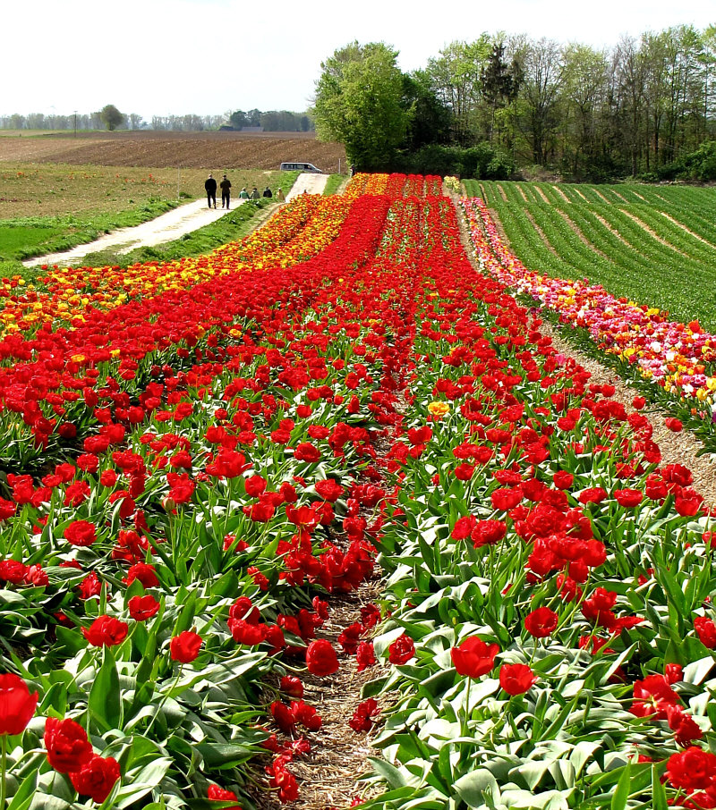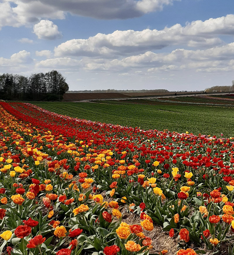 Schnell schnell ... ... noch Bilder machen, bevor ... ![]() ... dieses Ungetüm da die Farben aus dem Feld rauserntet. Da oben links ... ![]() ... fährt es ... und wenn es vorbei gefahren ist, hat sie das Bunte mitgenommen und nur noch Grün zurückgelassen. Wobei Grün an sich ja schön ist. Viele Menschen ... ![]() ... die alle dasselbe wollen wie wir ... Fotos machen. Wenns geht, noch vor der Ernte ;). Es ist ganz schön was los in den Feldern ... ![]() ... und ich danke Gitta ... ![]() ... dass sie angesichts der vielen Menschen, die in den Feldern rumlaufen, nicht wahnsinnig geworden ist ... ich wäre es geworden ;)). Dazwischen immer die wieder eine laute Stimme, die "raus aus dem Feld, alle raus" ruft, gefolgt von einer Sirene ... am besten das Hörgerät ausziehen beim Fotografieren ;)). Gitta, der du diese Bilder fotografiert hast, was sagst denn du dazu ? (Gitta:) "Diese riesigen Tulpenfelder sind nur ca. 8 km von mir entfernt und befinden sich im Kreis Grevenbroich. Dort war ich im vergangenen Jahr zum ersten Mal, zufällig entdeckt. Als ich gestern dort ankam, war ich erschrocken über die vielen Menschen, die ich sah. Leider halten sich sehr viele nicht an das Verbot, die Felder zu betreten. Es war nicht ganz einfach, einen Parkplatz und Stellen am Rand zu finden, um gute Fotos machen zu können." Dazu läuft man am besten ... ![]() ... diesen Weg entlang und blick dann ... ![]() ... über die Felder. Und dann einfach nur stehen bleiben und die Farben genießen. Und die Erntemaschine nicht verteufeln ... ![]() ... denn sie sorgt für die fotogenen grünen Bereiche zwischen den Farben. Solche Felder sind leider viel zu weit weg, als dass ich sie selbst fotografieren könnte und so wird es vielen von uns gehen. Doch Gitta war ja dort :)). Doch nun schweige ich ... einfach nur die Bilder schauen und sich an den Farben der Tulpenfelder erfreuen: ![]() ![]() ![]() ![]() ![]() |