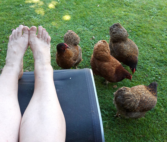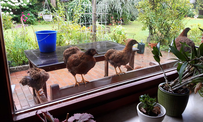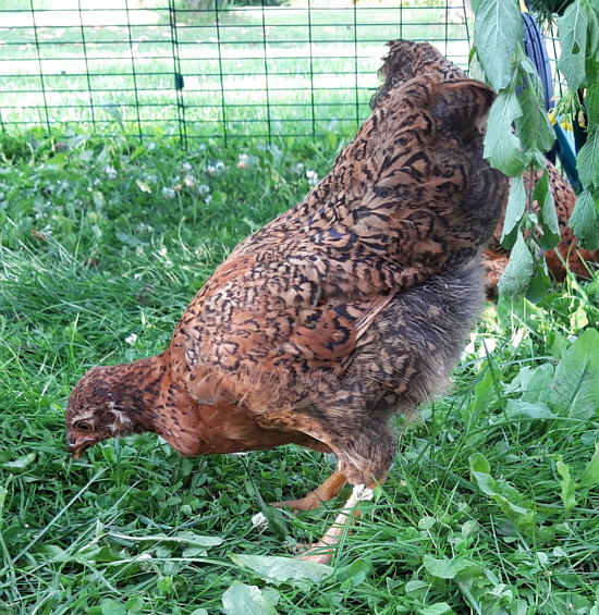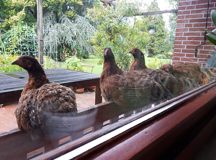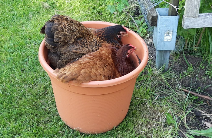 Angelika V. schreibt: Kapitel 1 Vorstellung Wyandotten Ich habe vier zauberhafte Hennen. Zwerg-Wyandotten. Das sind die mit dem Puschelpopo. Stellt euch eine vornehme Dame im Turnürenkleid vor ... Wyandotten sind dafür bekannt, dass sie gerne glucken. Da ich keinen Hahn habe, musste ich das Glucken bisher immer unterbinden. Kapitel 2 Glucken und Entglucken Wir haben Zwerg-Wyandotten, die sind bekannt dafür, dass sie gerne brüten und gute Mamas sind. Die Hühner legen ja Eier. Mehr oder weniger jeden Tag. Ob Hahn oder nicht. Letztes Jahr kam jede unserer 4 Damen in Brutlaune und weil wir keine befruchteten Eier hatten, musste ich sie entglucken. [Erklärung zum Grund: wenn eine Henne in Brutlaune ist, bleibt sie 21 Tage auf den Eiern sitzen. Sie steht nur 1x am Tag auf um zu fressen, zu trinken und Kacka zu machen. Und produziert Wärme zum Brüten. Die Glucken sind nach 3 Wochen ziemlich fertig. Das schlaucht ganz schön. Und für nix und wieder nix wenn die Eier nicht befruchtet sind ... deshalb entglucken.] Hühnerhalter der älteren Generation haben die Hennen entgluckt, indem sie sie in einem dunklen Sack für ca 3 Tage eingesperrt aufgehängt haben. "Humaner" geht es, wenn man die Glucke für 3-5 Tage in einen Drahtkäfig ohne Einstreu einsperrt. Sie muss sozusagen wieder runterkühlen. Die Hennen haben wirklich einen ganz heißen Bauch wenn sie gluckig werden. Kapitel 3 Die Dame hats eilig In diesem Jahr wollten wir mal eine von den vier Damen brüten lassen. Dass sie sich das aber so schnell überlegt hat, wo wir noch mit der Planung beschäftigt waren - was wir brauchen, wie wir den Stall präparierten, etc ... ... also habe ich schnell 10 Bruteier im Internet gekauft und der Henne untergeschoben. 21 Tage großes Rätselraten: sind die Eier alle befruchtet worden, haben sie den Posttransport gut überstanden? Eigentlich hatte ich erst morgen mit dem Schlupf gerechnet, aber nun guckte mich heute Nachmittag schon ein kleines Köpfchen an. Und im Lauf der nächsten 2 Stunden waren es schon vier. 3 helle und ein schwarzes. Mal schauen, ob es dabei bleibt, oder ob bis morgen noch eins dazukommt. Kapitel 4 Das ist die Mama: ![]() Rückblick: Einzug im August 2021: ![]() ![]() Erster Ausflug in den Garten: ![]() Mal einen Blick ins Wohnzimmer unserer Körnchengeber werfen: ![]() Sprichwörtlich wie die Hühner auf der Stange: ![]() Auch ein schönes Plätzchen: ![]() Nicht so geplant, aber Hauptsache den Hühnchen gefällt's: ![]() Chillen mit Huhn: ![]() Kapitel 5 Ach wenn du schon mal am Brüten bist Vielleicht noch eine lustige Geschichte: Weil wir mit dem Brutwunsch unserer Henne etwas überrascht wurden, haben wir ihr einen "Gluckenstall" aus einem 80 x 80 Drahtkomposter gebaut. Tagsüber haben wir die Tür offen gelassen, damit sie zum Trinken, Fressen und Koten einmal aufstehen kann. Heute Morgen haben wir den "Gluckenstall" zu einem Mutter-Kind-Abteil mit zwei weiteren Komposterelementen verlängert. Beim Hochnehmen der Henne habe ich noch 9 Eier im Nest entdeckt. Wir hatten ihr aber nur 10 untergelegt. Und davon sind 6 geschlüpft! Die anderen drei Hennen haben ihre Eier (unbefruchtete, da kein Hahn) einfach munter dazugelegt ;)). Vorfreude auf morgen ... da gibts die Bilder von den Kleinen :)). |