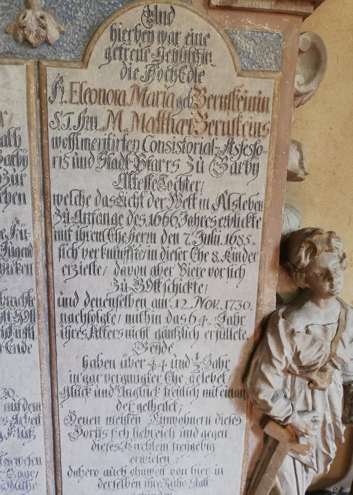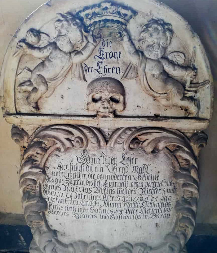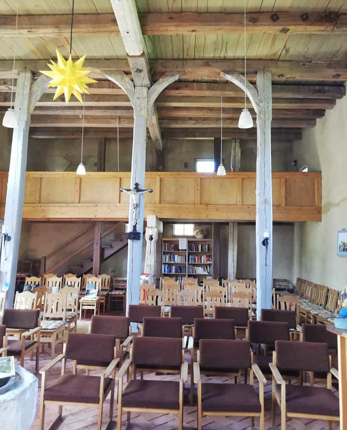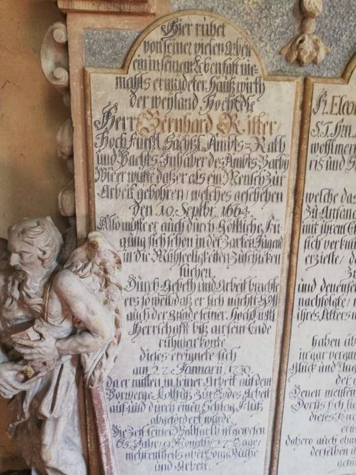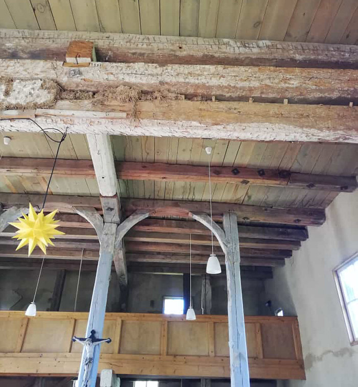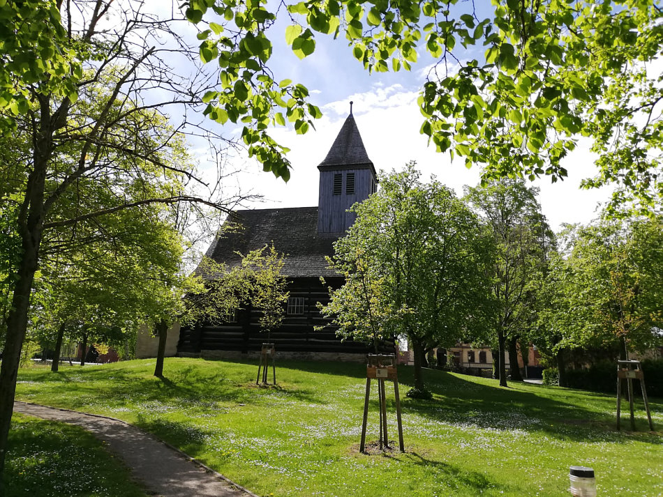 ![]() ![]() ![]() ![]() ![]() ![]() Schrotholz bezeichnet grob mit der Axt behauenes Holz, wie es zur Errichtung von Schrotholzkirchen und Schrotholzhäusern vor allem in Schlesien und in der Oberlausitz Jahrhunderte lang verwendet wurde. Es wurden überwiegend Kiefern und seltener Eiben zur Herstellung der mit einem Breitbeil vierkantig behauenen Baumstämme verwendet. Schon drei bis vier Jahre vor dem geplanten Fällen wurde die Rinde der ausgewählten Bäume in einem Abschnitt unter der Baumkrone spiralförmig entfernt, was zu einer Erhöhung des Harzgehaltes im Baumstamm in den folgenden Jahren führte. Dieser erhöhte Harzgehalt stellt einen natürlichen Schutz gegen Schädlings- und Verwitterungsschäden des Holzes nach dem Verbauen dar. Im Unterschied zu den aus runden Baumstämmen errichteten ursprünglichen Blockhäusern haben Schrotholzgebäude wegen des viereckigen Balkenquerschnittes eine vergleichsweise ebene, fugenlose Oberfläche. 1929 wurden in Ober- und Niederschlesien mindestens 130 Schrotholzkirchen gezählt. Um die Wende zum 20. Jahrhundert wurde das Holz bei den meisten Kirchen schrittweise durch Ziegel ersetzt. In Deutschland existieren Schrotholzkirchen in Wespen (Börde) und in Sprey (Oberlausitz). In der Kirche in Wespen sind wir heute. Der Ort liegt 30 km südöstlich von Magdeburg. ![]() ![]() Die Kirche ist fast 350 Jahre alt. Vor 30 Jahren wurde sie aufwändig restauriert. ![]() ![]() ![]() ![]() ![]() Ein achtseitiger Taufstein aus der Zeit der Spätgotik. In der Kirche befinden sich auch zwei aus Sandstein gefertigte Epitaphe. Eines für den 1726 verstorbenen Johann Matth. Lichtenfeld ... ![]() ... das andere von 1730 für die Eheleute Ritter. ![]() Bei letztere befinden sich seitlich der Inschriftentafel die Allegorien des Todes. ![]() ![]() ![]() ![]() Willkommen in der Sonntagskirche von Seelenfarben :)). Deine Gedanken zur Kirche und zum Kircheninnenraum ? |