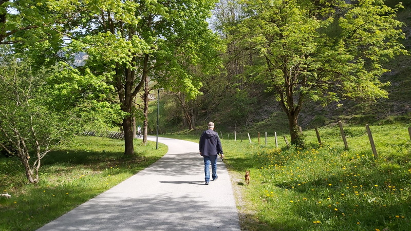 ![]() Die Aufgabe ist: (Du sagst mir, wo ungefähr du wohnst und ich suche dir eine Straße aus, die ich nicht kenne und du vielleicht auch nicht. Du fährst dorthin, steigst aus dem Auto aus oder vom Fahrrad, stellst den Timer auf dem Handy und dann hast du 30 Minuten Zeit, zu fotografieren. Von all den Bildern suchst du dann 10 aus, die ich zeigen werde.) In dieser Folge: Christine B. Da das Wetter heute (5. Mai) noch schön ist, sonnig und 20 Grad, aber ab morgen eine Kaltfront und Regen gemeldet wurde, sind mein Mann und ich gleich heute noch die 19km nach Dorfgastein gefahren, um die "Alte Strasse" zu suchen. ![]() Wir haben sie gefunden, sie führt aus dem Dorf hinaus in Richtung Bad Hofgastein. Dem Namen nach kannte ich diese Strasse nicht. Dort angekommen wusste ich, dass ich da früher schon einmal einen Teil gegangen bin ... vor vielen Jahren. Wenn man in das Gasteinertal hineinfährt (durch viele Tunnel!), dann ist der erste Ort Dorfgastein, danach kommen Bad Hofgastein und Bad Gastein und als letzter Ort Böckstein, wo wir wohnen. Die Bilder: ![]() Wir staunten, wie viele Rdfahrer da heute, Sonntag, auf der Alten Strasse unterwegs waren. Viele einheimische Familien, aber auch Radfahrer, die die 410km weite Strecke der "Alpe Adria" fahren, die Strecke geht in mehreren Etappen von Salzburg bis nach Grado/Italien. ![]() Dieses Haus hat einen Glockenturm mit Hahn am Dach, wie viele Häuser im Land Salzburg. Die Glocke im Turm diente vor Handyzeiten als Kommunikationsmittel der Bauern bzgl. Nachhauseruf (Essen), Alarmsignale etc. . ![]() Wir haben erfahren, dass dies der Garten vom Kindergarten Dorfgastein ist. ![]() Hier war keiner auf der Bahn. Vielleicht machen sie sonntags frei? Eisstockschießen ist sehr beliebt im Land Salzburg. Im Sommer schießt man die umgeänderten Eisstöcke auf Asphalt. ![]() An dieser Strasse stehen einige Wohnblöcke, 2 neue sind im Bau, die Wohngegend ist wirklich schön. ![]() ![]() Am Anfang und gegen Ende der Alten Strasse stehen jeweils solche Türme und die Tafel über Naturerlebnisse in Dorfgastein. Diese Tafel steht 2x auf dieser Strasse. Wir sahen auch große Steine mit den Namen und Erklärungen dabei. ![]() Unsere Nica, die sehr interessiert mit uns mitgelaufen ist, hat an einer Kneippanlage 2 kleine Boote entdeckt ![]() Hier wohnen die Insekten in einem wirklich schönen Hotel. ![]() Mein Mann und Nica auf der Alten Strasse, mit den schönen grünen Bäumen. Ganz haben wir die Strasse in den 30 Minuten nicht geschafft, aber ich denke, das Wichtigste ist auf den Bildern. Diese Sonntagsfototour hat uns dreien viel Freude gemacht. ![]() Die Kühe sind nach dem langen, schneereichen Winter sicher sehr glücklich, endlich wieder auf den Weiden zu sein. ![]() So geht die Alte Strasse weiter, ich kann nicht mehr dazu sagen, weil wir nach den 30 Minuten wieder umgekehrt sind, um ins Dorf zurückzugehen. In der Ferne sieht man, dass die Berge noch verschneit sind. Das war eine sehr sympathische Strasse und eine Gegend in schöner Natur, wo man sicher auch gerne wohnt. Der Sonntagsspaziergang auf der Alten Strasse hat uns dreien, Herrchen, Frauchen und Hund viel Freude und Spaß gemacht. |