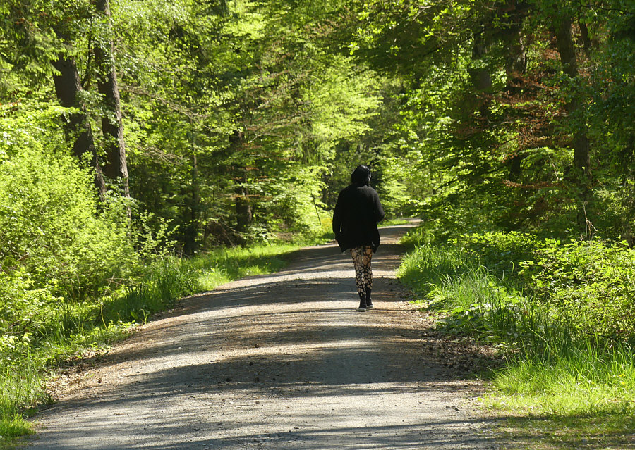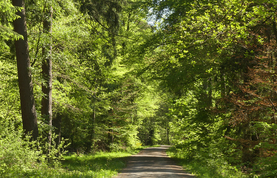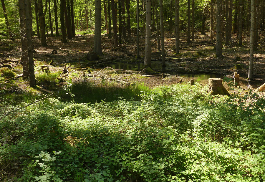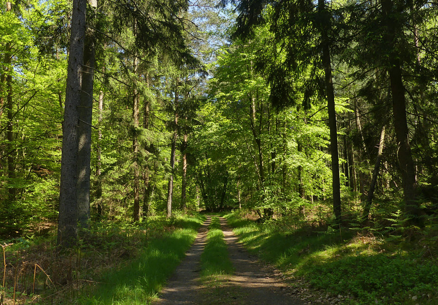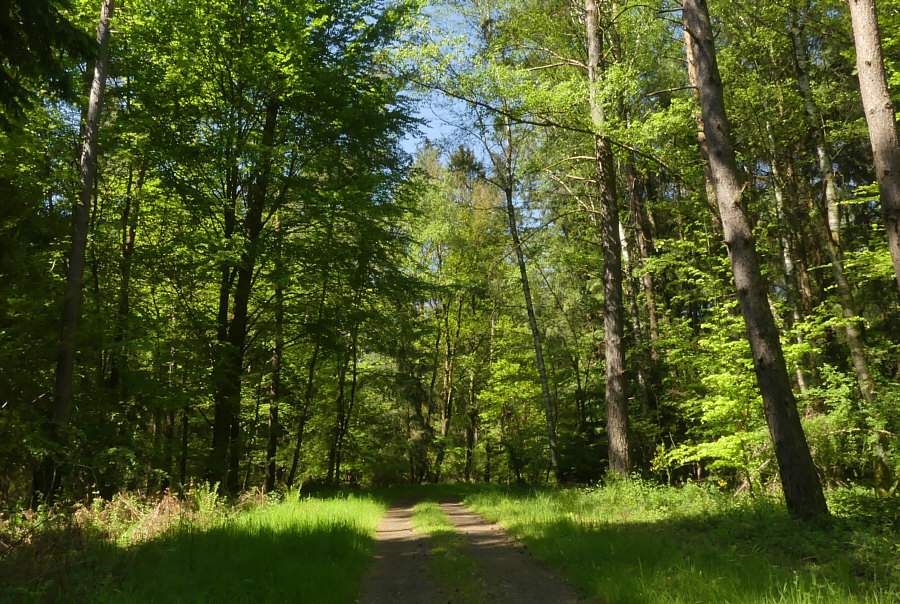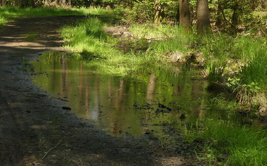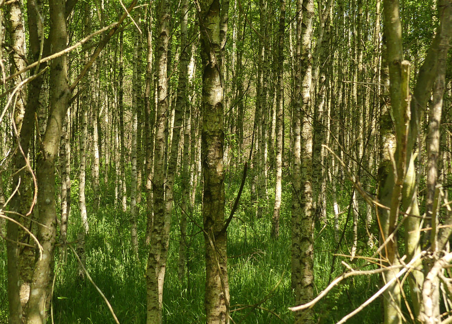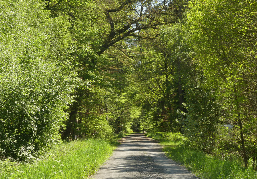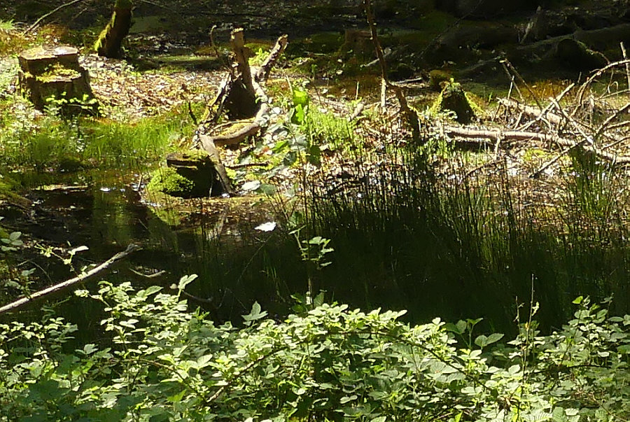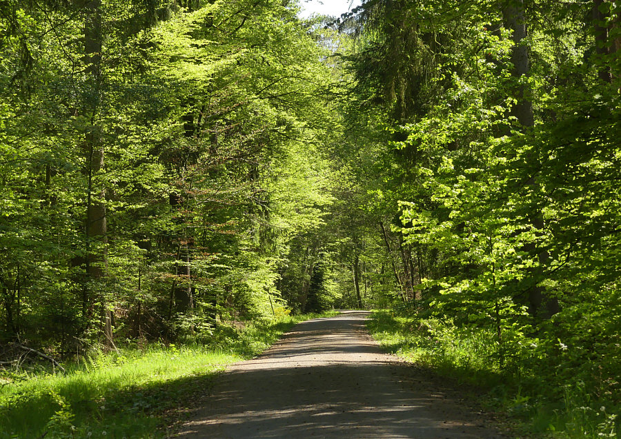 Kommt doch mal mit ... ... zu unserem Spaziergang, den wir letzten Samstag gemacht haben. Gar nicht weit weg, nur 10 km entfernt, aber alles Wege, die wir noch nie gegangen waren. ![]() Hier war unser Startpunkt ... hinter mir steht mein Auto. Unser Weg führt in den Wald: ![]() Es ist ein warmer, sonniger Frühlingstag ... ![]() ... der Ginster blüht und setzt gelbe Leucht-Akzente. Die Welt ist grün und schön ... ![]() ... und da das Naturschutzgebiet ist, darf das auch so bleiben. Dieses Bild war in kleiner ... ![]() ... schon im Abreißkalender zu sehen ... hier nochmal in groß. Wir kommen an Holz vorbei ... ![]() ... und wir haben nachgezählt ... es sind wirklich insgesamt 36 Stämme. Am Heiligen Abend geschlagen ? Oder als Weihnachtsgeschenk gedacht ? ;). Ziemlich feuchte Wiesen ... ![]() ... an denen wir vorbei laufen. Wunderbarer Frühlingswald ... ![]() ... sogar einen jungen Birkenwald gibt es hier: ![]() Wenig später begegnete uns die junge Lady ... ![]() ... über die wir uns ja schon im Tagebuch unterhalten haben ;). Traumhafte Wege gibt es hier ... ![]() ... grün bewachsen ... mitten in der Natur sind wir hier. Der einzige Schönheitsfehler sind einige Buchenbäume ... ![]() ... die leider durch den Frost arg gelitten haben, wie hier rechts im Bild. Auch im Wald ist es feucht ... hier ... ![]() ... ist sogar mitten im Wald ein kleiner Tümpel: ![]() Wir laufen weiter ... ![]() ... sehen frisches Frühlingsgrün an den Nadelbäumen ... ![]() ... und sogar ein Gänseblümchen strahlt uns an: ![]() Wir laufen durch gemischten Nadel- und Laubwald ... ![]() ... hier mal ein Baumstamm in Nahaufnahme: ![]() Der Fuß des Baumes ist von Moos überwuchert: ![]() Waldwege mit Schatten und Licht ... ![]() ... eine Wohltat für Auge und Seele. Hier bleiben wir stehen ... ![]() ... nicht, weil wir nicht weiter können ... sondern weil ... ![]() ... wir einfach nur schauen ... wie schön doch die Baumstämme sich spiegeln. Lass uns hier verweilen ... morgen laufen wir weiter. |