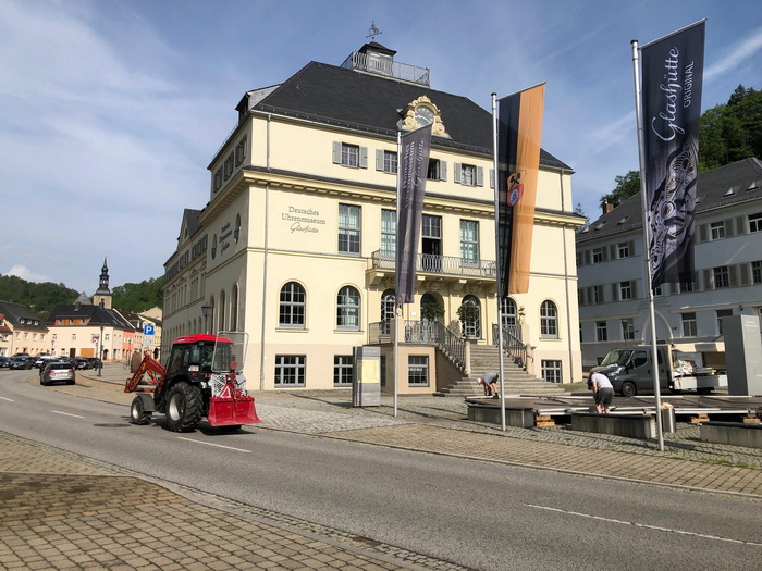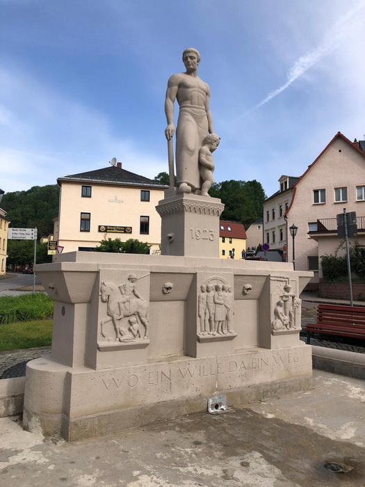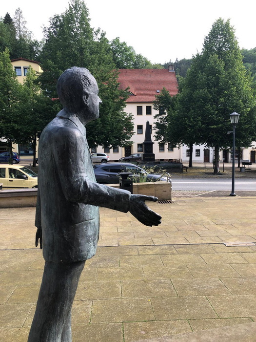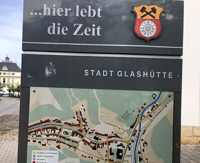 ![]() Die Aufgabe ist: (Du sagst mir, wo ungefähr du wohnst und ich suche dir eine Straße aus, die ich nicht kenne und du vielleicht auch nicht. Du fährst dorthin, steigst aus dem Auto aus oder vom Fahrrad, stellst den Timer auf dem Handy und dann hast du 30 Minuten Zeit, zu fotografieren. Von all den Bildern suchst du dann 10 aus, die ich zeigen werde.) In dieser Folge: Ingrid Geb. Ingrid schreibt und zeigt: Mein Auftrag hieß: die Hauptstraße in Glashütte fotografieren. Der Name war mir gut bekannt, wegen der guten Uhren. Im Museum war ich vor ein paar Jahren, das hat mir sehr gut gefallen. Sonst bin ich nur ein paar mal durchgefahren nach Dippoldiswalde. Mit dem Wetter hatte ich großes Glück und es hat riesigen Spaß gemacht, denn es gab viel zu entdecken. ![]() Am unteren Ende der Straße steht eine Postmeilsäule von 1734. Sie zeigt die Entfernung in (Weg-)Stunden zu vielen Orten, z. B. nach Dresden 6 1/4 St. = 28,32 km. ![]() Im großen Gebäude des Glashütter Uhrenmuseums sind sehenswerte Ausstellungen, die die Geschichte und Faszination der mechanischen Zeitmesser zeigen. Ein breiter verzierter Treppenaufgang schmückt das Haus. ![]() Rechts daneben steht ein rötlicher unbehauener Gedenkstein für den Erfinder der Taschenuhr Peter Henlein. ![]() Hinter dem Museum ist eine grüne Freifläche mit einen großen Granitdenkmal, evtl. ein Brunnen, von 1923 "Wo ein Wille, da ein Weg". ![]() In Glashütte wohnten, wie der Name sagt seit 1400 Bergleute und Hüttenarbeiter. Das Stadtrecht wurde 1506 verliehen. Seid 1845 gibt es Uhren- und Feinmechanische Industrie, die auch heute noch eine große Rolle spielt. Das Stadtwappen zeigt Hammer mit Schlegel und darunter eine Uhr. ![]() Da die Hauptstraße von Glashütte vom Müglitztal nach oben auch über den Markt führt, findet man alles was zu einer Stadt gehört: alte (1790) und neuere Wohnhäuser aneinandergereiht, ein paar wenige Geschäfte, Café, Rathaus mit Standesamt, und die St. Wolfgangskirche mit 3 Friedensglocken davor. ![]() Der Eingang vom Rathaus. ![]() Vor der Kirche und werden 2 Uhrmachermeister gehrt: Walter und F. Adolph Lange. Von Walter Lange stammt der Ausspruch: "Es gibt etwas, das sollte man nicht nur von seiner Uhr, sondern auch von sich selbst verlangen: Niemals stehen zu bleiben." ![]() Ab dem Markt ist die Priesznitz, ein Bach der unten in die Müglitz mündet, nicht mehr unterirdisch, sondern von Geländer, Bäumen und Beeten eingefasst. Eine Schöpftreppe führt hinab und diente früher der Wasserversorgung fürs Vieh. ![]() Autos können parken und geladen werden und Katzen genießen den Ausgang. ![]() Nicht nur die Feinmechanik ist zu Hause, es gibt auch einige andere Geschäfte. ![]() Sogar die Feuerwehr hat eine große Uhr an der Hauswand. Das waren 12 Fotos von vielen mehr, denn es ist ein interessantes Städtchen. In Glashütte wohnten, wie der Name sagt seit 1400 Bergleute und Hüttenarbeiter. Das Stadtrecht wurde 1506 verliehen. Und: "In Glashütte lebt die Zeit". ![]() Es war mir ein Vergnügen! |