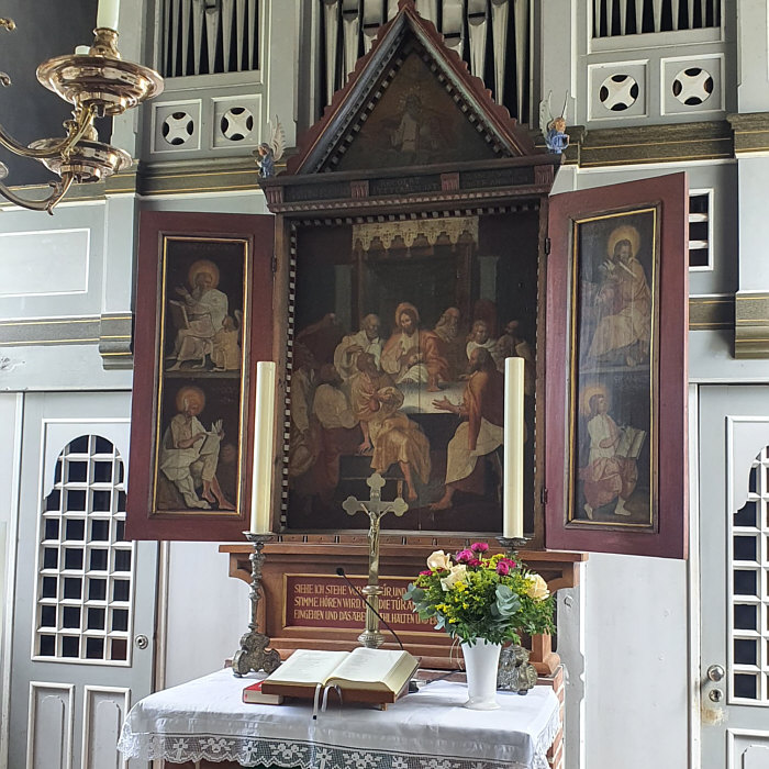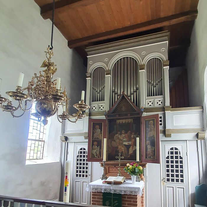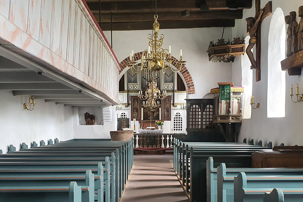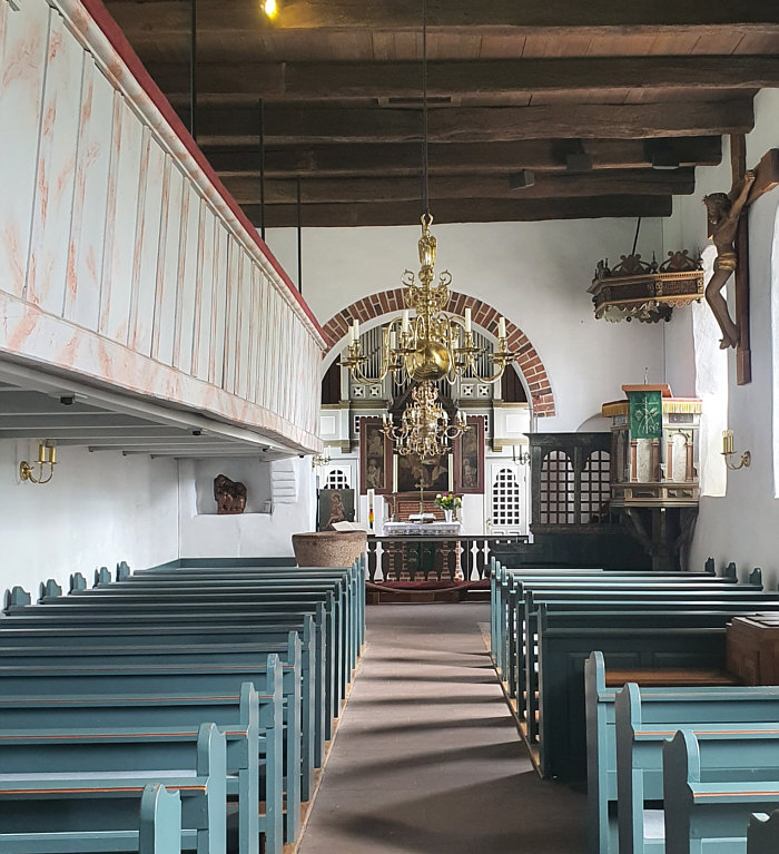 ![]() ![]() ![]() ![]() ![]() ![]() ![]() ![]() ![]() ![]() ![]() ![]() ![]() ![]() ![]() ![]() ![]() Wir sind heute auf der Insel Amrum in Nordfriesland. 1236 wurde die Kirche erbaut ... da man sich nicht einigen konnte, ob die Kirche in Norddorf oder in Süddorf stehen soll, hat man sie einfach zwischen den beiden Dörfern in die Mitte der Insel gebaut. Um die Kirche herum entstand dann das Dorf Nebel (deutsch: Neues Dorf). Weitere Infos zu der Kirche finden man in diesem Wikipedia-Artikel: St.-Clemens-Kirche_(Nebel) Willkommen in der Sonntagskirche von Seelenfarben :)). Deine Gedanken zur Kirche und zum Kircheninnenraum ? |