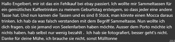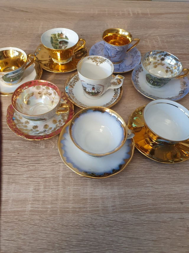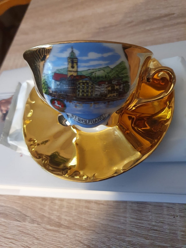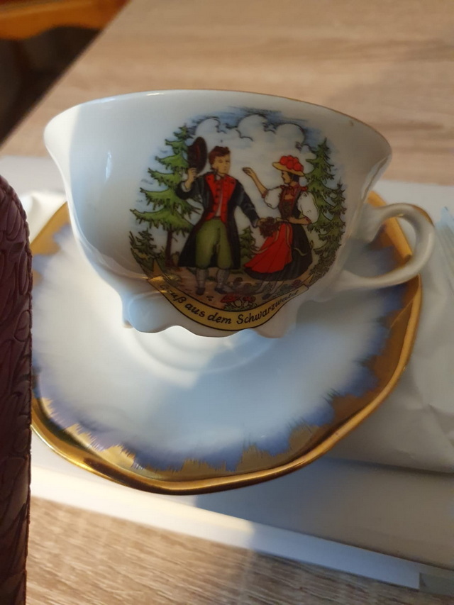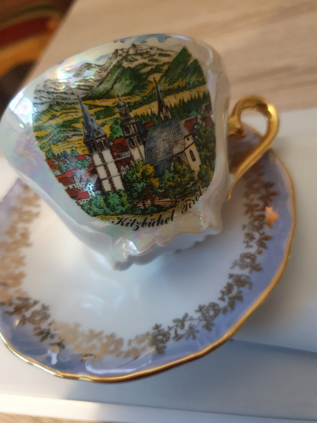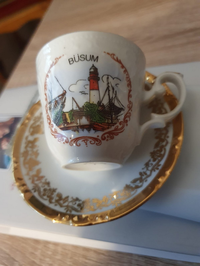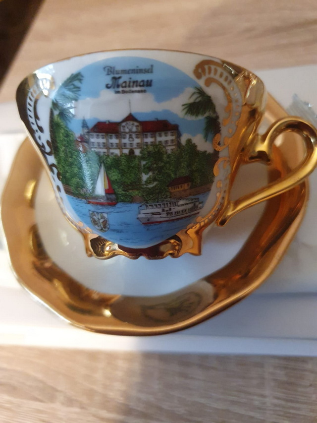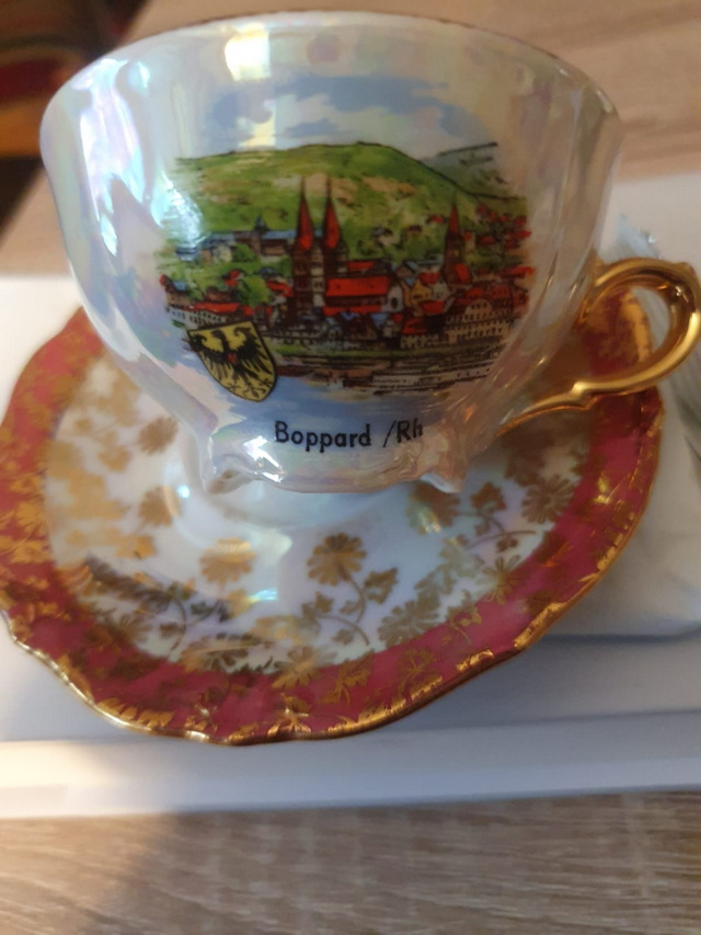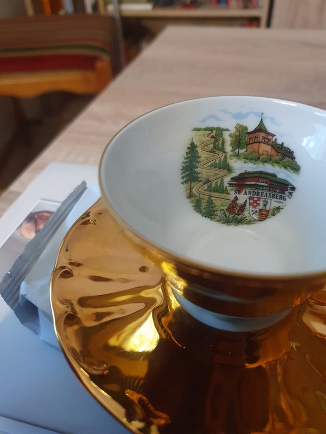 Einer Seelenfärblerin ist folgendes passiert: ![]() Liebe Seelenfärblerin ... das sind auch keine klassischen Sammeltassen. Streng genommen ist zwar jede Tasse, die man sammelt oder sammeln kann, im weiteren Sinn eine Sammeltasse ... aber die klassischen Sammeltassen sind groß genug für Kaffee ... hier hat jemand Tassen, die er aus dem Urlaub mitgebracht hat, "gesammelt". Das sind alle Tassen: ![]() Drei davon haben Sammeltassengröße ... die anderen sind Mokkatassen. Auf den ersten Blick eine normale Sammeltasse ... ![]() ... auf den zweiten Blick aber ... ![]() ... eine Erinnerung an Boppard. Oder hier ... ![]() ... eine Erinnerung an ... ![]() ... Kitzbühel. Nur diese Tasse hat keinen Ort, sondern nur Design: ![]() Nun schauen wir mal, wo der Verkäufer oder die Verkäuferin noch überall so war: ![]() ![]() ![]() ![]() ![]() Sind ja wunderbare Urlaubsziele ;). Und ob die Tassen wunderbar sind, liegt im Auge des Ermessens. Manchen gefällt sowas richtig gut, andere rennen schreiend davon oder rufen "wo ist der nächste Polterabend" *gg*. Wie gesagt ... gegen Porto-Erstattung sind die Tassen in wenigen Tagen bei dir. Nur du kannst sie retten ;). Deine Gedanken zu den Tassen ... pardon Tässchen. |