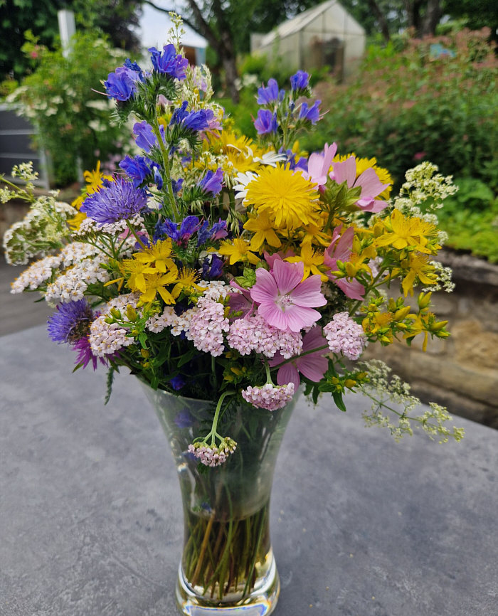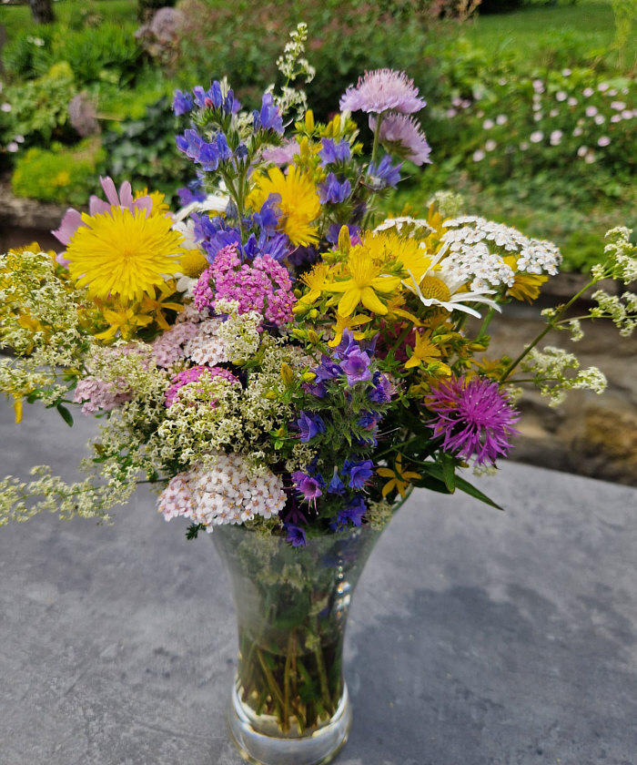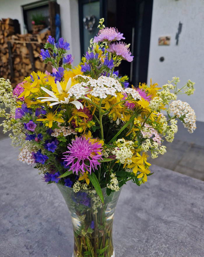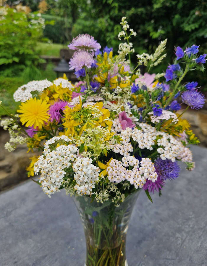 Manche Dinge führen zum Blütenglück Zum Ersten _gerlinde, die diesen wunderschönen Strauß im Status hatte. Zum Zweiten ... _gerlindes Mann, der diesen Strauß vom Hundespaziergang mitgebracht hatte. Und zum Dritten ... die wunderbare Natur, die uns so reichhaltig mit Blumen beschenkt. Von allen Seiten darf ich diesen Wiesenblumenstrauß zeigen: ![]() ![]() ![]() ![]() |