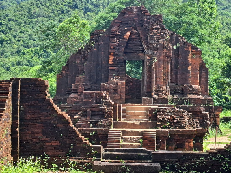 ![]() Mit Schpatz nach Vietnam ... Folge 10 (Folge 1, Folge 2, Folge 3, Folge 4, Folge 5, Folge 6, Folge 7, Folge 8, Folge 9) Heute gibts einen zusätzlichen Ausflug nach My Son. Das ist eine Tempelstadt, die seit 1999 Weltkulturerbe ist. Aus dem Reich der Cham (2./3. Jahrhundert) sind in My Son mehr als 70 Tempel erhalten geblieben. Die Tempelstadt ist also fast 2000 Jahre alt. 2002 begannen die Ausgrabungen. Die Anlage war nach dem Zerfall des Champa-Reiches in Vergessenheit geraten und Ende des 19. Jahrhunderts durch die französischen Kolonialherren wiederentdeckt worden. ![]() ![]() ![]() ![]() ![]() ![]() Nach der Besichtigung fahren wir in ein Dorf zum Mittagessen. Hier gibts einen kleinen Kochkurs, hier dürfen wir lernen, aus Hähnchen, Garnelen, Sprossen und einem Reisteig Omelette zu machen. Diese werden dann in Reisblätter eingerollt und mit Fischsoße gegessen. ![]() Und danach dürfen wir mit Fahrrad fahren die Verdauung ankurbeln, denn auf zwei Rädern fahren wir nach Hoi An zurück. An Wasserbüffeln und sogar einem Regenbogen vorbei. ![]() ![]() ![]() Abends gehen wir noch mal in die Laternenstadt, diese Bilder hatte ich in der letzten Folge gezeigt. Dann guts Nächtle ... ... und der nächste Tag ist wieder ein Flugtag. Aber vorher ist noch Zeit ... ... und so machen wir zuerst einen Abstecher zu einer Marmor- und Jadefabrik. Zu sehen gibt es viele riesige Skulpturen ... ![]() ![]() ... aber auch kleine Figuren und Schmuck. Weiter gehts zu einem Museum der Chem-Kultur. Ca. 300 Exponate aus 8 Jahrhunderten gibt es hier zu sehen. ![]() ![]() ![]() ![]() Was wir nicht verpassen dürfen, ist die berühmte Drachenbrücke: ![]() Leider sehen wir sie nur von hinten. Aber wozu gibt es Wikipedia ;). ![]() Und Wiki sei Dank können wir diese Brücke auch bei Nacht sehen: ![]() ![]() Nun wirds aber Zeit, uns zum Flieger zu begeben, unser nächsten Ziel ist Saigon ... so haben wir das in der Schule gelernt ... heute heißt die Stadt ja Ho-Chi-Minh-Stadt. Das ist die größte Stadt und das wirtschaftliche Zentrum Vietnams. [ wird fortgesetzt ] |