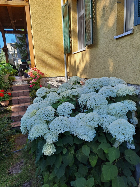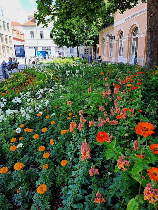Sywe schickt jeden Tag per Whatsapp an einen Verteiler ein Bild und eine Zeile Text. Als Morgengruß und als Lebenszeichen. Ganz spontan habe ich mich entschieden, mal die Bilder der letzten 30 Tage hier zu zeigen. Am Anfang steht übrigens immer "guten Morgen" und hinten "hab einen schönen Tag" ... das nur zur Info, denn das schreibe ich nicht jedes Mal dazu. ![]() 18.6. - Guten Morgen, ich war an der Ilm und erstaunt, wie hoch sie ist. ![]() 19.6. - Die Rosen erblühen immer mehr und erfreuen uns. ![]() Die Geranien (Pelargonien) habe ich die ganze Zeit vor dem Starkregen geschützt. Sie danken es mir mit vielen Blüten. ![]() 21.6. - Diesen Blumenstrauß bekam ich gestern geschenkt und ich möchte ihn mit Dir teilen. ![]() 22.6. - Diese Rose habe ich mir aus dem Garten geholt. Der Rosenstock ist schon mehr als 30 Jahre alt und er wurde an einer schattigen Stelle gepflanzt. Sie treibt jährlich nur 3 Blüten, aber sie gibt nicht auf. ![]() 23.6. - Sie kommen das ganze Jahr, weil immer etwas für sie da ist. ![]() 24.6. - Das ist meine Lieblingsrose im Garten, die "Gloria Dei" ein alter Busch, der ein wenig Liebe braucht. ![]() 25.6. - Das ist das große Beet vor dem Haus der Weimarer Republik. Jedes Jahr toll bepflanzt. ![]() 26.6. - Es ist nicht zu glauben - morgens früh, 10.30 Uhr, viele Weimarer sind verreist und die Touristen sind noch im Hotel, und die Schillerstraße ist leer. ![]() 27.6. - Der Blick auf unser Schloss ist immer wieder schön. ![]() 28.6. - Dieser Baum erinnerte mich an das Lied "Alt wie ein Baum ..." und deshalb habe ich ihn fotografiert. ![]() 29.6. - Gestern in Naumburg gesehen - Peter und Paul über einem alten Hauseingang. ![]() 30.6. - Heute möchte ich Dir einen Rosengruß aus dem Garten schicken. ![]() 1.7. - Mit dieser Blume vom Straßenrand wünsche ich Dir einen schönen Tag. Das 2. Halbjahr hat begonnen, man kann es gar nicht glauben, die Zeit rennt. ![]() 2.7. - Der Lerchensporn darf sich im Garten ausbreiten, er erfreut mit seinen gelben Blüten. ![]() 3.7. - Ein lieber Gruß vom gestrigen Ausflug nach Belvedere. ![]() 4.7. - Das ist eine Speerblume, ich habe sie bisher noch nie gesehen und fand sie sehr interessant. ![]() 5.7. - Das ist das "luftige" Theater in Belvedere. ![]() 6.7. - Gestern in einer der herrlichen Blumenanlagen in der Stadt fotografiert. ![]() 7.7. - Hier steige ich immer in den Bus, wenn ich in die Stadt fahre. ![]() 8.7. - Der Schmetterling hat es sich auf den Terrassentisch gemütlich gemacht. Der erwärmte Stein hat im wohl gefallen, denn er saß lange da. ![]() 9.7. Heute ist der richtige Tag, um in Wassernähe zu sein. ![]() 9.7. zusätzlich - in diesem Futterhaus auf meiner Terrasse brüten die Rotschwänzchen. Einer sitzt auf den Eiern, man sieht nur den Kopf mit den großen Augen. Er rührt sich nicht. Und der andere bringt Futter. Heute früh konnte ich es genau beobachten. Sie haben keine Angst vor mir, wenn ich daneben sitze. Wunderschön! ![]() 10.7. - Meine große Hortensie blüht wunderschön. ![]() 11.7. - Zum Kirschfest in Naumburg wurden solche Sitzgelegenheiten in der Stadt aufgestellt. Ich fand die sehr gut. ![]() 12.7. - Die Schnecken lieben die Blätter der Hostas, deshalb sind sie in diesem Jahr zerfressen, trotzdem blühen sie und die Insekten freuen sich. ![]() 13.7. - Dieses Schauspiel konnte ich gestern von der Terrasse aus sehen. ![]() 14.7. - Heute ein Foto von unserem Friedhofsgebäude. ![]() 15.7. - Am Wegrand entdeckt - das ist der hohe Steinklee. ![]() 16.7. - Diese Blumen heißen Entenschnabelfelberich die Bienen mögen diese Blüten. |