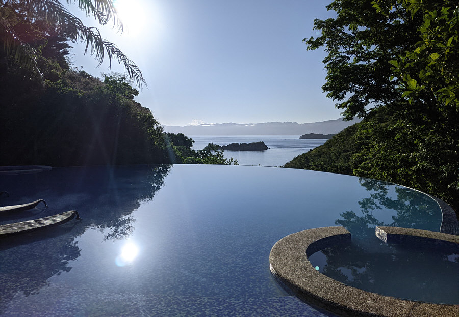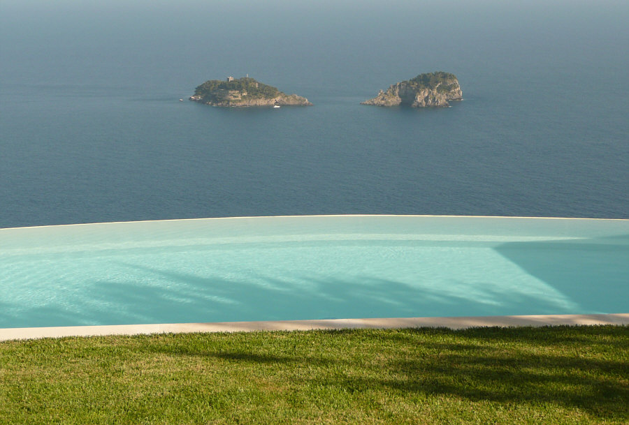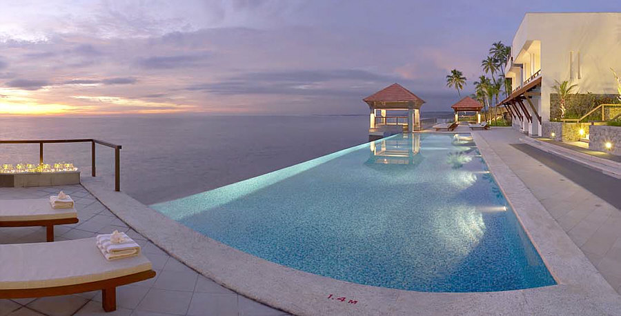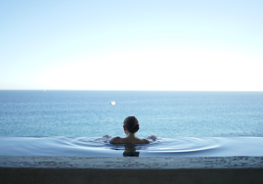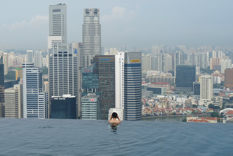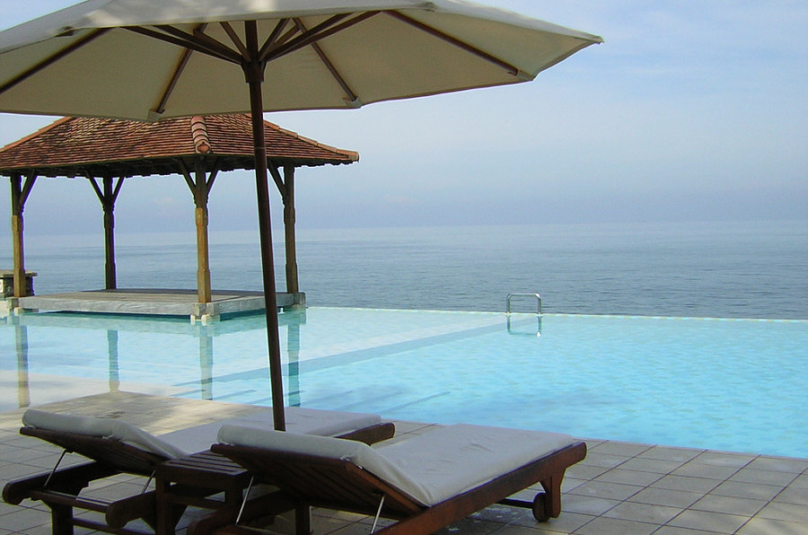 Ein Infinitypool (englisch für Unendlichkeitsbecken) ist eine besondere Art von scheinbar kantenlosem Schwimm- oder Reflexionsbecken, bei dem ein Ende so abgesenkt ist, dass man den Eindruck hat, das Wasser würde im Nichts oder in der Unendlichkeit (englisch infinity) verschwinden. Tatsächlich läuft das Wasser über die abgesenkte Kante eines Überlaufs in eine außen befindliche Überlaufrinne ab. Dieser Unendlichkeitseffekt ist besonders eindrucksvoll, wenn das Wasser des Beckens scheinbar mit dem Wasser eines Meeres verschmilzt. ![]() Amalfi-Küste ![]() Sri Lanka ![]() Mexiko ![]() St. Lucia ![]() Philippinen ![]() Singapur ![]() Jungferninseln ![]() Lignano Sabbiadoro, Italien ![]() Indien |