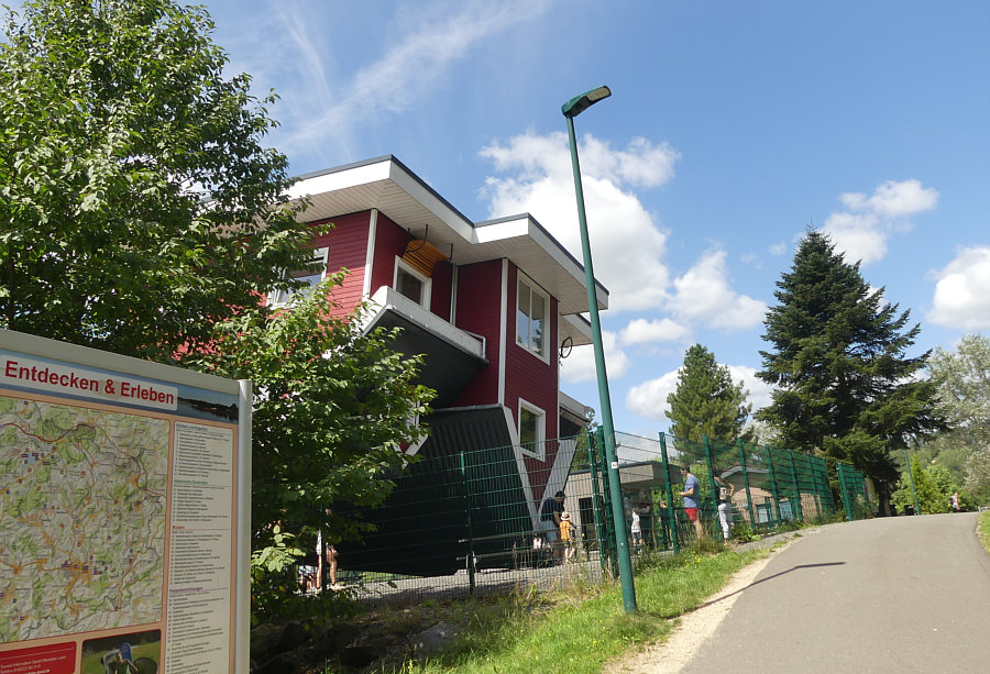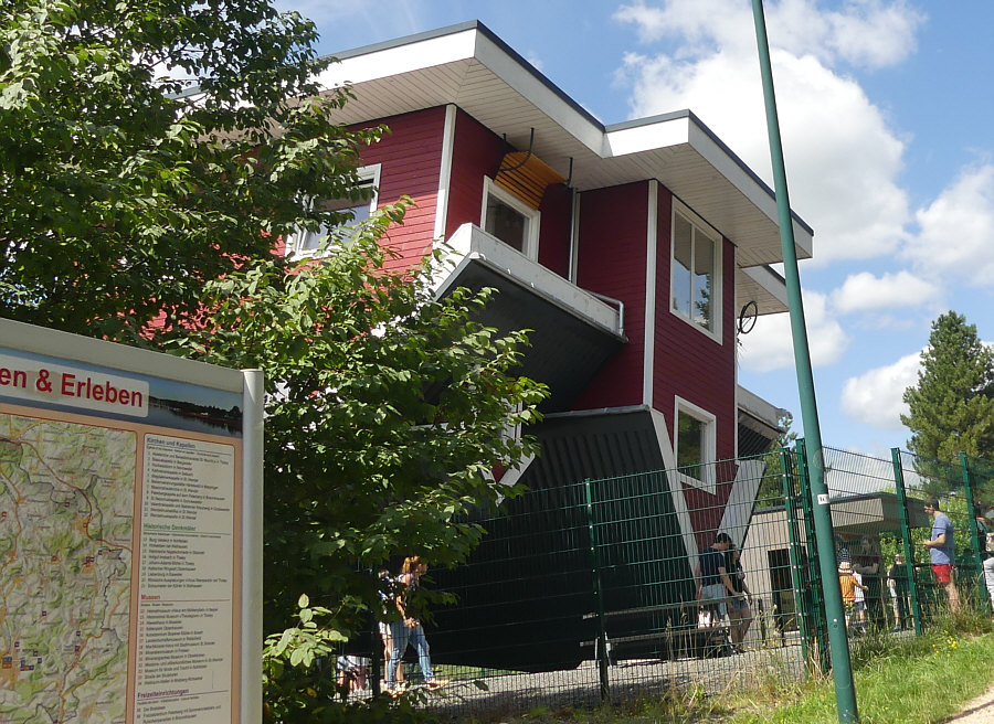 Spaziergang ![]() Teil 6 Hier ... ![]() ... stehen wir ... und die Welt steht Kopf ? Die auch ... aber hier vor allem dieses Haus. Wer näher hinschaut ... ![]() .. sieht eine Sitzbank und ein Fahrrad, die auch auf dem Kopf stehen. Da sind also lustige Details eingearbeitet worden. ![]() ![]() Es waren auch ein paar Leute, die ums Haus liefen und bestimmt drinnen auch welche, aber wir sahen dieses Schild ... ![]() ... und sagten "ach nöö, dann doch nicht". Aber Suse war in einem ähnlichen Haus auch drinnen und diese Bilder zeige ich dann mal im Lichtblick. Wir sind dann weiter ohne ins Haus rein zu gehen. Ich hab mich dann anderen Dingen zugewandt ... direkt gegenüber diesem Haus steht ein Baum: ![]() Ist schwer zu erkennen, das gebe ich zu ... ![]() ... das ist ein Schnullerbaum. Wahrscheinlich Schnuller all der Kinder, die das Haus besichtigt haben und deren Mund dann vor Staunen weit offen stand ;). Wir laufen weiter ... ![]() ... links der See und das Strandbad und vor uns ein Dingensda ... ![]() ... das sich beim näheren Hinsehen als ein Memoryspiel entpuppt. Kleiner Blick ins Strandbad hinein ... ![]() ... dann durch ein kleines Stück Wald ... ![]() ... über einen weiteren Parkplatz ... ![]() ... zu einem beschaulichen Teil unseres Weges: ![]() ![]() Hier wäre, was ich erst im Nachhinein gesehen habe, ein alter jüdischer Friedhof in der Nähe gewesen. Beate sagt, sie hätte ein Schild gesehen und mir das gesagt, aber ich hätte nicht weiter drauf reagiert. Sorry, deine Worte sind nicht bis in mein Aufmerksamkeitszentrum vorgedrungen. Unser Weg ist richtig schön ... ![]() ... und gleich sind wir wieder im Ort. Aber erst mal nach rechts blicken ... ![]() ... denn da gibts ziemlich glückliche Pferde. Wieder im Ort drinnen ... ![]() ... gibts ein Stillleben aus Ruhebank, vergessener Flasche auf der Bank, Postauto und Halteverbotsschild. So geht unser Weg weiter ... ![]() ... mal zur Abwechslung ein bisschen bergauf. Und vorbei an schönen Herbstanemonen: ![]() Vorbei auch am Stöckelschuhparadies ... ![]() ... welche ein grandioser Hindernisparcour ... ![]() ... für so beschuhte Damen. Aber die warten ja auf der Straße, bis das Auto vorgefahren ist ;). Hab ich so in dieser Form auch noch nicht vor einer Garage gesehen. Wir laufen weiter ... ![]() ... diese Inkalilien als Topfpflanze hatte ich schon im Tagebuch gezeigt. Wir erblicken eine Kirche ... ![]() ... und fragen uns ... ![]() ... ob das wohl die Sonntagskirche ist, in die wir morgen reingehen werden ? [ wird fortgesetzt ] |
