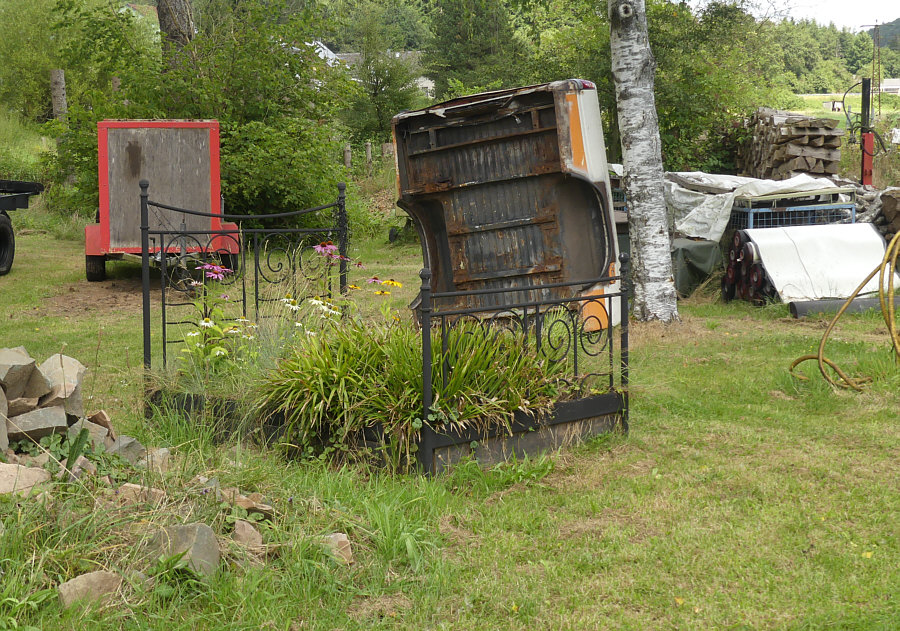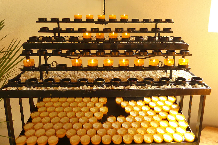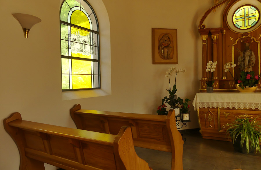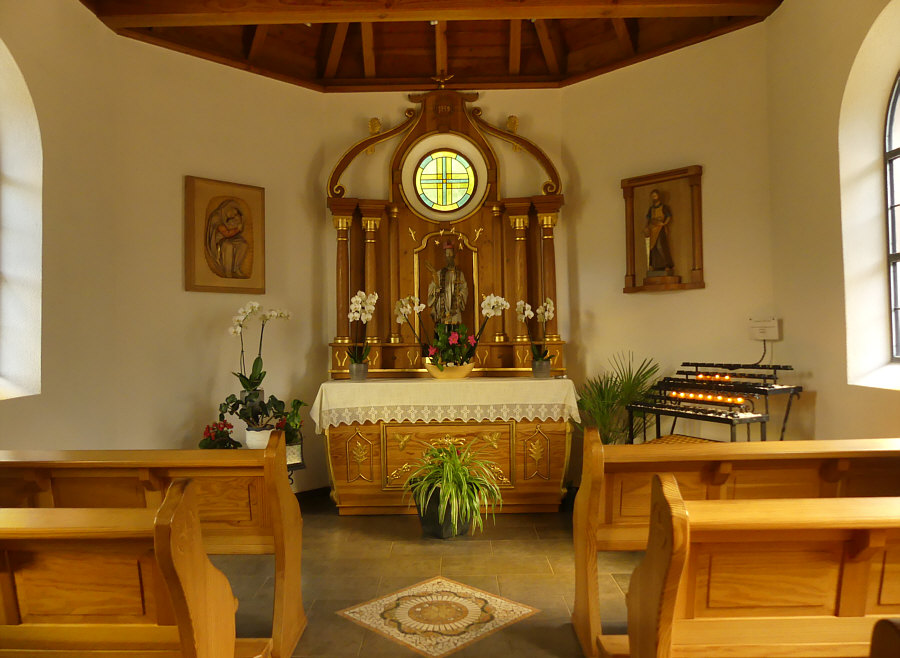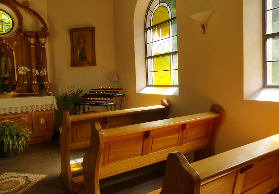 Spaziergang ![]() Teil 7 Stehen wir hier vor unserer Sonntagskirche ? ![]() Nein. Oder besser: noch nicht. Ich weiß gar nicht, ob sie offen gewesen wäre. Normalerweise geht Beate mal schauen, ob sie offen ist. Zum einen, das ich das Gefühl habe, dass Kirchen öfter offen sind, wenn Beate an der Tür rüttelt. Zum anderen, weil oft Stufen zur Kirchentür führen und ich Treppen nur laufe, wenn das notwendig ist. Weiter gehts ... wir kommen an ... ![]() ... an Markisen vorbei, die für mich Nostalgie sind. Diese Art Markisen sieht man eher bei alten Lokalen oder Eiscafes. Hier in einem bewundernswert gutem Zustand, der Zahn der Zeit nagt ja gern an solchen Markisen. Da vorne beim Stoppschild ... ![]() ... müssen wir rechts und dann gleich wieder links. Ich zeige mal auf dem Bild von oben, wo wir gerade sind ... ![]() Die gelbe Strecke war der erste Teil, bis wir am Wasser waren ... danach am Wasser entlang, durch den Wald wieder in den Ort zurück und am weißen Kreis stehen wir jetzt. Die Spitze des Pfeils ist unser Ziel. Uuups ... ![]() ... ein Wintergarten ohne Fallschutz ... das ist mutig und bestimmt nicht erlaubt. Ganz erstaunliche Dinge entdeckt man bei einem Spaziergang. Unser Weg ... ![]() ... führt wieder aus dem Ort raus ... ![]() ... fällt Euch an diesem Bild etwas auf ? Ist dort etwas, das man eigentlich nicht erwarten würde ? Ja, genau, das Kreuz im Wald ... ![]() ... ich kann aber nicht auflösen, was das zu bedeuten hat. Es könnte ein Hinweis sein, aber ich glaube eher, dass es ein Höhenkreuz ist. Wir gehen weiter ... ![]() ... wir gehen gleich über ein kleines Brückerl ... doch erst schauen wir uns die Hinweistafel, die rechts im Bild steht, an. ![]() Ja, genau, es wäre ein Erlebnis, diese Hinweistafel zu lesen. Mensch ... sowas reinigt oder erneuert man ab und zu. Wir erblicken ... ![]() ... ein altes Bett mit Blumen und ein Fragment eines Autos ... noch ein Erlebnis ;). Dafür dürfen wir, auf dem Brückerl stehend ... ![]() ... ein lauschiges Bächlein fotografieren. So geht unser Weg weiter ... ![]() ... und hinter der nächsten Kurve ... ![]() ... das wird doch wohl nicht ... aber doch ... da ist doch tatsächlich ... ![]() ... unsere Sonntagskapelle. Es gab schon 1743 eine Kapelle ... die damals als Schlosskapelle errichtet wurde. Das Schloss hat die französische Revolution nicht überstanden, aber die Kapelle hat die Wirren dieser Zeit heil überstanden und war seitdem eine Erinnerung an das Schloss. Bis zum Jahr 1970 ... da musste die Nahetalstraße verbreitert werden und deswegen wurde die alte Kapelle leider abgerissen. Sie war zwar renovierungsbedürftig ... aber Jahre nach dem Abriß wurde der Bevölkerung dann doch bewusst, welches historisch wertvolle Gebäue da nun nicht mehr steht. Und so schlossen sich Jahre später eine große Anzahl freiwilliger Helfer im Kulturverein zusammen, um eine ähnliche Kapelle außerhalb des Ortes ehrenamtlich, mit viel Eigenleistung und Engagement wieder neu zu errichten. Ermöglicht wurde dieses Projekt durch ein Startkapital, das das Umweltministerium im Zuge der Dorfentwicklungsmaßnahmen zur Verfügung stellte. Dazu kamen weitere öffentliche und private Spender. 2005 wurde die neue Nepomuk-Kapelle feierlich eingeweiht. ![]() Das Gestühl und der Altar wurden von einem Schreinermeister und seinem Bruder in unzähligen Arbeitsstunden hergestellt. ![]() ![]() ![]() Die ebenfalls vom Schreinermeister handgeschnitzte Nepomukstatue: ![]() Das Marienbild ... ![]() ...stammt aus einer Schnitzerwerkstatt in Südtirol ... die Statue des hl. Josefs ... ![]() ... wurde gespendet. Der Spaziergang ist noch nicht zu Ende, aber lasst uns nun innehalten und ein Licht anzünden. ![]() Wird irgendwann fortgesetzt, aber heute verweilen wir in der Kapelle und lassen den bisherigen Spaziergang Revue passieren. |