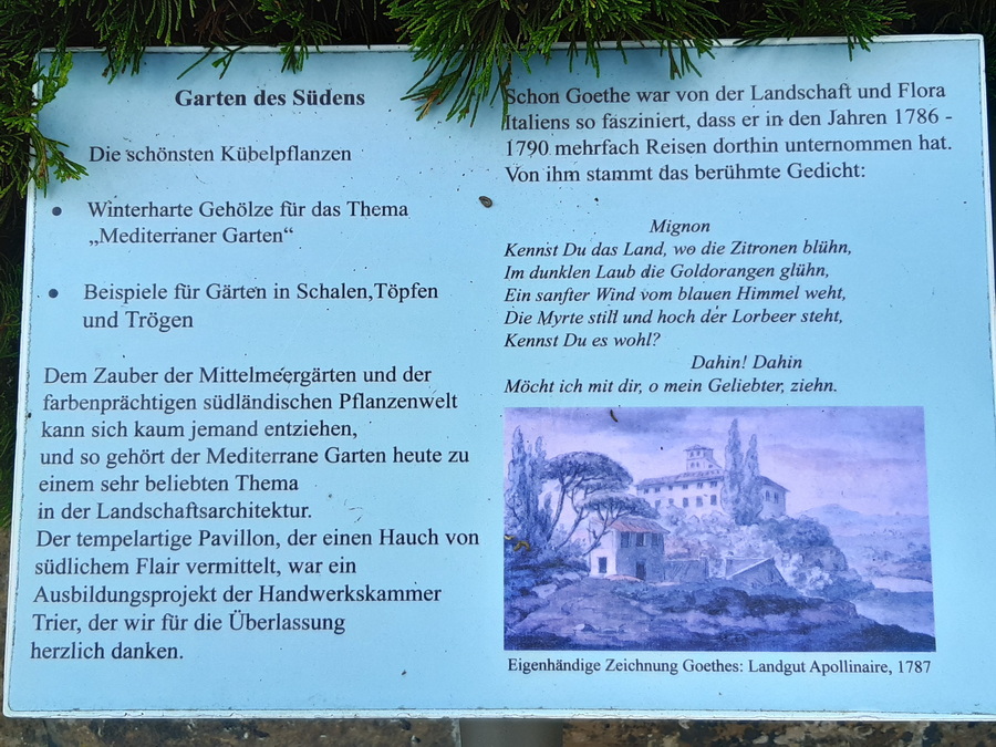 Gitta im Arboretum Teil 4 (Teil 1, Teil 2, Teil 3) ![]() Auch heute sind wir in Ellerhoop im Arboretum. Der Weg wird nun schmaler ... ![]() ... und wir nähern uns dem "Garten des Südens": ![]() ![]() Hier können wir uns auf eine kleine Mauer setzen, dem Plätschern des Wassers zuschauen und den Augenblick genießen. ![]() ![]() ![]() ![]() ![]() Von hier aus nur ein paar Schritte weiter schauen wir in den "Garten der purpurnen Impressionen": ![]() ![]() ![]() ![]() ![]() ![]() Noch ganz erfüllt vom Farbenrausch biegen wir vom Weg ab und finden einen ganz besonderen Platz dieses Arboretums. Morgen :). [ wird fortgesetzt ] |
