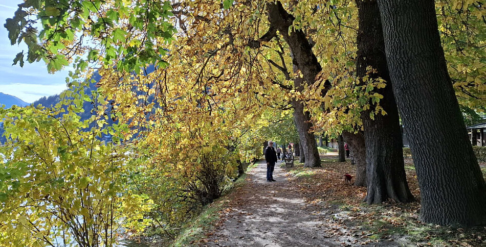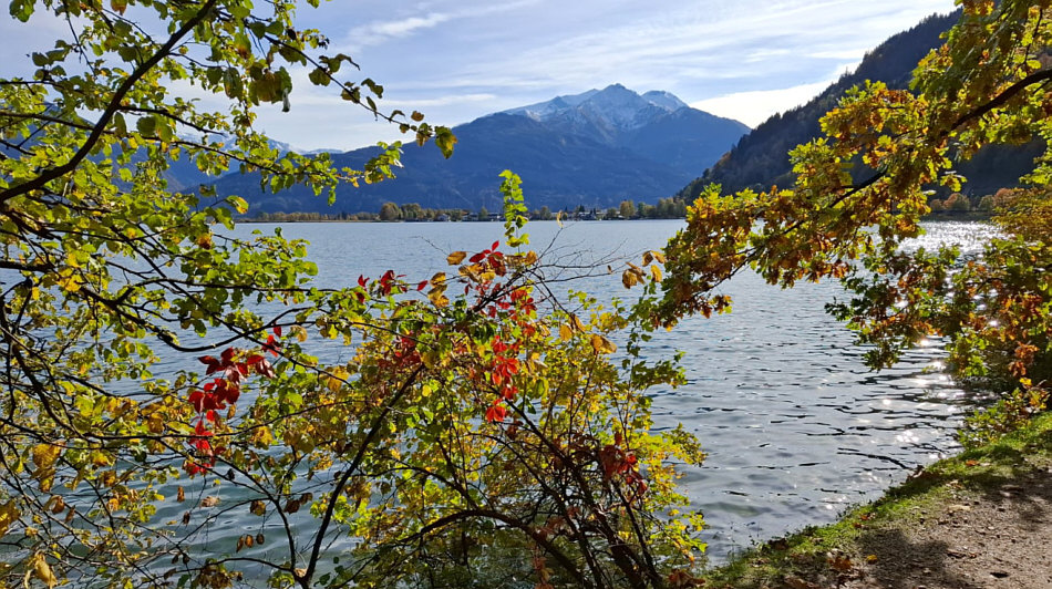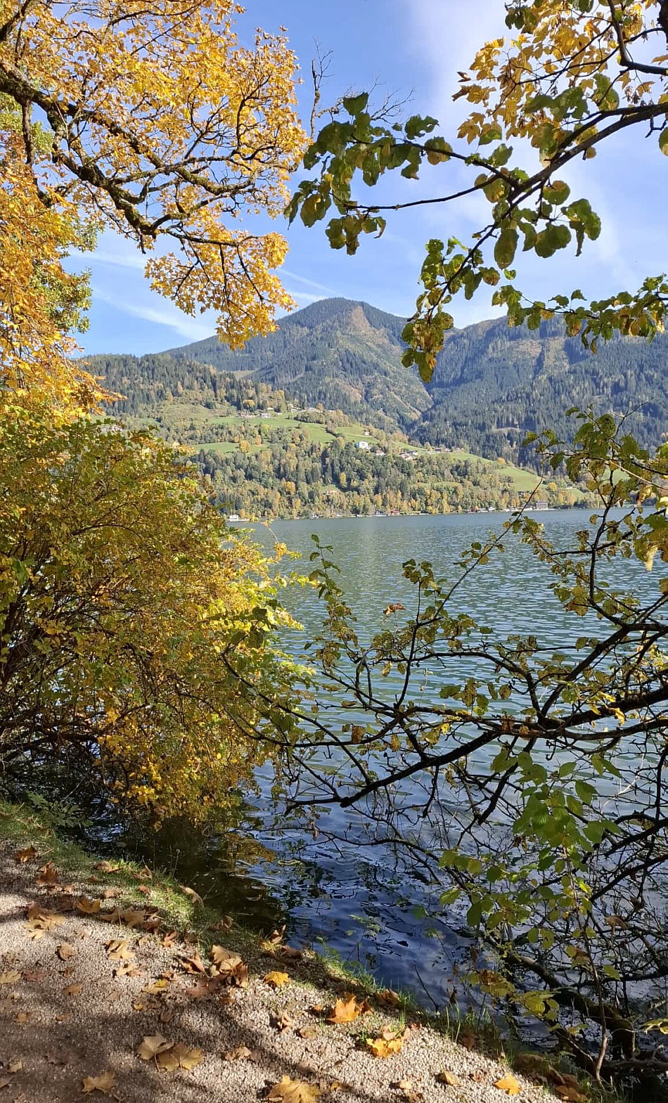 So schöner See, so blauer Himmel, so schöne Herbstfarben.
