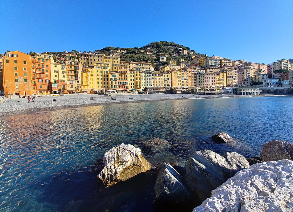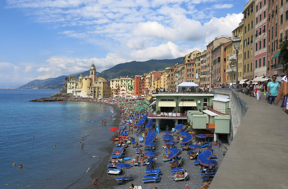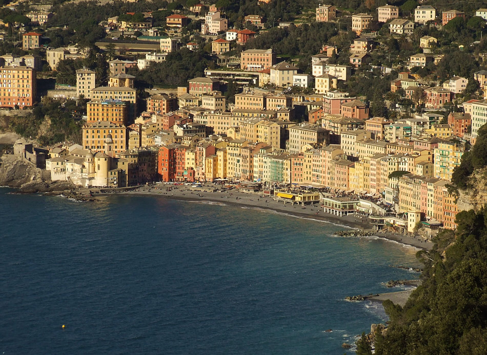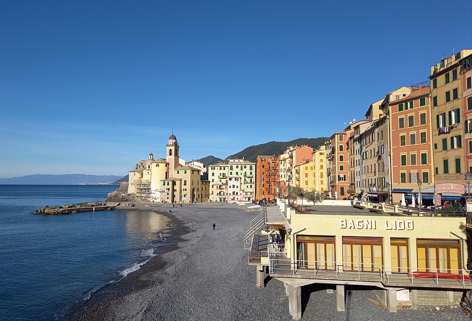 Wir sind heute in einer Stadt ... ![]() ... am Meer. ![]() Genau gesagt: am Mittelmeer. Einst ein Fischerdorf, lebt die Stadt heute vor allem vom Tourismus. Sie ist bekannt für ihre bunten Häuser, die sich hinter dem Strand aneinanderreihen. Die Farben sollen einst den Fischern geholfen haben, nach dem Fang einfacher zu ihrem Hafen zurückzufinden. Wir sind in Italien, in Camogli am Ligurischen Meer. ![]() Dort kann es im Sommer natürlich auch mal ganz schön voll werden. Und auch noch im September: ![]() Aber es gibt auch Zeiten ... ![]() ... in denen es hier ruhiger ist. ![]() Dieses fast menschenleere Foto wurde an einem sonnigen Novembermorgen fotografiert. Anderer Vorschlag: einfach auf den Abend warten: ![]() ![]() (zur Kirche ... bitte hier klicken) |