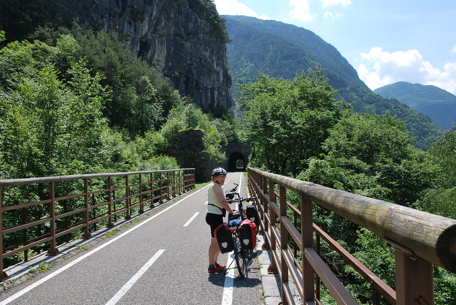![]() 4. Teil (die ersten Teile Dienstag, Mittwoch, Donnerstag). Wir sind bis Samstag hier im Kalenderblatt mit dem Fahrrad unterwegs. Gemeinsam mit Ingolf und seiner Frau. Einmal quer über die Alpen. Der "Alpe Adria Radweg" ist ein 414 km langer Fernradweg, der vom österreichischen Salzburg über die Alpen ins italienische Grado an der Adria führt. Ingolf erzählt: Tag 9 - 1. Teil Ihr habt sicher schon gemerkt, ich schreibe gar nichts mehr über das Wetter. Es ist durchgehend schön, zum Teil auch richtig heiß. Ein kleines Stück müssen wir noch nach oben, ab Camporosso läuft der Weg fast 50 Km auf einer ehemaligen Bahntrasse mit stetem Gefälle, lässt sich prima fahren. Allerdings müssen wir trotzdem treten, wir haben die ganze Zeit Gegenwind. Das Tal scheint wie ein Kamin zu wirken. Immer mal wieder fahren wir durch ein Tunnel, da ist es schön kühl, ein krasser Gegensatz zur Hitze des Tages. Wir genießen noch einmal die Berge, denn bald wird es flacher werden. Unser Tagesziel heute ist Venzone, ein schmucker Ort, von dem ich vorher noch nie gehört hatte. Er hat eine besondere Geschichte, dazu möchte ich etwas erzählen – morgen. ![]() ![]() Tor mit elektronischen Zähler, Camporosso. ![]() Durst. ![]() ![]() Radler, dazu Nüsse und Schatten - ein Genuss. ![]() Einer der vielen Tunnel auf der ehemaligen Bahnstrecke. ![]() ![]() Kunst im öffentlichen Raum. ![]() ![]() Wir sind nicht allein unterwegs. ![]() ![]() Hurra, ein Fitzelchen Schatten! Tag 9. - 2. Teil Tag 10 Das Jahr 1976 werden die Leute von Venzone wohl nie vergessen. Im Mai diesen Jahres ereignete sich ein Erdbeben, das die Stadt schwer zerstörte. Damit nicht genug - im September erfolgte ein Nachbeben, das gab der Altstadt den Rest. Für den Wiederaufbau der Stadt standen zwei Varianten zur Auswahl: - sämtlicher Schutt weg und Aufbau der Häuser mit Fertigteil-Elementen oder - herumliegende Mauerstücke anhand von Fotos identifizieren und wie ein Riesenpuzzle wieder zusammensetzen. Glücklicherweise wurde sich für Variante 2 entschieden, so das die meisten Gebäude wieder im Originalzustand erstanden sind. Nur dort, wo es keine Trümmerteile gab, wurden kahle Betonflächen gelassen. So sieht man noch die "Verwundungen", das macht die Vergangenheit lebendig. Wir genießen ein gutes Abendessen in einem lauschigen Innenhof hinter dem Rathaus, fahren mit dem Rad zurück zu unserer Unterkunft, einem Bauernhof der besonderen Art und starten am nächsten Morgen Richtung Udine. ![]() Die Stadtmauer von Venzone. ![]() In den Gassen der Stadt. ![]() Der Dom, für mich beeindruckend - er war völlig zerstört. ![]() ![]() ![]() Von der zweiten Ortskirche steht nur noch die Fassade. ![]() ![]() Am Brunnen vor dem Rathause. ![]() ![]() Am nächsten Morgen (Tag 10) vor dem Start. ![]() Ein letzter Blick auf unsere schöne Unterkunft in Venzone. [ wird morgen fortgesetzt ] |
