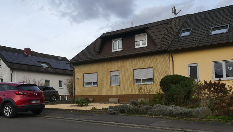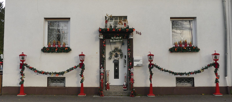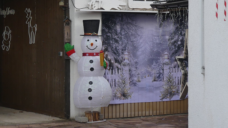 Habe ich schon lange nicht mehr gemacht ... heute gibts Bilder vom Spaziergang gestern Nicht, weil ich so tolle Bilder gemacht habe ... ganz im Gegenteil. Ein ganz normaler Spaziergang durch den Vorort einer Kleinstadt an einem milden, windigen, wolkigen Tag. Mein Jott, was haben wir viele Schottergärten gesehen. Es werden immer mehr. Blümchen blühen aktuell auch keine mehr, in der vorigen Woche gabs Frost und das bedeutet Blümchenende. Was kann man also fotografieren, wenn man so durch Straßen an Häusern vorbei läuft ? Mal sehen ... ... das erste Bild habe ich allerdings beim Zwischenstopp fotografiert. Denn wir sahen beim Vorbeifahren, dass die Kirche offen ist. ![]() Das Schöne an dieser Kirche ist der Sternenhimmel ... ![]() ... über dem Altar. Wir haben natürlich auch Kerzen angezündet ... ![]() ... und hoffen, dass da nicht auch das Plastik zusätzlich angesengt wird. ![]() Es gab viele verschiedene auch länger brennende Kerzen zu kaufen, um der Toten zu gedenken oder ein bißchen Licht in die Welt zu bringen. Das war jetzt vor dem eigentlich Spaziergang ... der jetzt los geht. Vor diesem LKW ... ![]() ... hatte ich mein Auto geparkt ... und los gehts. Gegenüber vom LKW steht seit Jahr und Tag ... ![]() ... ein Ford Escort aus den Jahren 1974-1979. An der Scheibe ist leider schon der Grünspan zu finden. Nicht weit davon entfernt steht ein Haus ... ![]() ... in dem echte Weihnachtsliebhaber wohnen. Individuell und richtig schön geschmückt. Und dabei auf eine traditionelle Art. Ich hab auch einen Blick die Hofeinfahrt entlang gewagt: ![]() Echte Pferde haben wir keine gesehen ... ![]() ... dafür aber echte Malerei an einem Garagentor. Mit Signatur des Malers. Hier ... ![]() ... gibts Honig ... ![]() ... haben wir zumindest beim ersten Blick gedacht ... beim zweiten ... ![]() ... haben wir dann gelächelt ... aber so ganz wissen wir immer noch nicht, ob hier eine Bienenliebhaberin wohnt oder nur eine geliebte oder liebende Biene. Wenn wir Deutsche eins haben und das hat fast jeder, dann ist das ein Zaun ... ![]() ... hier hat aber jemand einen ganz individuellen selbst gemacht. Holzlatten in verschiedenen Längen und Grautönen. Das mag man schön oder nicht schön finden, auf jeden Fall ist dieser Zaun anders als andere Zäune. Und sowas ist immer positiv. Einen Schottergarten habe ich fotografiert ... ![]() ... mit einer gewissen Schadenfreude, dass die Natur sich nicht aufhalten lässt. Aber dann erstarb die Freude, weil mir etwas klar wurde ... wenn das andere kommende Schottergartenbesitzer sehen, werden sie sich merken, dass sie noch mehr Plastik unter die Steine machen müssen, damit das nicht passiert. Vor einer Garageneinfahrt ... ![]() ... durfte ich Strukturen fotografieren. "Wenn jemand dir zulächelt" ... ![]() ... "dann lächle einfach zurück" ... :)). Bei diesem Haus ... ![]() ... dachten wir zuerst ... ![]() ... "hää ... Zeitungsrolle im Obergeschoß ?" ... ... bis mir dann einfiel, dass hier mal irgendwann ein Kerwestrauß gehängt haben muss. Kommen wir zu Häusern und wie sie außen verkleidet sind ... ![]() ... bei diesem Haus ist die Außenwand ... ![]() ... komplett mit Fliesen verkleidet. Und es gibt noch ganz normale Stores ... die sieht man auch immer seltener. Noch ein Strukturenbild: ![]() Nächste Hausverkleidung ... ![]() ... diesmal ist das Haus von allen Seiten mit Ziegeln verkleidet. Sogar mit Muster an der Giebelseite. Da rechts oben am Ablaufrohr seht ihr etwas ... das habe ich extra fotografiert: ![]() In einem Haus stand ein Automat mit Eiern und Nudeln, daneben Kartoffeln ... und hier ... ![]() ... sind wir schwach geworden ... ![]() ... und haben den gekauft. Wobei der jetzt auch eher getrocknet aussah. Vielleicht war der mal frisch ;). Aus der Pfalz ... ähem ... der Spaziergang fand allerdings im Saarland statt ;). Warum habe ich dieses Bild ... ![]() ... fotografiert ? Nur um zu sehen, welche Art Vögel da auf einem Baukran sitzen. Es sind Stare, wie wir vom Lärm her schon vermutet hatten ;). "Ein" Blümchen habe ich dann doch noch fotografiert ... ![]() ... Rosen kann man auch noch nach dem Frost fotografieren. Es gibt zwar keine neuen Blüten mehr, aber die alten Blüten halten noch ein paar Tage aus. Das waren jetzt die Bilder vom Spaziergang .. sogar weitgehend in der Reihenfolge des Fotografierens wie immer bei meinen Spaziergängen ... nun sind wir wieder am Auto ... wieder beim LKW: ![]() Da vorne im Fahrerhaus die beiden Freunde ... ![]() ... die musste ich natürlich auch fotografieren :). Danke fürs Mitlaufen :)). |