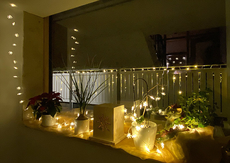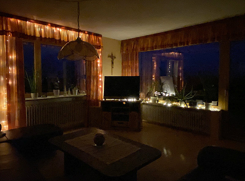 Das ist der Blick aus der Terrassentür von Jutta aus Bayern. Von gestern Morgen. Drinnen sieht es bei Jutta im Advent so aus: weiter