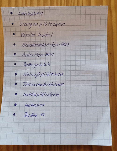 Nach dem Backen werden wieder alle Plätzchen auf die Treppe gestellt.