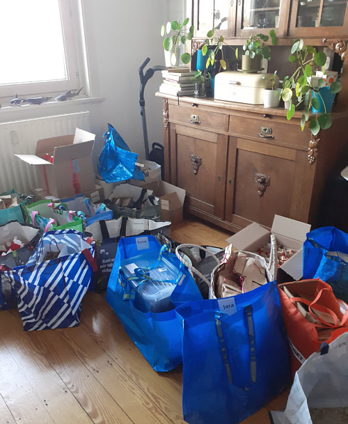 Die Inhalte der Taschen wurden dann umverteilt,