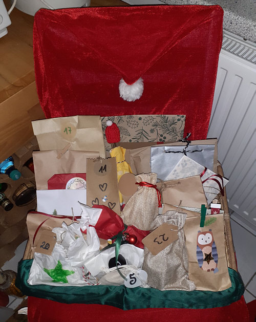 ... mit jeweils 24 verschiedenen Geschenken mit Nummern von 1-24 da