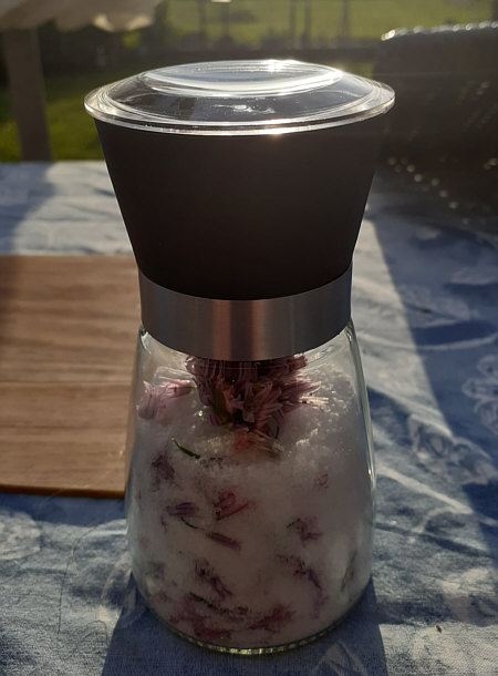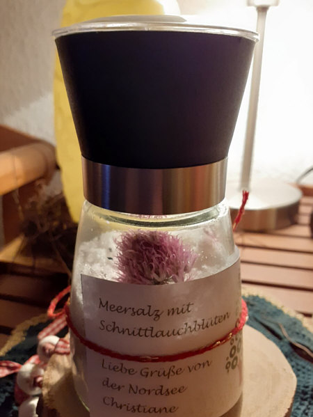 ... und dann vorsichtig in eine gekaufte Gewürzmühle mit Meersalz