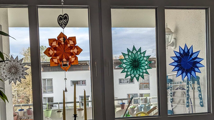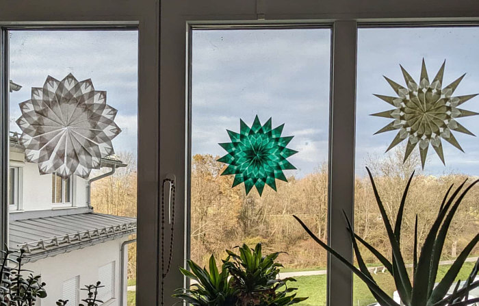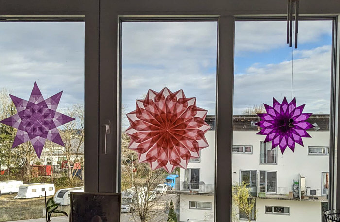 als viele von uns solche Sterne aus Transparentpapier gefaltet