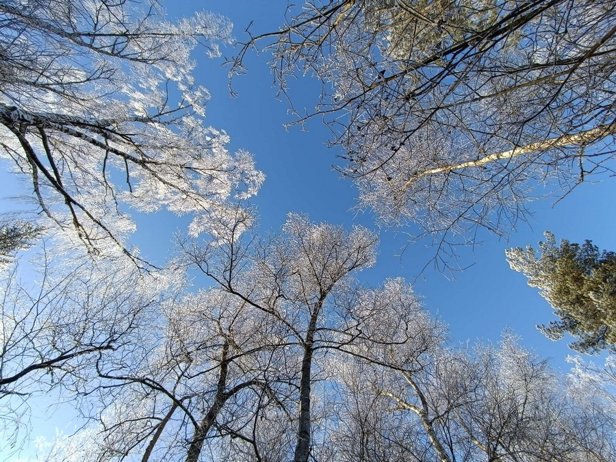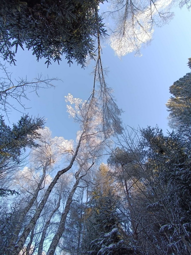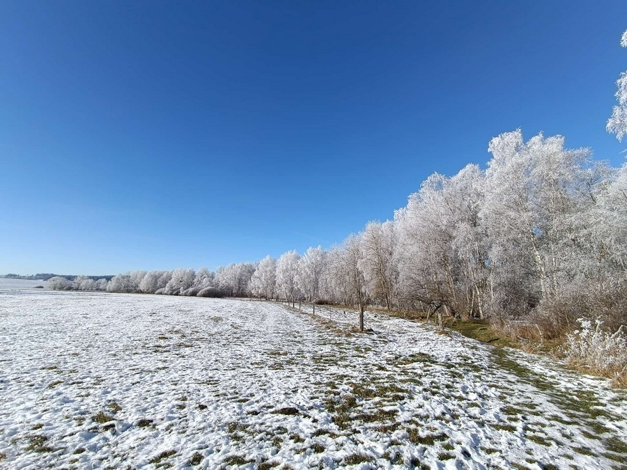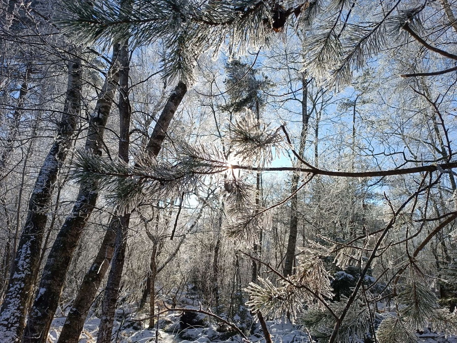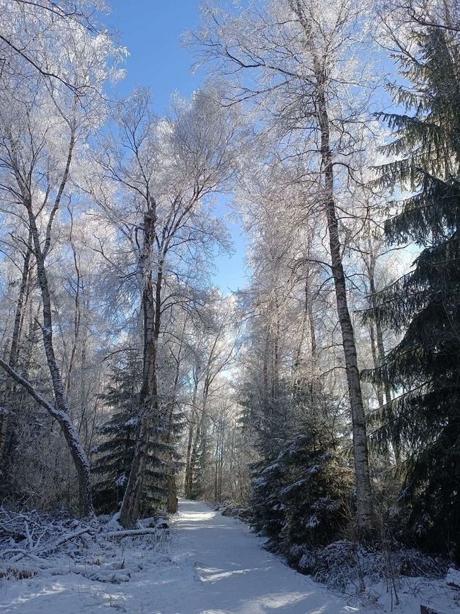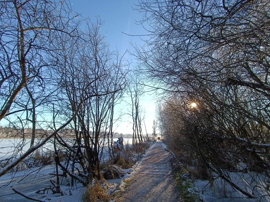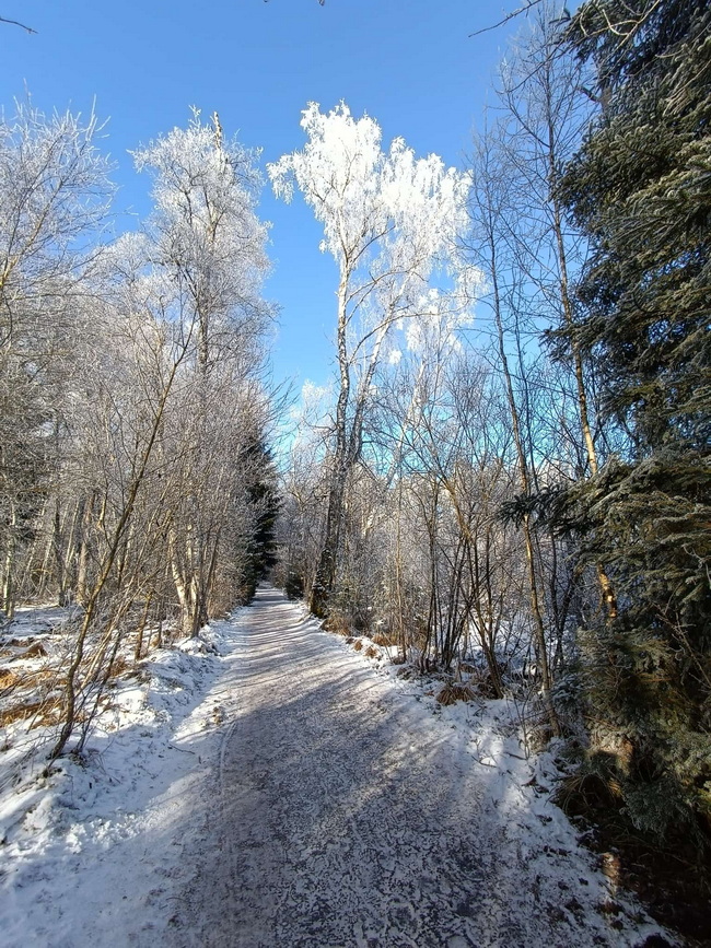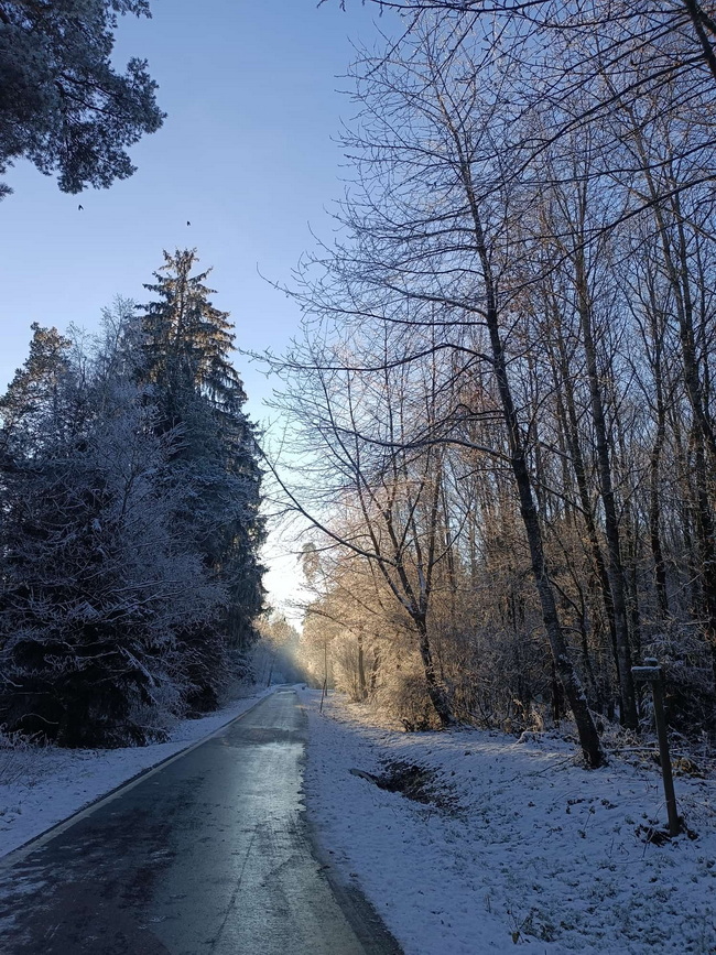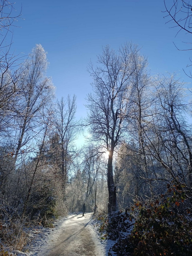 Sie sagt "um diese traumhafte Winterlandschaft genießen zu können, musste ich 70 km fahren."