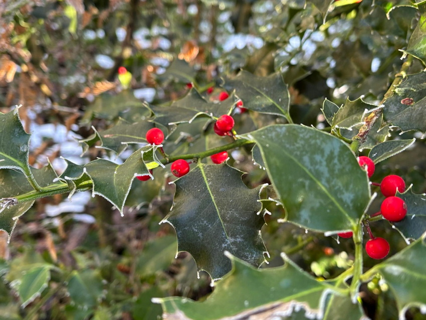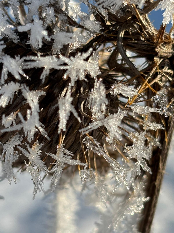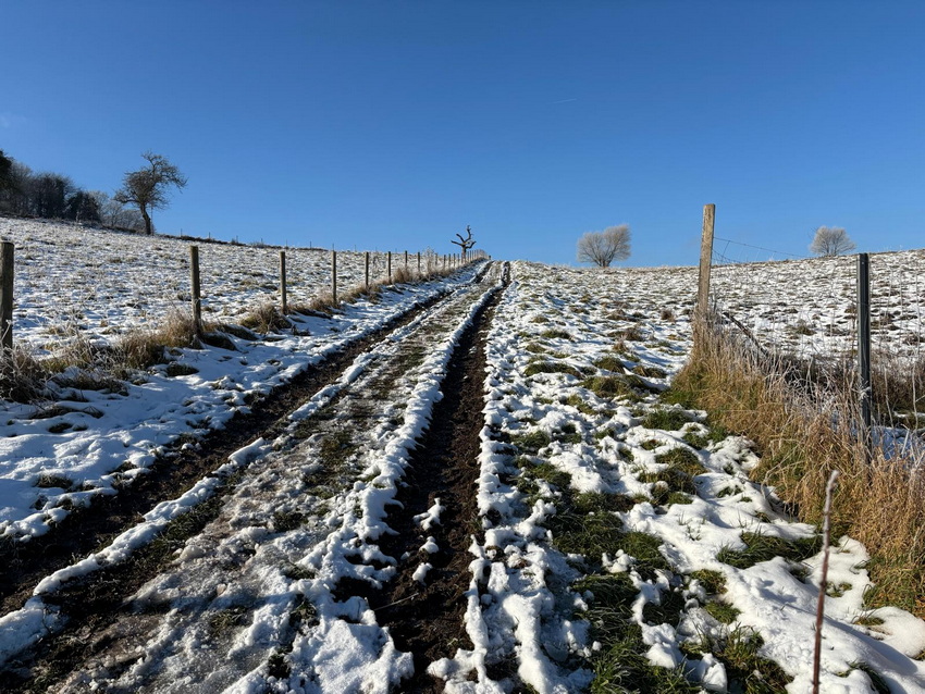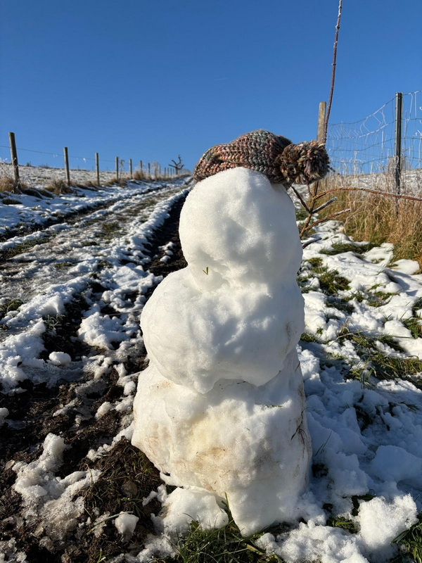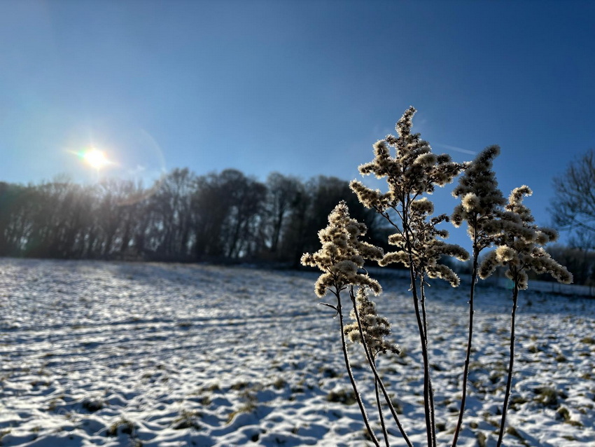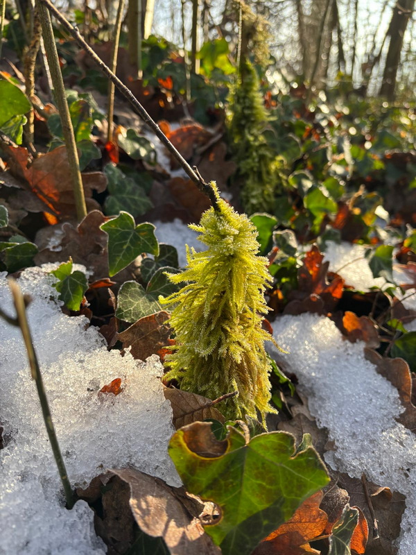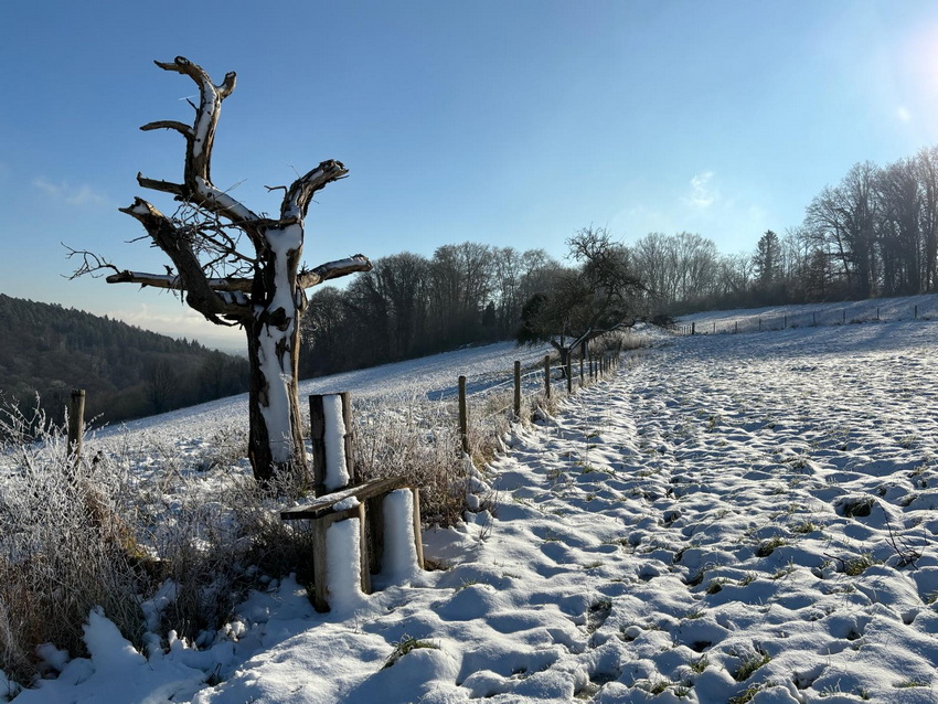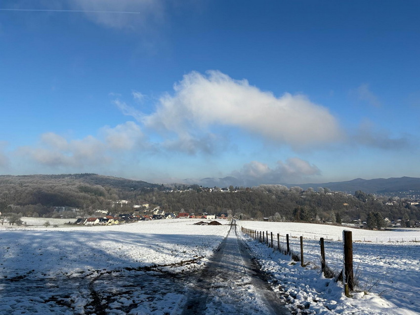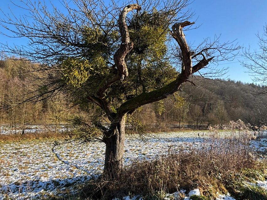 Vorgestern gabs die heutigen Bilder noch gar nicht ... ... Seelenfarben ist also mal wieder ganz aktuell. Die heute gezeigten Bilder wurden alle gestern fotografiert. Ganz frische Bilder ... und es war auch ganz frisch draußen. Warst du auch unterwegs ? Dann weißt du ja, wie es zur Zeit so draußen ist. Du warst nicht unterwegs ? Dann hast du heute die wunderbare Gelegenheit, mit warmen Schlappen vor dem warmen PC einen kleinen Winterspaziergang machen zu können. ohne dafür das Haus verlassen zu müssen. Denn Margot war für uns unterwegs ... ... Bilder und Text sind von ihr ... und wir dürfen mitlaufen: ![]() Beim Spaziergang gestern Mittag habe ich einen Tannenbaum aus Moos entdeckt ;). ![]() Den Tannenbaum entdeckte ich zu Anfang des Aufstiegs zum Höhenzug im Wald. Dann lenkten die rot leuchtenden Beeren meine Blicke darauf. ![]() Vom Rhein war Nebel hochgezogen und hat bei Minustemperaturen die Bäume verzaubert. ![]() Oben angekommen gibt es verschiedene Möglichkeiten weiterzulaufen. Wir haben uns für den Bergrücken entschieden, da die Sonne den Boden antaute und es sich auf diesem Schlick nicht gut laufen lässt. ![]() So richteten wir den Blick gen Siebengebirge. Man sieht noch immer aufsteigende Nebelwolken, die auch den Drachenfels verhüllen. ![]() Kunstvoll verhüllt ist auch dieser Maschendrahtzaun. ![]() Und die Gräser. ![]() Ich konnte mich nicht lange mit fotografieren aufhalten, da mein Mann schnell friert. So ist nicht alles ideal, aber trotzdem finde ich diese Sterne auf der Distel schön. ![]() Der alte Apfelbaum ist immer wieder beliebtes Fotomotiv und lebt hoffentlich noch eine Weile. ![]() Nun geht es steil bergab durch verharschten, überfrorenen Schnee, da lässt mich dieser kurzlebige Geselle eine Pause machen ![]() Der Abstieg ist mit Vorsicht zu genießen. Besser bleibt der Blick auf den nächsten Schritt gerichtet. ![]() ![]() Hier wohnt Familie Maulwurf im Garten und außerhalb. Hier wurde ein überdimensional großer Hügel gehoben. ![]() Darf ich vorstellen: Mister Mistel. ![]() Ein Farbtupfer fällt gleich auf. ![]() Und wer sich fragt, wo all die Wohnmobile den Winter verbringen, wissen es nun! ![]() ![]() Unser Weg sollte weiter durch den Wald führen, aber es wurde zu matschig. Also geht es an der Straße entlang, wo der Wahnsinn mit den Wahlplakaten beginnt ![]() Schmelzwasser, zu Eis geworden. ![]() Diese Einfahrt erinnert mit dem schwarz und weiß nebeneinander an das Zeichen für Yin und Yang. ![]() Eine ganze Hecke und nur diese einzelnen Blüten daran. Da wurde wohl zu viel geschnitten im Herbst. ![]() In diesem Garten wurden die Gräser kunstfertig geflochten. ![]() Minizapfenparade. ![]() Noch einmal Farbtupfer. ![]() Und dieser Schneemann, der als guten Vorsatz im neuen Jahr wohl abnehmen wollte. Zu Hause gab es dann Streuselkuchen und Kaffee und müde Augen ;). |