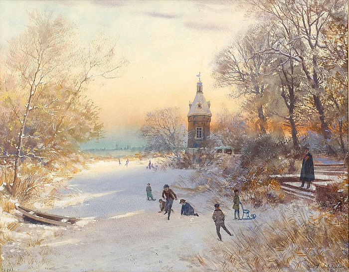 Klassiker ... in Wort und Bild. Klassische Gedichte rund um den Winter und klassische winterliche Gemälde. ![]() (Maler: Maritess Sulcer) Winterlied einer Meise Wo auf winterlicher Flur Noch kein Hälmchen zu erschauen, Mahnt vom Walde her die Meise, Auf die Sonne zu vertrauen, Die für eine Weile nur Uns entwandert auf der Reise. [ Martin Greif ] ![]() (Maler: Frederik Marianus Kruseman) Winterfreuden Nicht nur der Sommer, sondern auch Der Winter hat sein Schönes, Wiewohl man friert bei seinem Hauch, So ist doch dies und jenes Im Winter wirklich angenehm, Besonders dass man sich bequem Kann vor dem Frost bewahren, Und auch im Schlitten fahren. [ Ludwig Eichrodt ] ![]() (Maler: Walter Moras) Winterlied Geduld, du kleine Knospe Im lieben stillen Wald, Es ist noch viel zu frostig, Es ist noch viel zu bald. Noch geh ich dich vorüber, Doch merk ich mir den Platz, Und kommt heran der Frühling, So hol ich dich, mein Schatz. [ August von Platen-Hallermünde (Graf Platen) ] ![]() (Maler: August Schlüter) Die Kinderjahre Da wurde, von den Flocken Des Januars umstürmt, Mit jubelnden Frolocken Der Schneemann aufgethürmt! Den Kirchenhügel glitten, Gelenkt vom Eisenstab, Im zefyrleichten Schlitten Wir pfeilgeschwind hinab. [ Friedrich von Matthisson ] ![]() (Maler: Arthur Thiele) Wintermorgen Die Morgennebel wallen nieder, Es hebt der Wald sich aus dem Duft, Kein Hälmchen wankt, am Halsgefieder Des Vogels spielt kein Hauch der Luft. Nur einsam schreitet, scheu und leise, Und sieht sich um das junge Reh Behutsam auf des Waldbachs Eise Und drückt die Spur in dünnen Schnee. [ Otto Friedrich Gruppe ] ![]() (Maler: Carl Brandt) Wald und Strauch in Silberflocken, Welch ein Hofstaat reich und steif! Weiße Schleier auf den Locken Und im Haar des Puders Reif; Zarte Flöre, krause Spitzen Schmücken zierlich das Gewand, Spangen flimmern, Nadeln blitzen, Funkelnd sprüht der Diamant. [ Anastasius Grün ] |