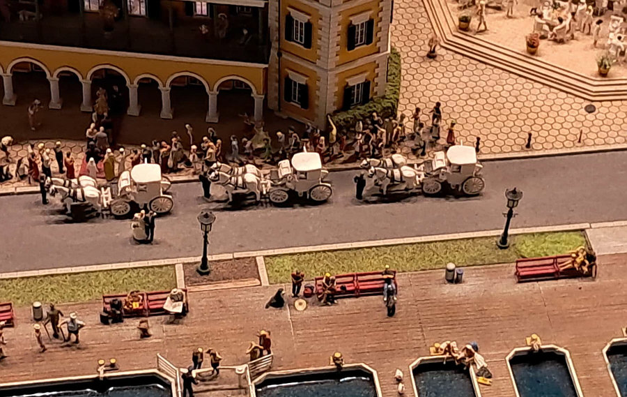 Im Miniatur-Wunderland mit Viola, Teil 2 Wenn ich gestern "es ist der Wahnsinn" dachte und von "unendlich viel Liebe zum Detail" sprach, dann meine ich Szenen wie diese: ![]() Ich sage nur "Gehstöcke, Zeitung, Hut, Handtuch, Kleidung" und vieles mehr, das bei jeder Figur individuell handgemacht wurde. Und das manchmal hundert- oder gar tausendfach ... ![]() ... wie bei dieser Konzertveranstaltung. Alleine da könnte man stundenlang die einzelnen Figuren betrachten. Oder das Sonnenblumenfeld: ![]() ![]() Die weiteren Bilder gibts jetzt ohne Kommentar ... einfach beim Schauen ein bißchen Verweilen und sich die Bilder mit Muße genau betrachten: ![]() ![]() ![]() ![]() ![]() ![]() ![]() ![]() ![]() ![]() ![]() ![]() ![]() ![]() ![]() ![]() ![]() ![]() ![]() ![]() ![]() ![]() ![]() ![]() ![]() |