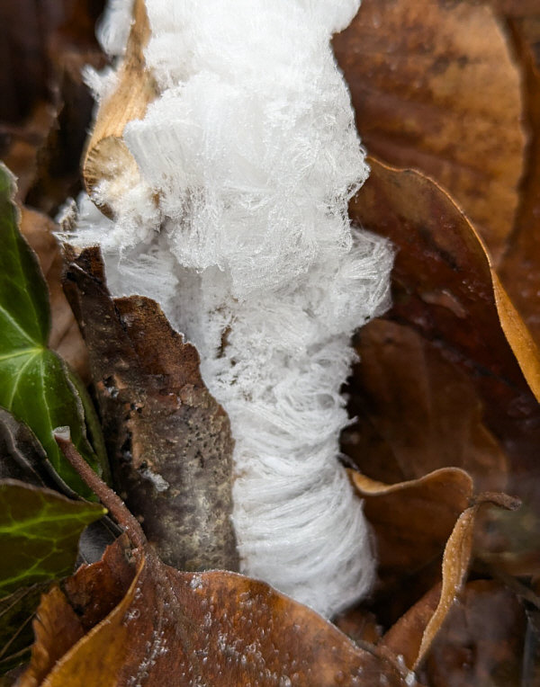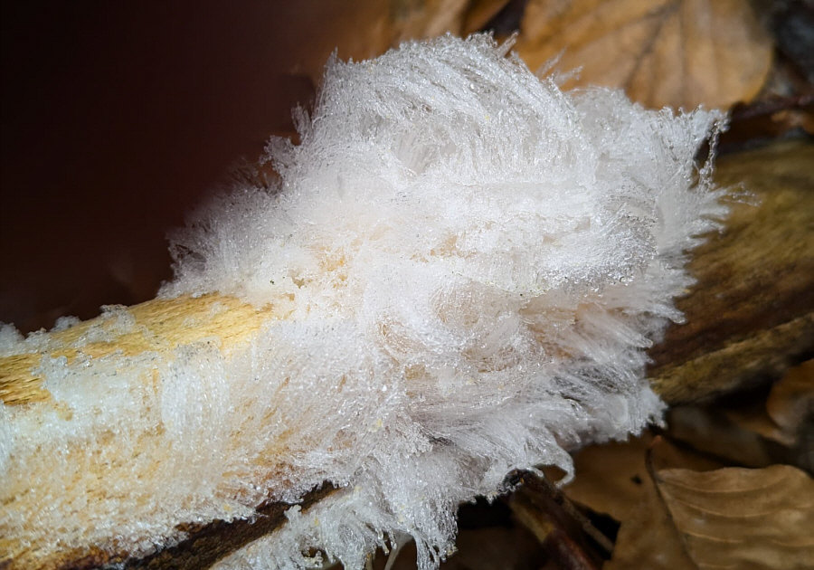 Irmgard M. zeigt uns heute ein recht seltenes und auch noch wenig erforschtes Naturphänomen, das aber jeder bei geeigneten Bedingungen in der nahen Natur finden kann. ![]() Das ist Haareis Vor ca. 100 Jahren beschrieb ein Meteorologe dieses Haareis auf nassem Totholz. Er vermutete einen „schimmelartigen Pilz“ als Auslöser, was aber von anderen Wissenschaftlern angezweifelt wurde. In einer biophysikalischen Studie fast 100 Jahre später wurde die Vermutung des Meteorologen weitgehend bestätigt. Demnach wird Haareis durch das Myzel winteraktiver Pilze ausgelöst, deren Stoffwechsel Gase produziert, die das im Holz vorhandene leicht unterkühlte Wasser an die Oberfläche verdrängen. Dort gefriert es und wird durch nachdrängende, beim Austritt aus dem Holz ebenfalls gefrierende Flüssigkeit weitergeschoben. Dies geschieht ausschließlich bei Temperaturen knapp unter dem Gefrierpunkt, wenn das Wasser im Holz noch nicht gefroren ist, es an der geringfügig kälteren Umgebungsluft jedoch gefriert. Eine weitere Bedingung für die Haareisbildung ist außerdem hohe Luftfeuchtigkeit. Irmgard hat ein paar weitere Bilder für Euch: ![]() ![]() ![]() ![]() |