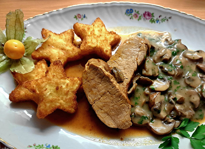 ... ist das eine und das machen ja die meisten von uns. Oder sagen wir ... so kochen, dass es einem selber schmeckt. Das bedeutet dann aber nicht, dass der Teller auch fotogen ist. Ich kann da auch ein Lied davon singen ... subjektiv ist das, was ich koche, lecker, also für meinen Gaumen ... mit dem "so anrichten, dass es ansprechend aussieht" habe ich so meine Probleme ... ... ganz im Gegenteil zu Petra H. ... sie fotografiert ja regelmäßig, was sie kocht und man könnte diese Fotos direkt in ein Kochbuch stellen. Ich hab so viele Bilder, die ich zeigen könnte, also wird das heute Teil 1 und nächste Woche gibts dann Teil 2 ... heute sind es sage und schreibe 15 Teller, die ich zeigen kann: ![]() Hühnerfrikassee mit Reis ![]() Kohlrübeneintopf mit Hackbällchen ![]() Schweinefilet mit Röstisternen und Champignons ![]() Spitzkohleintopf mit Knacker ![]() Lammkeule mit Romanesco und Kartoffeln ![]() Wurstgulasch mit Kartoffel-Möhren-Stampf und Salat ![]() Wirsingrouladen mit Kartoffeln und Kraut ![]() Eierflockensuppe mit Möhren ![]() Pilzeintopf mit Kräuterseitlingen und Buchenpilzen ![]() Rosenkohleintopf ![]() Gulasch mit Gemüse und Herzoginkartoffeln ![]() Kräuterseitling-Suppe ![]() Hörncheneintopf mit Hackbällchen ![]() Geflügelfrikassee mit Reis ![]() Senfeier mit Kartoffeln |