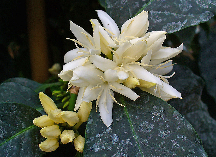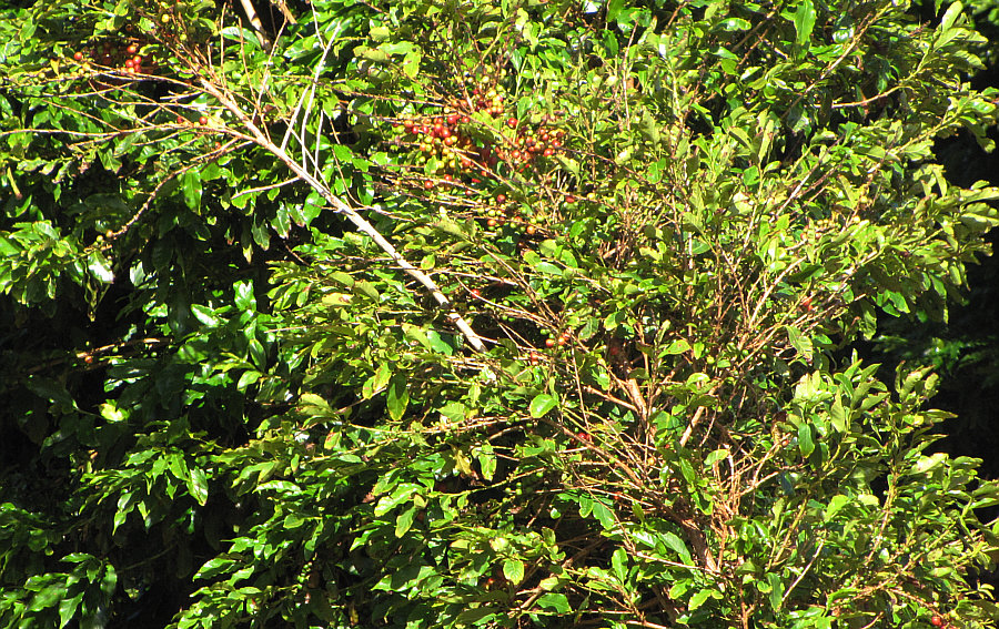 Das wäre ein super Rätselfoto gewesen ... ![]() ... und ich hätte gefragt "welche Blume ist denn das". Kann man ja heute nicht mehr machen ... da hätte ganz schnell jemand die Google-Bildersuche bemüht und die Lösung gehabt. Aber lassen wir das Bild mal so ganz ohne Rätsel stehen ... ist doch eine schöne Blüte ? ![]() Ob das wohl eine Zierpflanze ist ? ![]() Bestimmt etwas Tropisches ? Vielleicht aus dem Urwald ? ![]() Oder irgendeine Art Flieder ? Die Sträucher ... ![]() ... sind ganz schön blühwillig. Nach der Blüte gibt es zuerst viele grüne Früchte ... ![]() ![]() ... die rot werden ... ![]() ... und darauf warten, geerntet zu werden. ![]() Hier wachsen diese Pflanzen ... ![]() ![]() Das sind riesige Felder voll von diesen Pflanzen ... ganze Plantagen. Die Blüte am Anfang ist also vergleichbar mit einer Rapsblüte ... es war die Blüte einer Feldfrucht. Nur dass diese Felder weit weg zu finden sind ... in Südamerika und Afrika z.B. . ![]() ![]() In diesen Beeren ... ![]() ... sind recht unscheinbare Steinkerne zu finden ... ![]() ... die man "Bohnen" nennt. Geröstet sehen sie so aus: ![]() Rätsel gelöst ... die schönen Blüten sind die Blüten der Kaffeepflanze. |