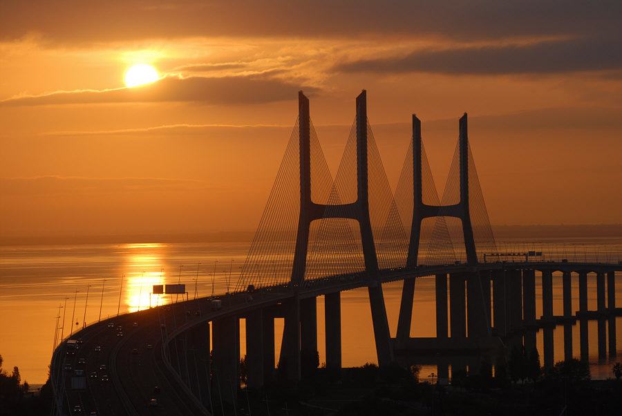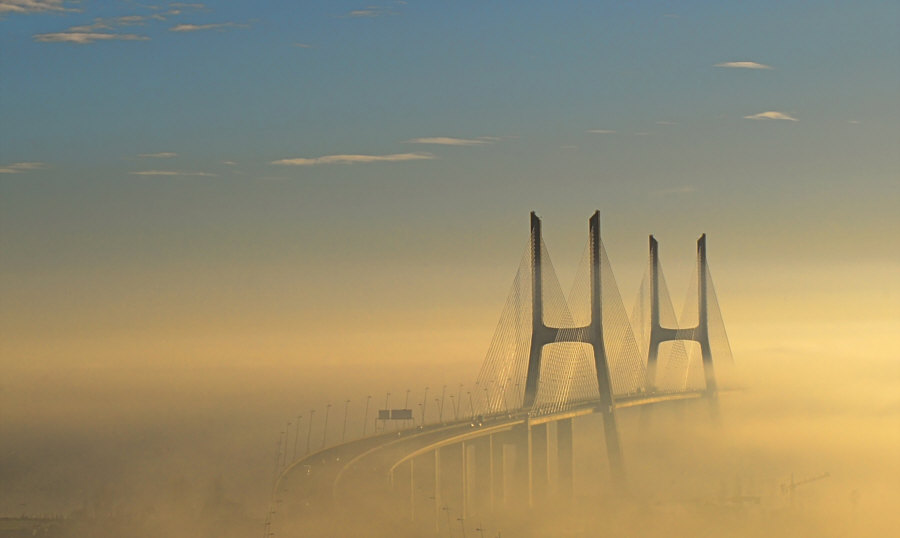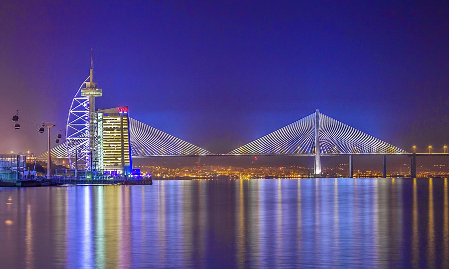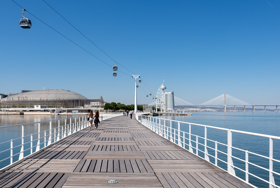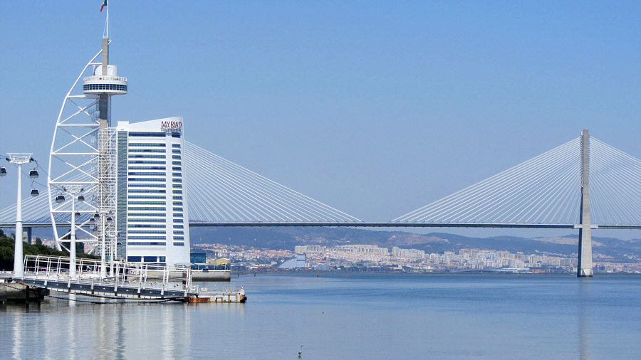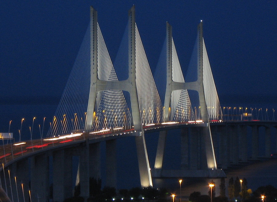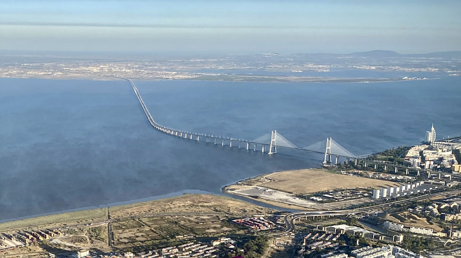 Das ... ![]() ... ist der "Vasco da Gama"-Turm. Er wurde 1998 anlässlich der Weltausstellung Expo 98 errichtet. Am Fuße des Turms befand sich damals ein dreistöckiges Gebäude, das während der Expo als Pavillon der Europäischen Union diente. 20 Jahre später war dieses Gebäude nicht mehr da und stattdessen stand dieses ... ![]() ... besonders designte Luxus-Hotel an dessen Stelle. Die Architekten ließen sich von der Form einer Karavelle und ihres Segels inspirieren. Diese Basis ragt wie der Bug des Bootes in den Fluss hinein. Der Fluss ist der Tejo. Und es gibt hier auch ... ![]() ... einen Steg zum Spazieren und eine Seilbahn, um über den Dingen zu schweben. Wir setzen uns mal in diese Seilbahn: ![]() ... und schweben der Haltestelle entgegen: ![]() Mit kommt es aber heute gar nicht auf die Seilbahn und auch nicht auf das Hotel an ... ... sondern auf die Brücke, die dahinter ist. ![]() Denn das ist die gleiche Brücke ![]() ... die ich gestern ... ![]() ... im Abreißkalender gezeigt hatte. Wir sind in Lissabon, das ist die Vasco-da-Gama-Brücke. Dieses Bild wurde morgens an einem Januartag fotografiert. Zwei weitere frühmorgens-Bilder: ![]() ![]() Wenn man auf der Brücke fährt, sieht das so aus: ![]() ![]() Ich zeige auch gerne die Brücke in ihrer ganzen Länge: ![]() Den Abschluss machen Bilder bei Nacht ... ![]() ... und auf dem letzten Bild ... ![]() ... ist wieder alles zu sehen ... Turm, Hotel, Seilbahn und die Brücke. |