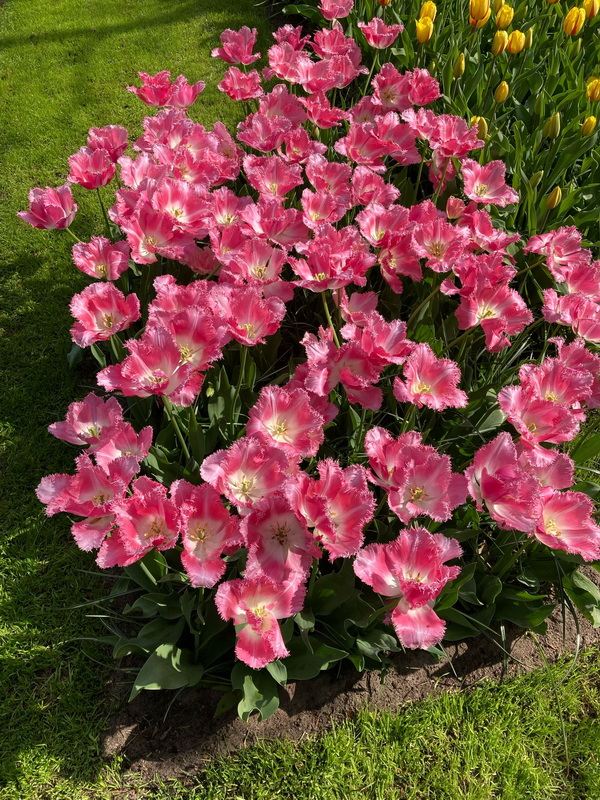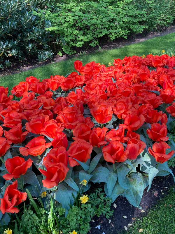 Vor knapp drei Wochen waren wir schon mal dort ... ... damals mit Greta ... heute mit Carmen R. ... auch sie war im ... ![]() ... und ich glaube, dass es dort so schön und besonders ist, dass man auch ein zweites Mal hingehen kann. ![]() Da kann man doch wirklich auch ein zweites Mal verweilen. Und es gibt auch Plätze, wo etwas anderes blüht: ![]() Sogar Amaryllis kann man hier im Freien blühen sehen: ![]() Nochmal zurück zu den Tulpen ... und zum Bachlauf, dem Sahnehäubchen im Keukenhof: ![]() Mit Bär. ![]() ![]() Wir dürfen heute auch ein paar Tulpensorten näher kennen lernen: ![]() Die Tulpe "Brisbane". ![]() Die Tulpe "Perth". ![]() Die Tulpe "White Liberstar". ![]() Mit Fransen. ![]() Fast wie Rosen von der Farbe her. ![]() Bunte Mischung. ![]() Bunt mit Palme. Es gibt auch Tulpen mit Rhododendron im Hintergrund ... ![]() ... oder nur Rhododendron: ![]() Kaiserkronen gibt es auch ... ![]() ... und hier sieht man, das ziemlich viel los ist. Einsamkeit ist das falsche Wort, wenn man im Keukenhof ist. Aber sowas Schönes wollen eben alle sehen. ![]() Der Frühling in all seiner Farbenpracht. ![]() Wir gehen noch mal dort hin, wo die Bäume sind: ![]() ![]() Das ist einfach nur wunderschön. Und wisst Ihr, was noch wunderschön ist ? Dass Carmen R. nicht nur die Außenanlagen besichtigt hat, sondern auch in den Gewächshäusern war und auch von dort viele Bilder mitgebracht hat. Die zeige ich dann morgen :). |