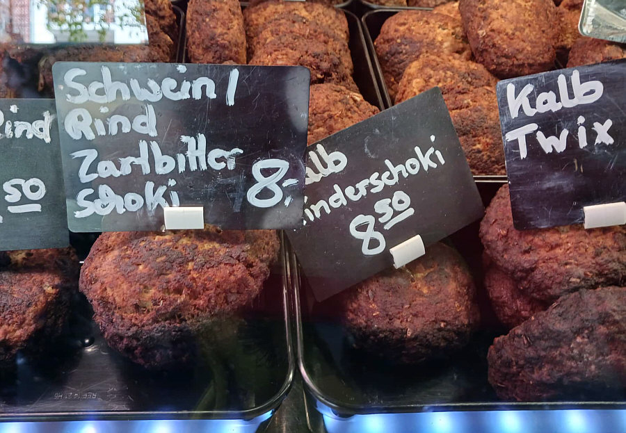Das heutige Kalenderblatt ist KEIN Scherz. Das sind echte Frikadellen auf einem echten Markt. Die Preise stehen für "eine" Frikadelle. Das obere Wort steht für die Art Fleisch, die verwendet wurde und das zweite Wort für die Füllung. Die werden gerne gekauft und der Verkaufsstand soll verführerisch riechen. ![]() ![]() ![]() Die Seelenfärblerin hat zwei davon gekauft ... wir werden also sogar erfahren, wie diese Buletten schmecken. Was es nicht alles gibt ... aber es gibt auch Menschen ... die ... Originalton der Seelenfärblerin: "Eine Freundin von mir isst leidenschaftlich gerne Franzbrötchen (süßes Zimtbrötchen) mit Leberwurst". Und ich kenne jemanden, der auch mal Salami mit Nutella isst. Thema heute: Ungewöhnliche Essens-Zusammenstellungen Diese sensationelle oder etwas andere Verbindungen zwischen herzhaften und süßen Sachen ... die Buntheit der Menschen auf dem Teller. |