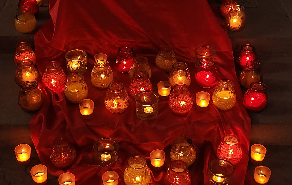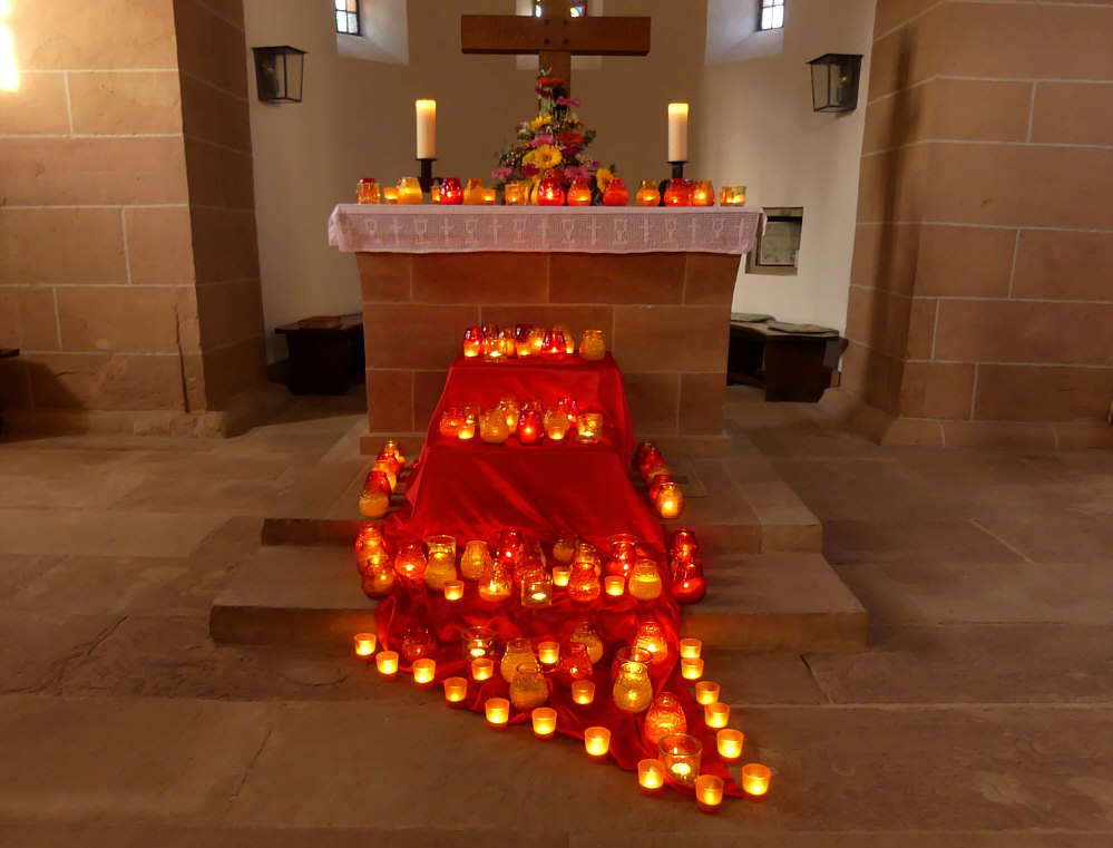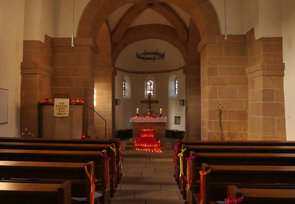 Wir sind heute dort ... ![]() ... wo Gottes Sonne die Rosen zum Leuchten bringt. Die Rosen stehen in der Nähe einer der vielen Häuser des Herrn ... ![]() ... und er muss hier ab und zu wohnen, denn das hier ... ![]() ... kann doch nur ein Zeichen von Stärke, Kraft und Zuversicht sein. ![]() Neben der Kirche steht ein alter Lindenbaum ... ![]() ... und nun gehen wir mal in das Gotteshaus hinein. ![]() Drinnen brennen Lichter ... ![]() ... es muss ein besonderer Tag sein. ![]() Wir feiern heute den Gedanken zur der "weltweiten Einigung und Zusammenarbeit der verschiedenen Konfessionen" ... der Ökumene. Denn gleich findet hier ... ![]() ... für eine halbe Stunde ein ökumenisches Zusammensein bei Taizé-Gesängen ... ![]() ... und vielen Lichtern statt. Willkommen in der Sonntagskirche von Seelenfarben :)). Deine Gedanken zur Kirche und zum Innenraum ? |