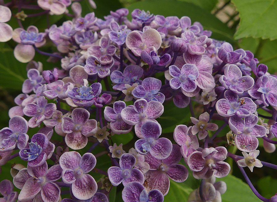 Mal heller, mal dunkler, mal kleine blaue Blütchen in der großen Blüte.