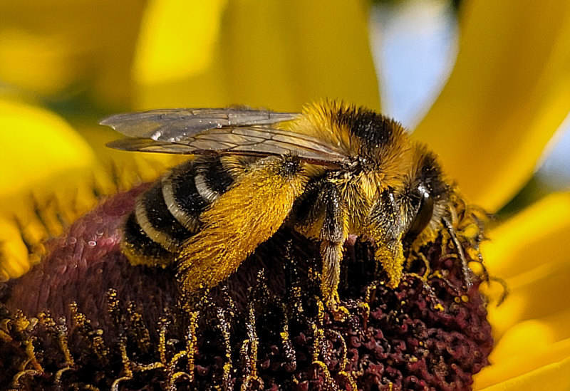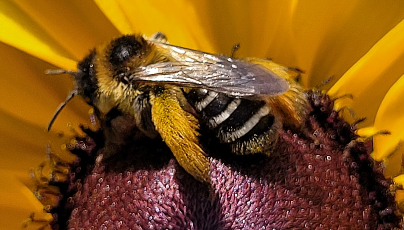 Gestern waren wir mit der polnische Pflegekraft unserer Nachbarin zum Dehner gefahren, weil diese der alten Dame eine Pflanze für den Garten kaufen und sie ihr schenken wollte ... ich war in dieser Zeit im Netto einkaufen, während Beate und Barbara ins Geschäft gingen. Weil ich mich wegen Kassenstau verspätete, saß Beate mit dem gekauften Sonnenhut vor dem Geschäft ... Barbara war nochmal rein, weil sie so begeistert von den vielen Blümchen und all dem anderen, was es zu sehen gab, war. Sie kommt ja auch nicht so viel raus in solche Geschäfte. Beate saß also mit dem Sonnenhut vor dem Geschäft ... ... auf einmal kam eine Hosenbiene angeflogen und setzte sich auf den Sonnenhut ... ... Beate zückte ihr Handy und begann zu fotografieren. Vorab zur Biene: Die Hosenbiene ist eine Solitärbiene ... sie sieht mit ihren reichlich lang behaarten Beinen aus, als würde sie Hosen tragen. Diese Haarbürsten, Scopae genannt, sind sehr nützlich, um grosse Mengen an Pollen zu transportieren. Sie dienen aber auch dazu, losen Sand, der beim Graben einer Höhle anfällt, wegzubürsten. Sie legt ihre Nester in Sand oder lockerer Erde an. Die Weibchen graben einen 20 bis 60 Zentimeter tiefen, anfangs schrägen, später senkrecht nach unten führenden Gang. Von diesem werden auf mehreren Ebenen in verschiedene Richtungen runde Brutzellen angelegt. Und nun die Bilder: ![]() ![]() ![]() ![]() ![]() ![]() ![]() ![]() |