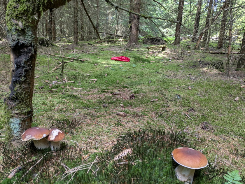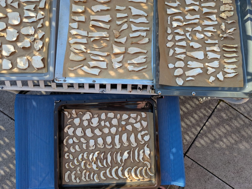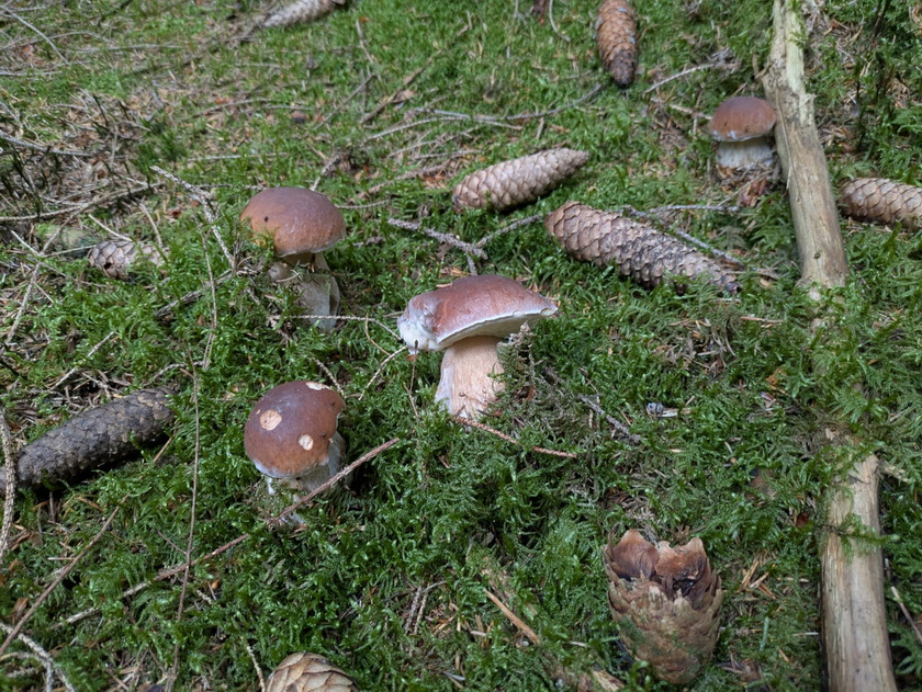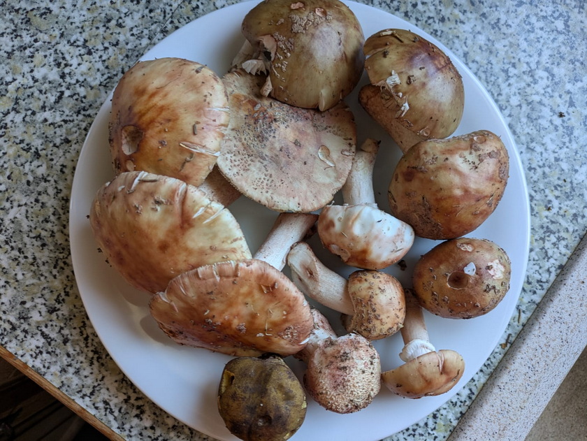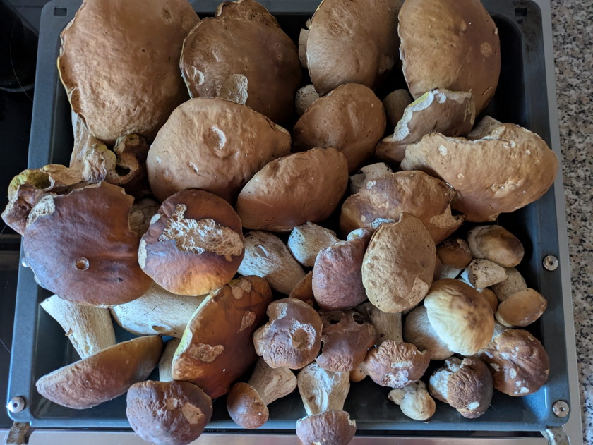 ReginaE ... .. läuft hier rum ... wir gehn mal leise hinterher. Erst mal Blümchen ... ![]() Greiskraut ... das essen wir nicht, das ist giftig. ![]() Das zottige Weidenröschen ... das wird sogar gelegentlich als Zierpflanze verwendet. ![]() Glockenblume ... würden sie läuten können, wäre das vielleicht schrecklich oder wunderbar, wer weiß. ![]() Die Knäuel-Glockenblume ... da musste ich erst nachschauen, gewusst habe ich den Namen nicht. Aber wegen der Blümchen sind wir, bzw. ist ReginaE gar nicht hier. ![]() Schon eher deswegen ... aber das ist ne Stinkmorchel, die zieht nur Fliegen an. Die riecht auch so, dass die Fliegen von weit her kommen. ![]() Ja, das ist schon besser ... aber das sind auch noch nicht die Wunschpilze ... ![]() ... auch dieser Schlüsselpilz nicht. Ja, man kann auch Riesenbovist zu ihm sagen. Jeder Fruchtkörper produziert im Inneren über sieben Billionen Sporen. Ich schreib das mal als Zahl: 7000000000000. Uff. Den kann man sogar essen ... er ist der größte und schwerste Speisepilz. Man kann ihn in Scheiben schneiden und wie Wiener Schnitzel braten. Aber auch das ist nicht Reginas Wunschpilz. Einfach noch ein bisschen laufen ... ich lass das ReginaE mal selbst erzählen: "Heute in Oberhof war ich auf der Suche. Es gab Perlpilze und gegen Ende dachte ich, einfach mal dorthin zu gehen wo ich noch nie war. Zuerst durfte ich Heidelbeeren vom Strauch in den Mund pflücken. Dieses Bild machte mich auf den Platz aufmerksam. ![]() ![]() Das Foto zeigt meinen roten Beutel ... ohne Beutel und Taschenmesser gehe ich nicht in den Wald. Doch damit hatte ich so früh in der Saison nicht gerechnet. Beim hinein gehen in den Wald sah ich Spuren von Pilzentnahme und dann tat sich auf einer Fläche von 3 x 3 das Steinpilz-Paradies auf. Die Stelle ist ca. 10 Meter von der Straße entfernt. ![]() ![]() Üblicherweise schaue ich ca. 10 Meter weiter im Wald nach Perlpilzen. Das brachte nur einzelne Exemplare. Auf dem Weg zum Auto ging ich kurz vor der Straße, die ebenfalls ca. 10 Meter entfernt ist über Holz und Äste auf einen grasigen Waldweg und da sah ich Spuren von jemand, der bereits vereinzelt Pilze gefunden hatte. Mit Blick in den Fichtenbestand sah ich die großen Steinpilze. Das waren ca. 2 Meter vom Grasweg entfernt. Ein paradiesischer Blick tat sich auf, auch einige kleine lugten aus dem Moos. Es hat mich bestätigt, dass man dort schauen sollte, wo es weniger einladend wirkt. Die Ernte war reichlich: ![]() ![]() Natürlich gibt es etwas zum Essen. ![]() Die Brötchenscheiben hatte ich in der Pfanne leicht knusprig geröstet und mit einer Knoblauchzehe eingerieben. Etwas Salz darüber und es ist perfekt. Die restlichen Pilze habe ich ... ![]() ... zum Trocknen ausgelegt. Nachts kommen die Bleche rein und morgens wieder raus. Am Mittwoch müssten die Steinpilze getrocknet sein. |